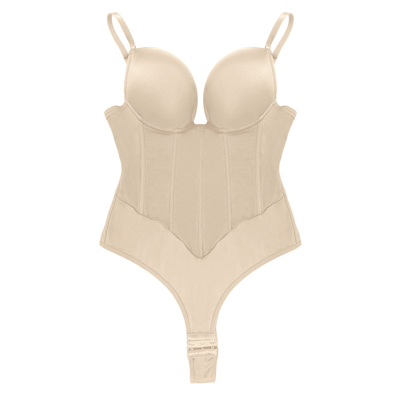 欧美跨境独立站爆款网布5骨美体衣升级版调节 肩带连体塑身衣批发