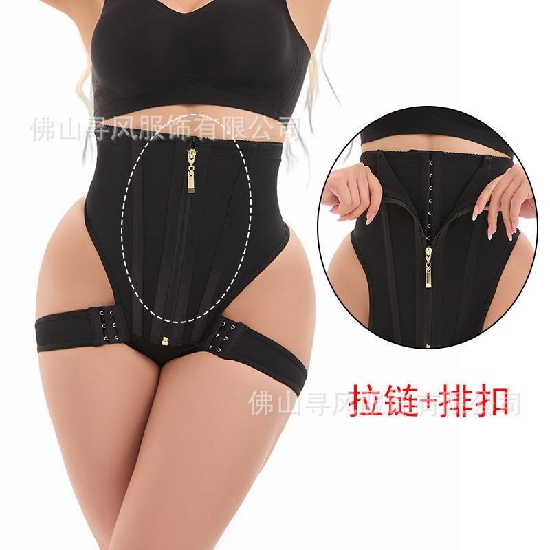 欧美收腹束身裤塑形连体塑身衣排扣拉链高腰提臀裤束腰美体裤大码