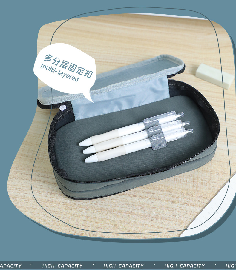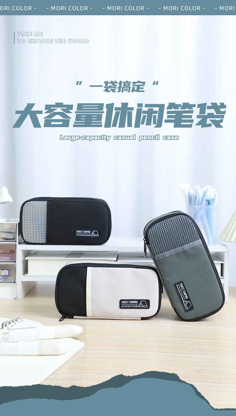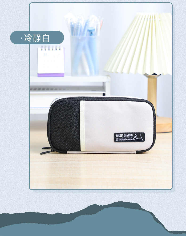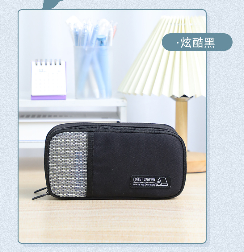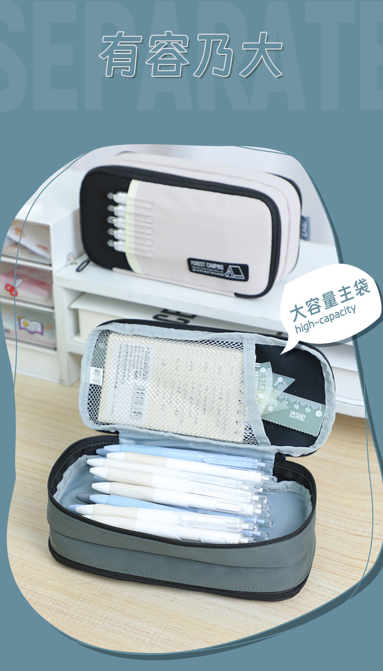 联众简约笔袋学生多功能双层大容量露营风文具收纳袋学习用品批发