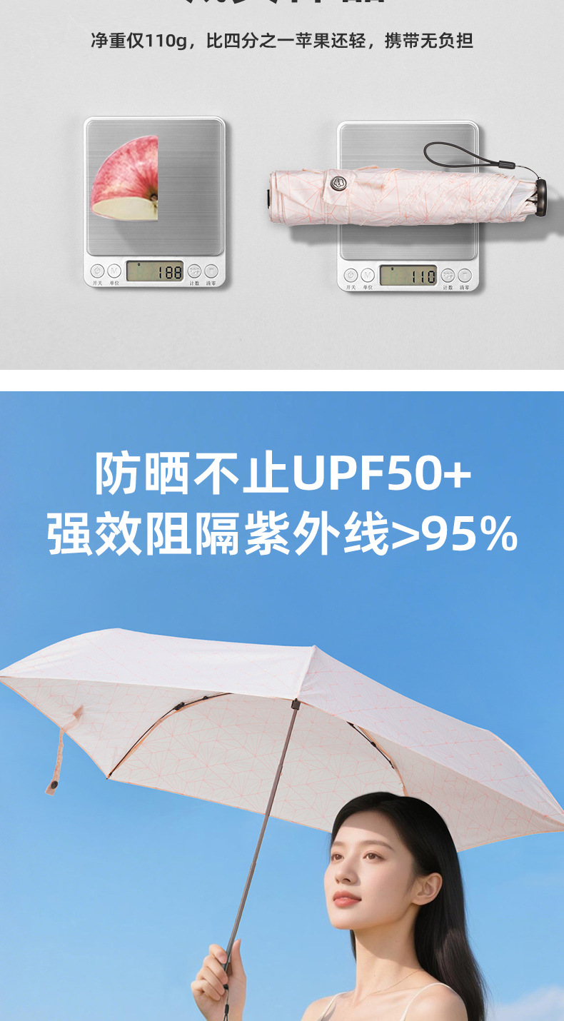 跨境电商爆品遮阳伞防晒防紫外线晴雨伞超轻便携黑胶太阳伞