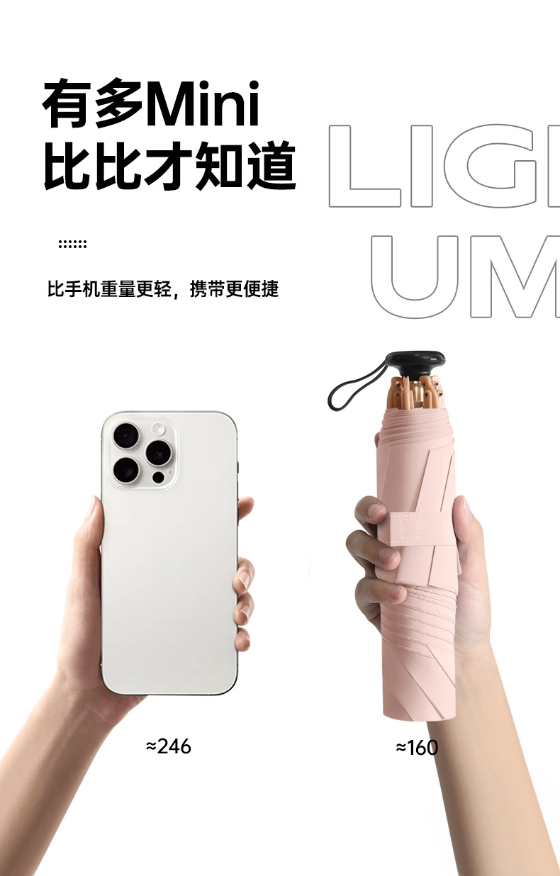 跨境电商爆款超轻易折伞羽毛伞小巧便五折反向伞便携晴雨两用