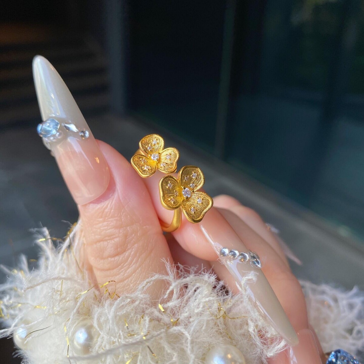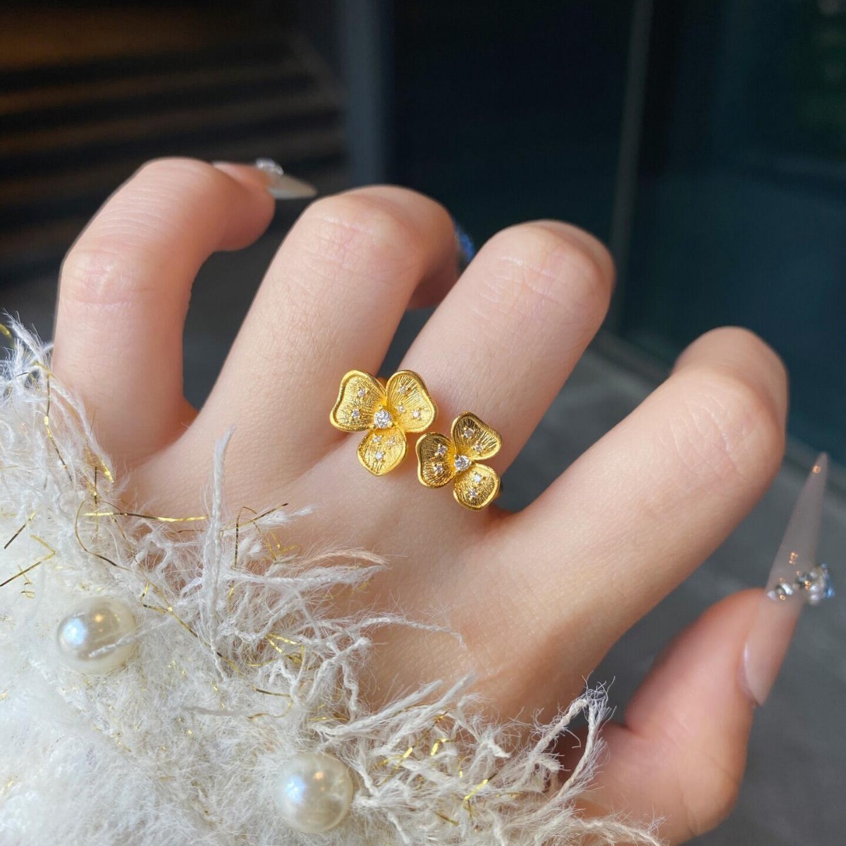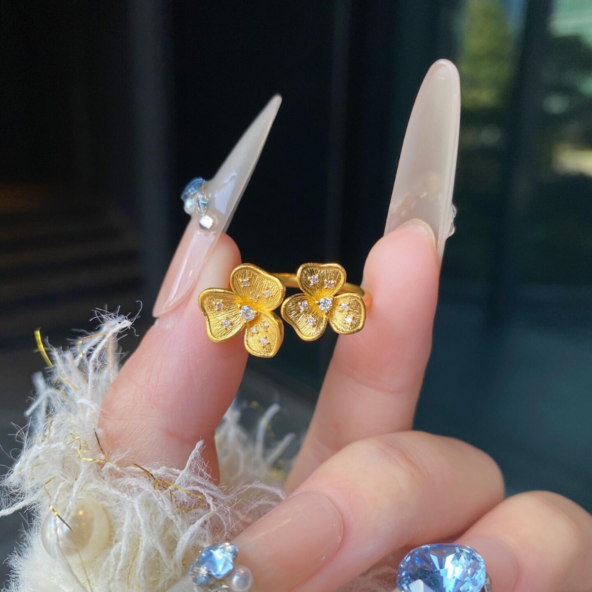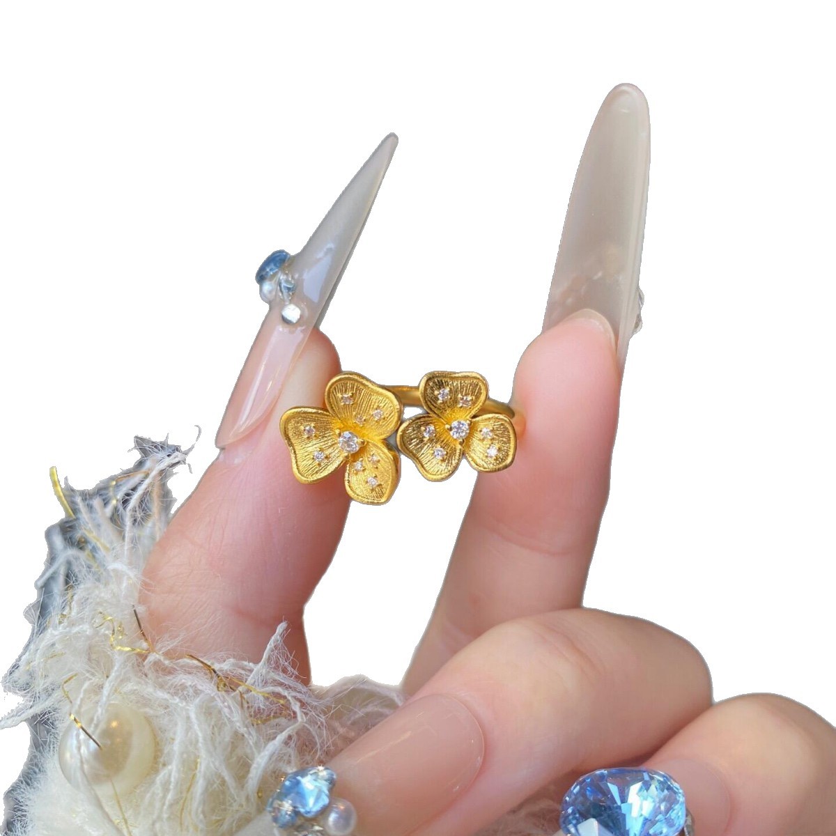 新中式首饰双生三叶花戒指精致锆石饰品小众百搭轻奢高级感手饰