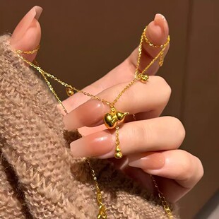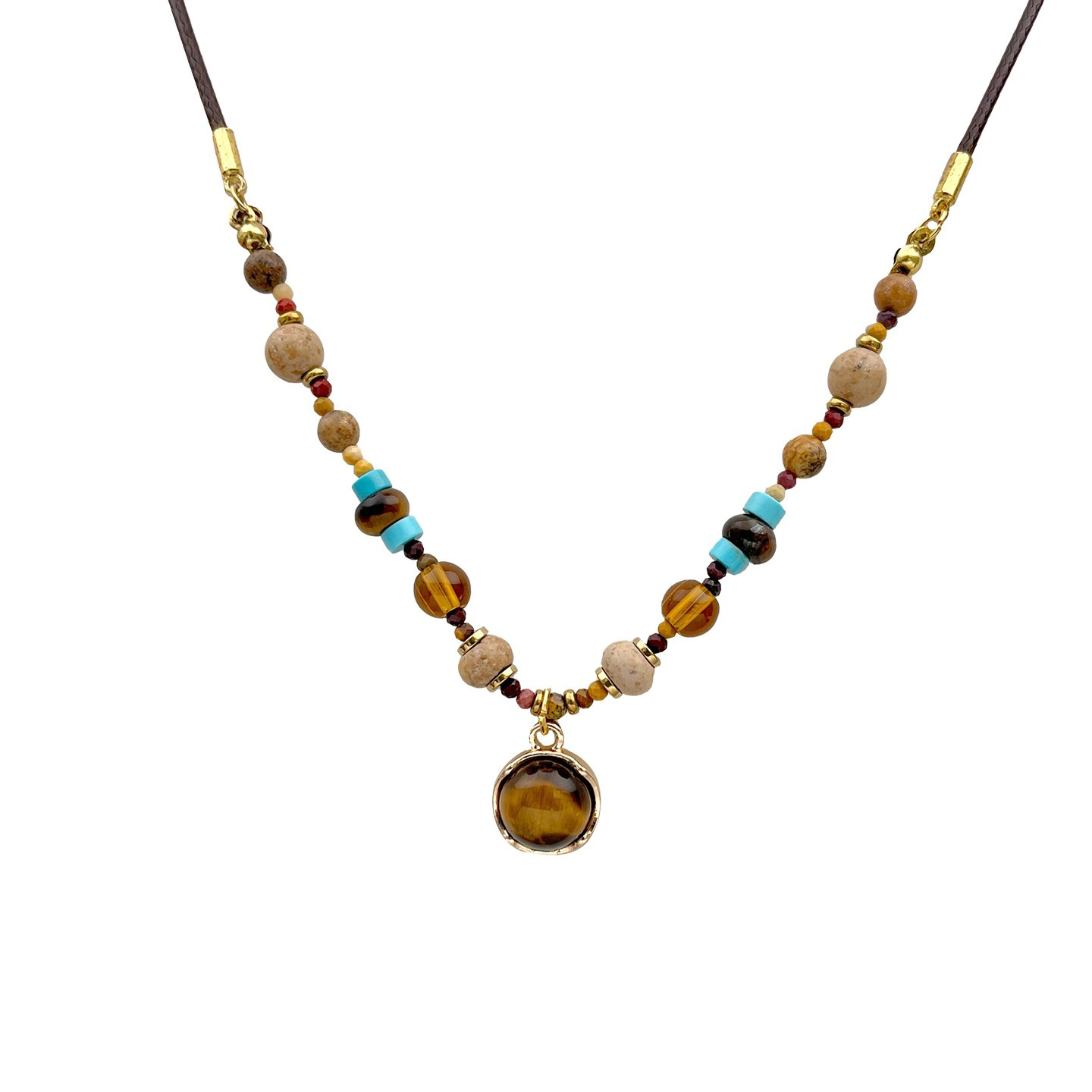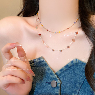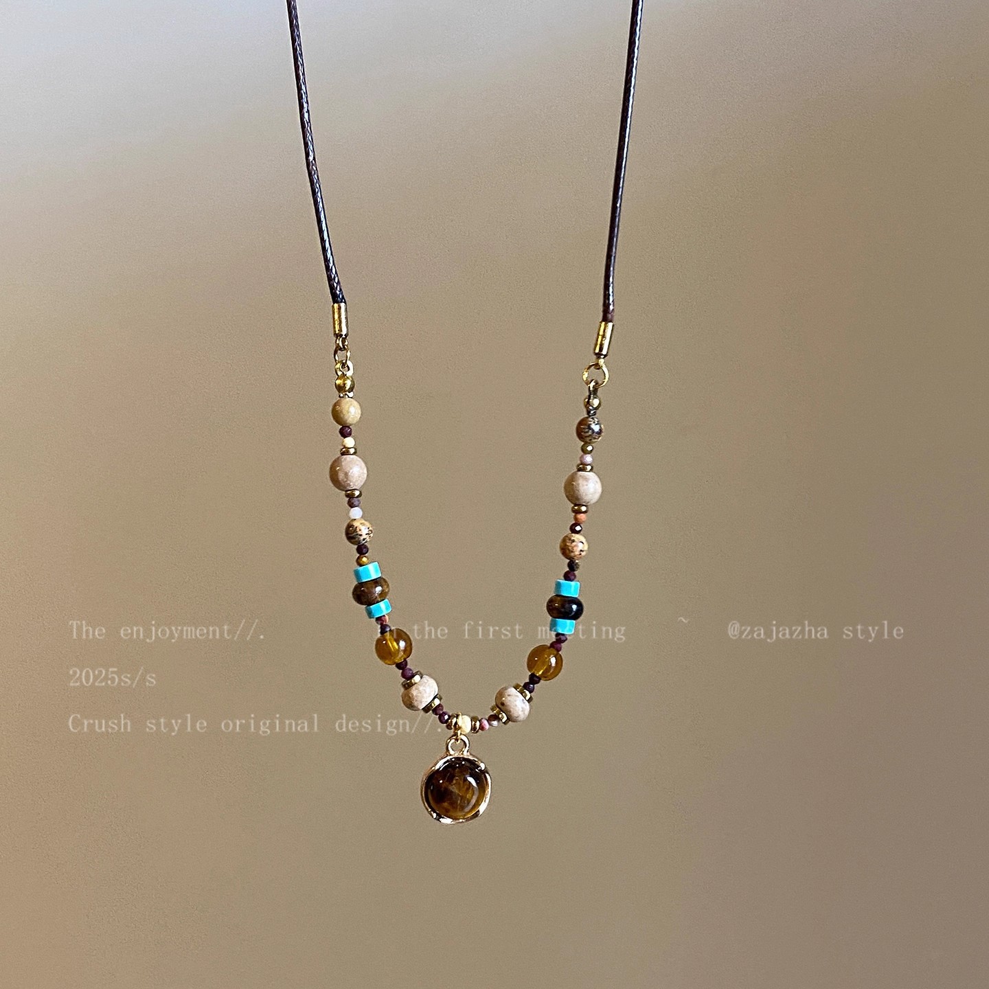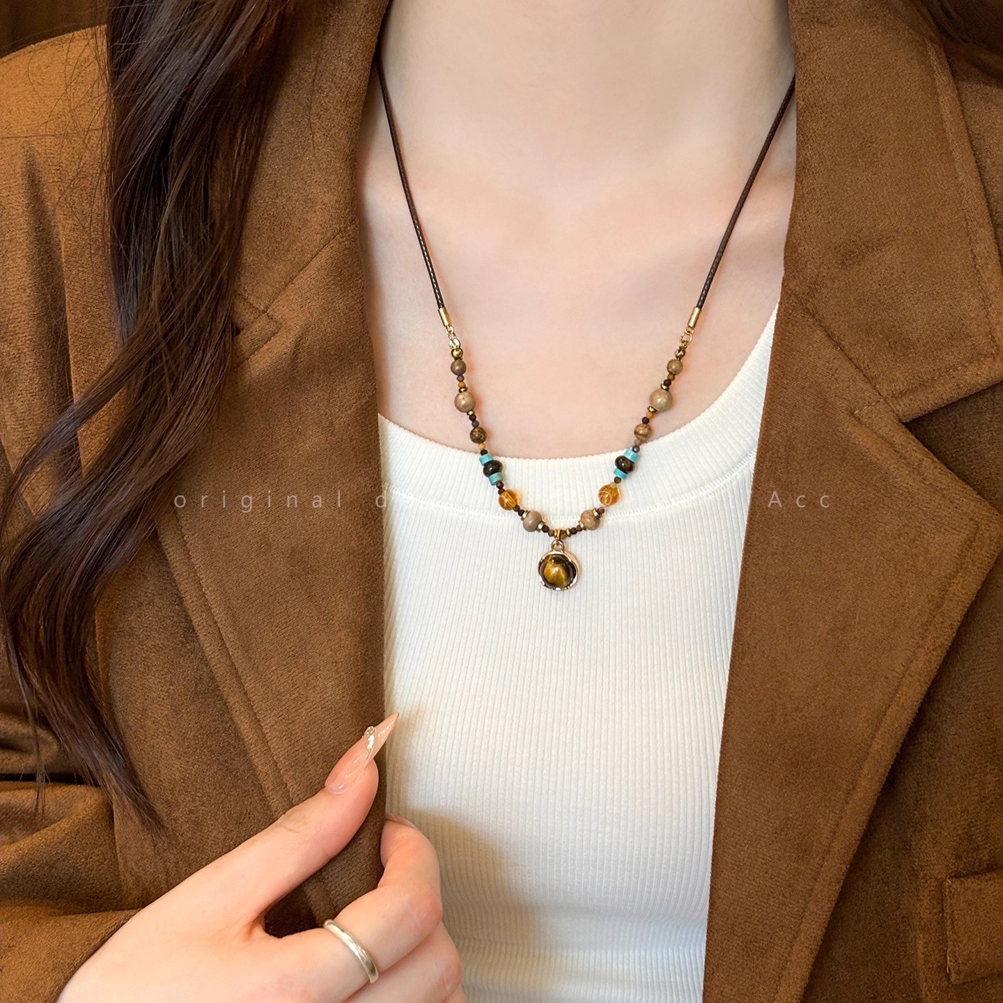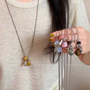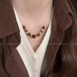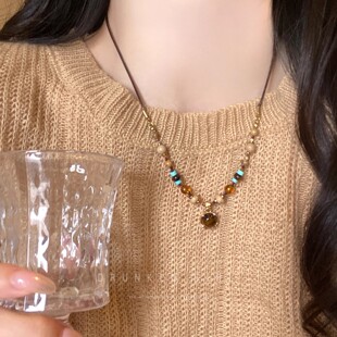 复古美拉德圆环虎眼石串珠项链女轻奢小众高级感毛衣链配饰颈链