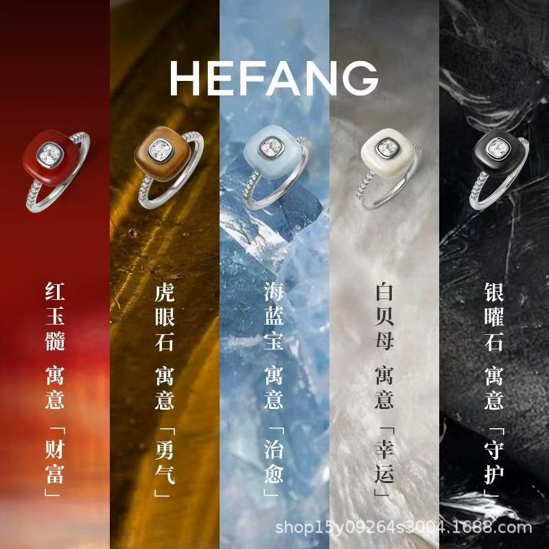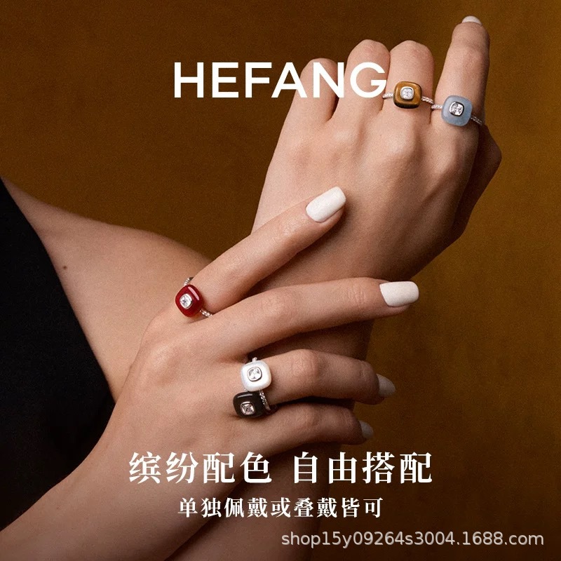 【新品】HEFANG何家珠宝半宝方糖戒指轻奢高级感配饰手饰品戒指环