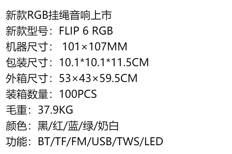跨境 FLIP 6 RGB便携式音箱户外运动挂绳时尚蓝牙迷你无线小音响