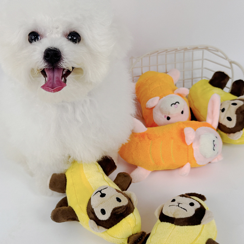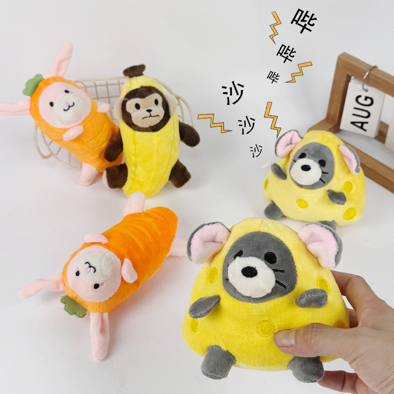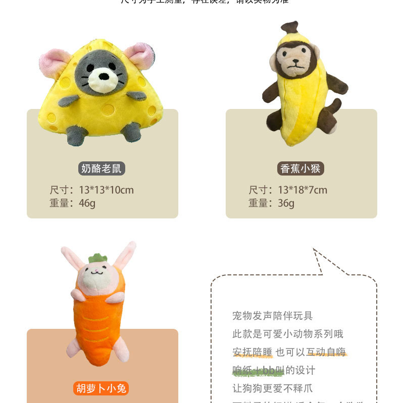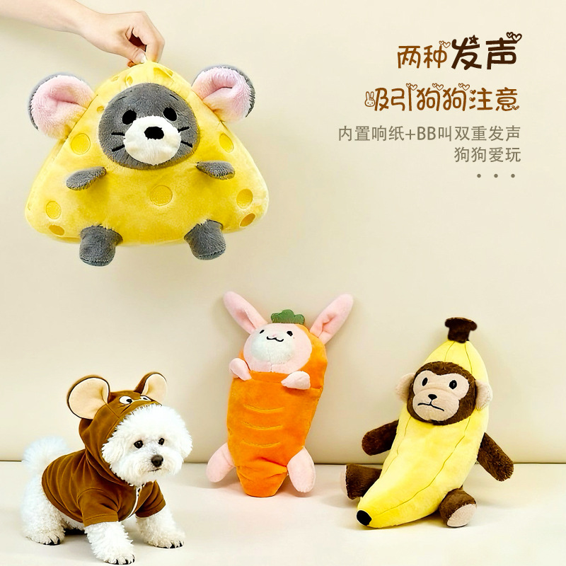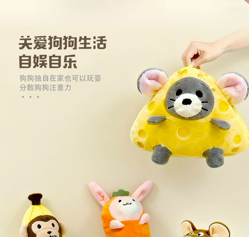 新款狗狗玩具老鼠奶酪响纸兔子猴子毛绒发声宠物玩具用品工厂批发