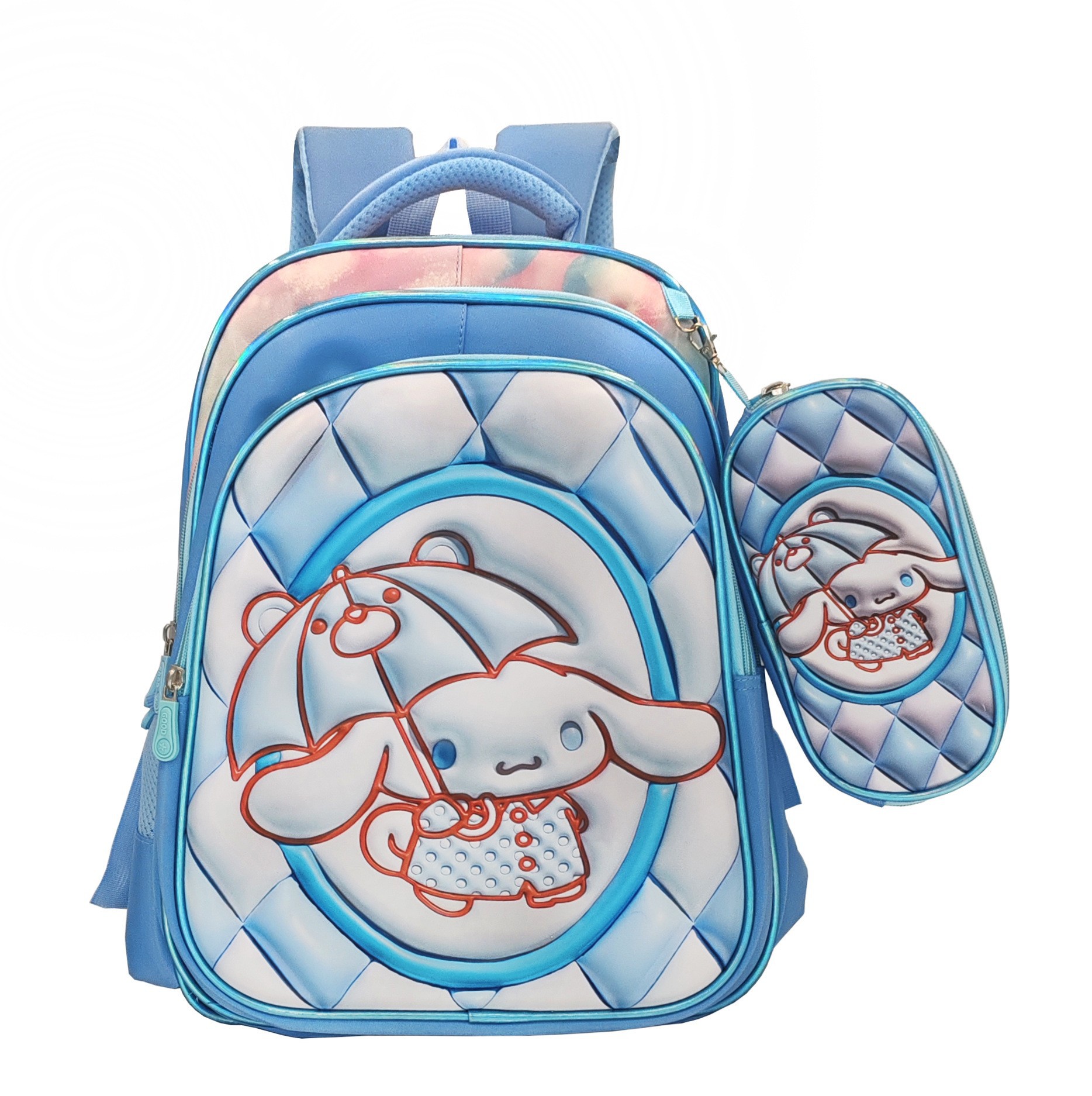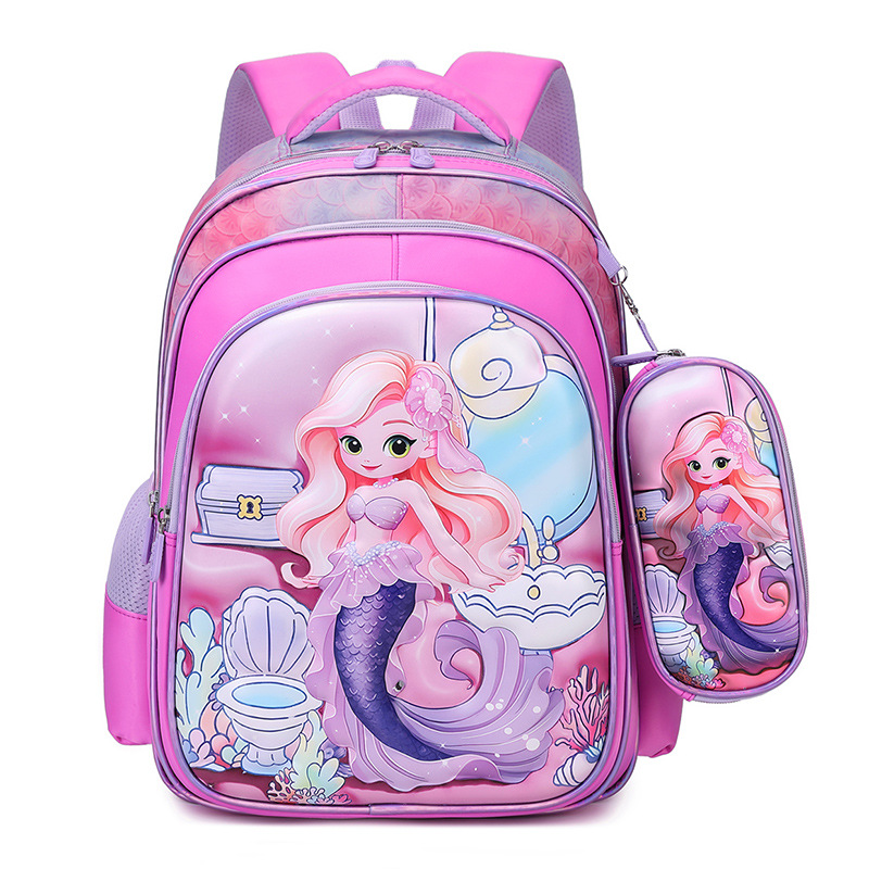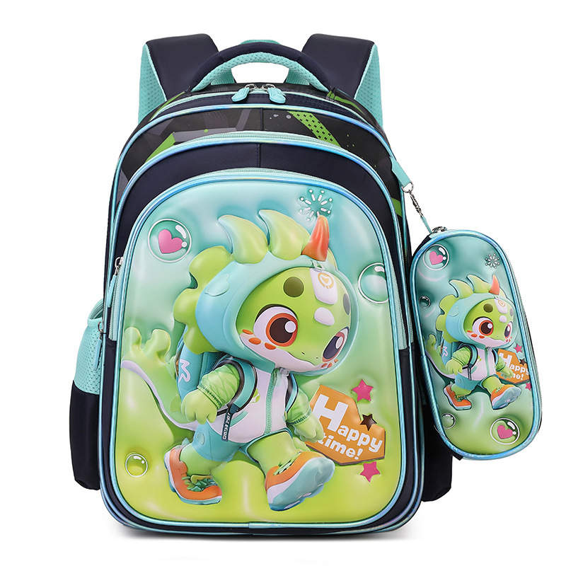 现货跨境双肩包3~6年级两件套背包凹凸亮皮3D皮料书包小学生减负