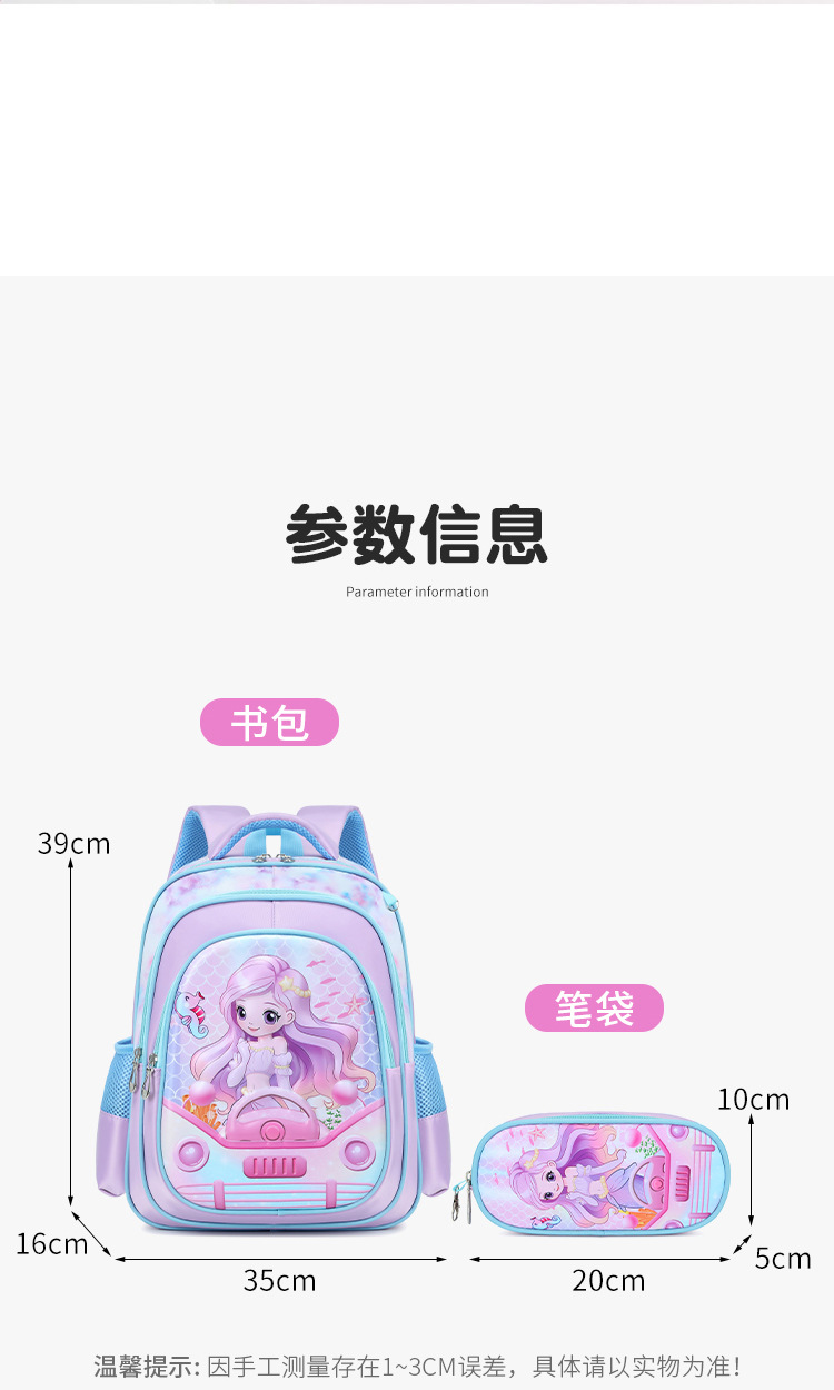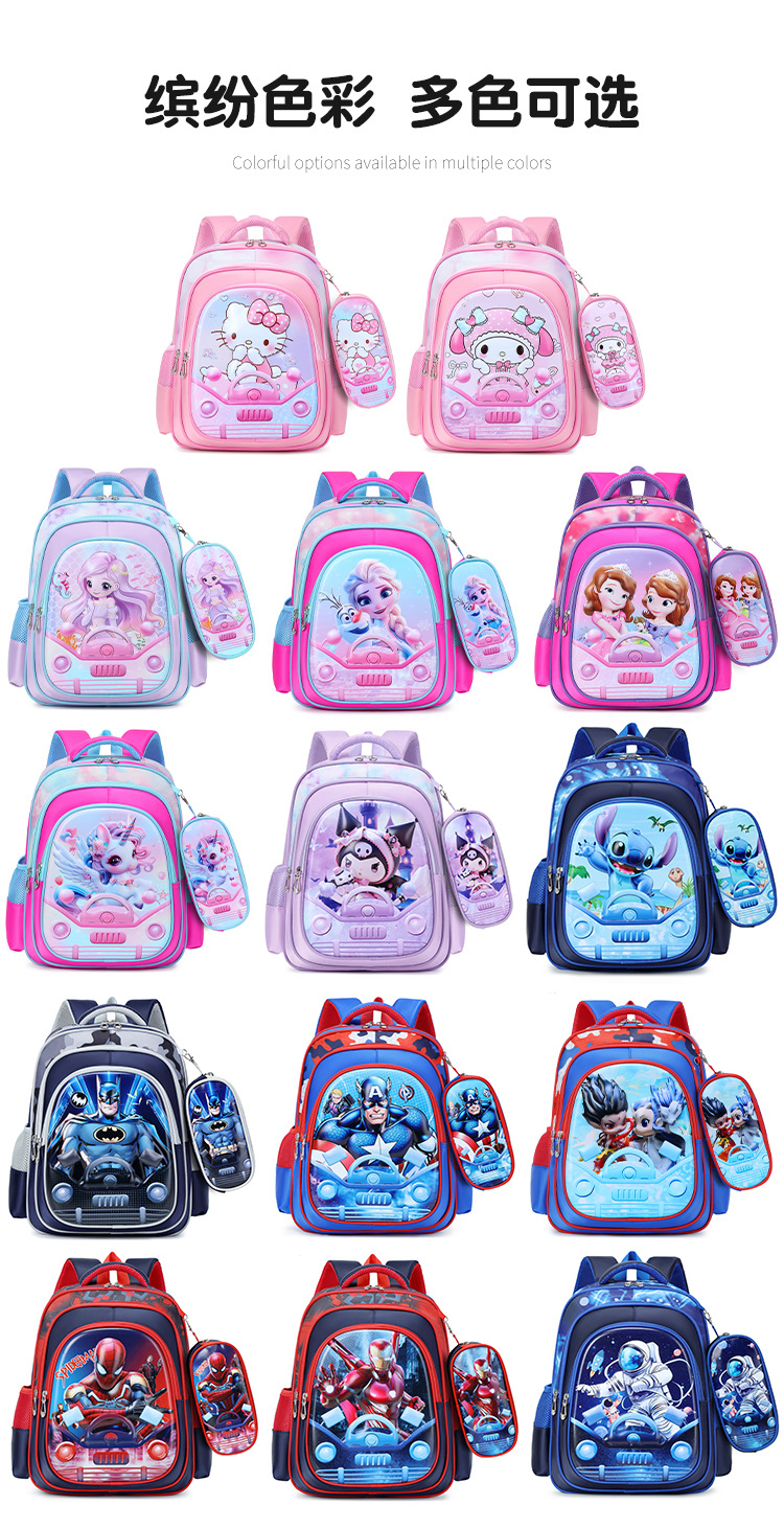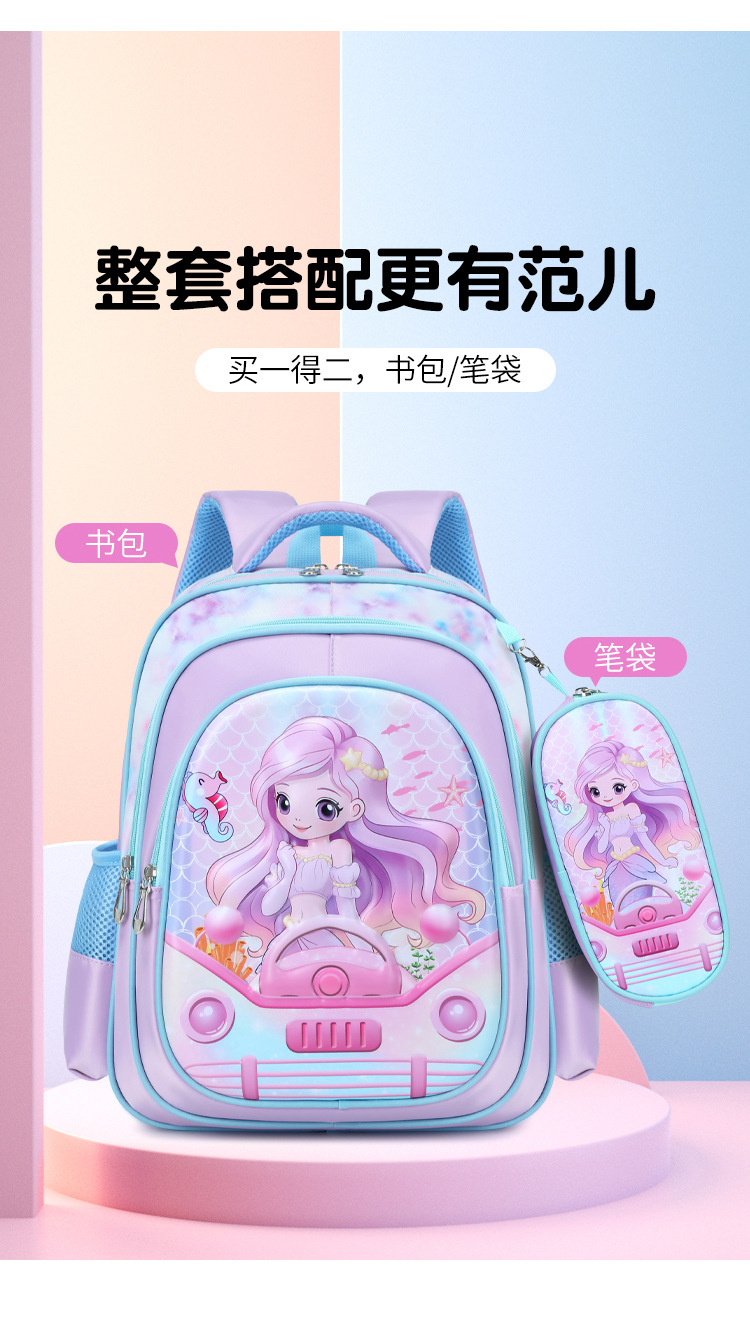外贸新款1~3年级小学生书包卡通公主男女儿童太空人双肩包两件套