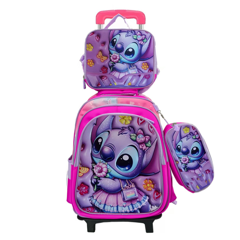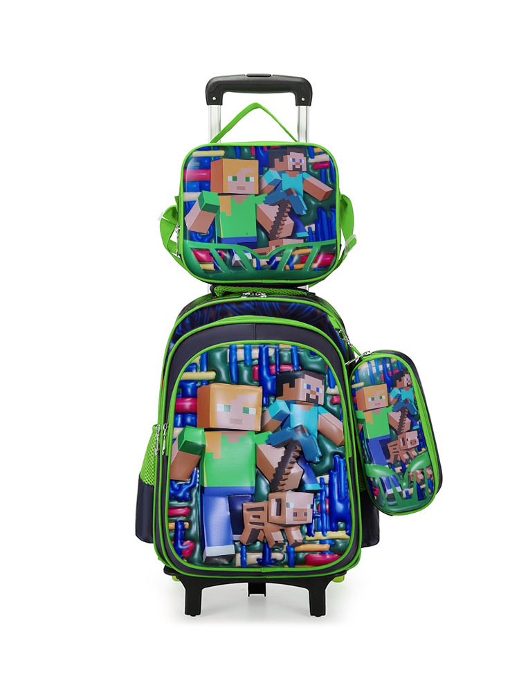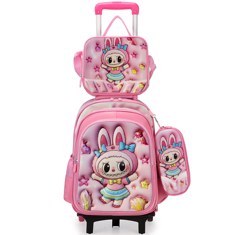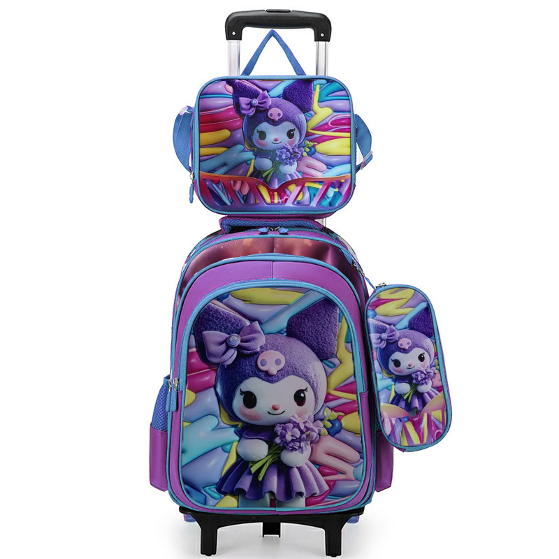 工厂批发卡皮巴拉小学生三件套书包3D涤纶面料大容量拉杆书包
