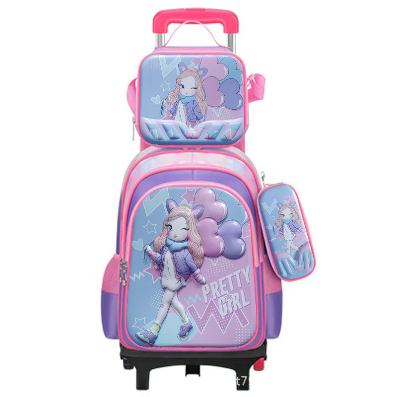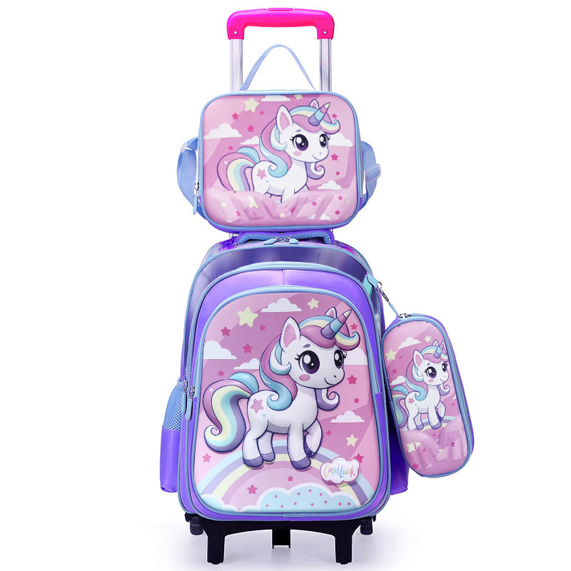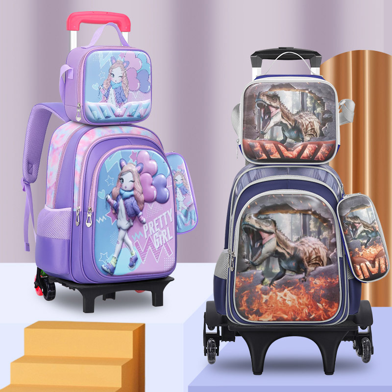 新款小学生可装拉杆书包午餐包笔袋三件套儿童可爱卡通双肩包