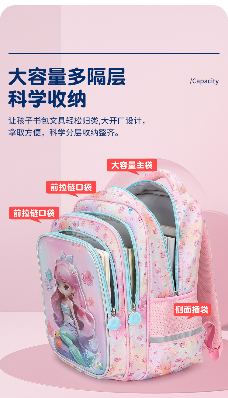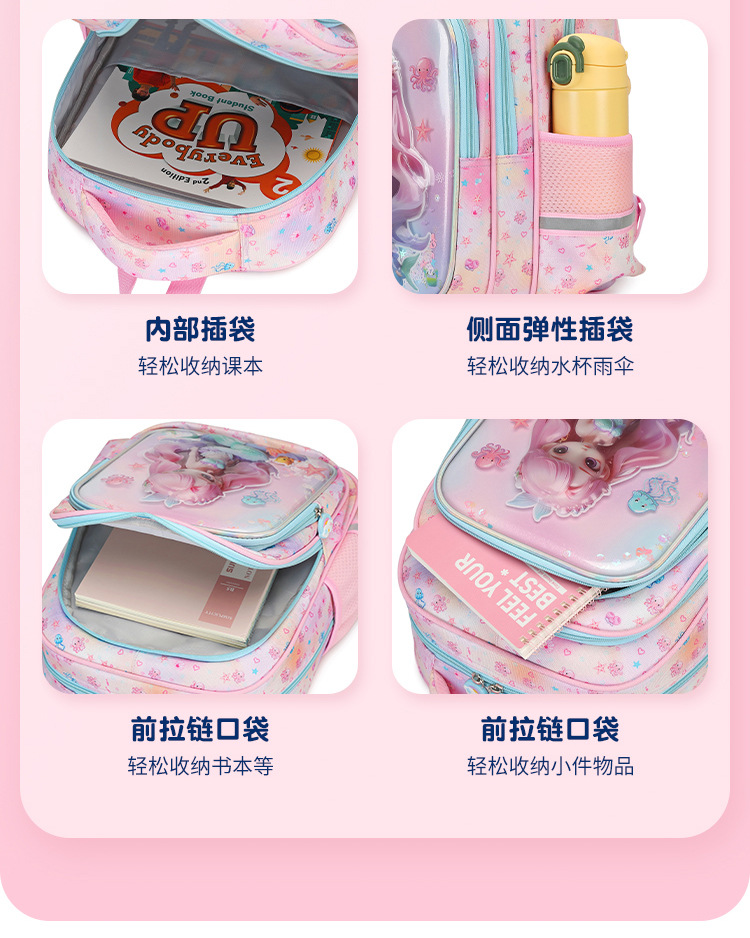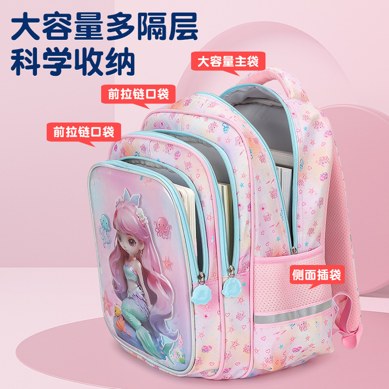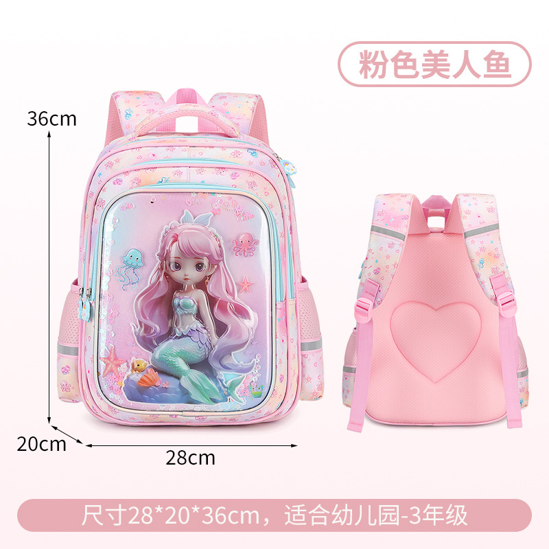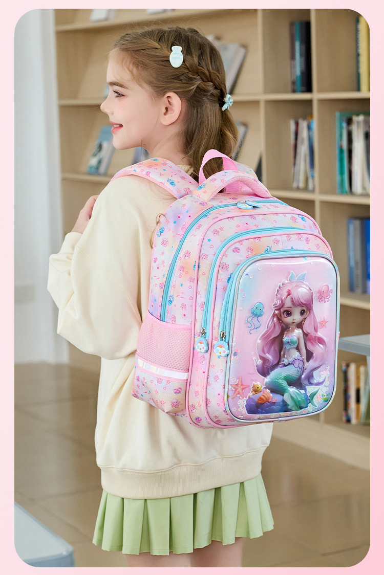 工厂批发新款美人鱼小学生书包减负护脊3D透明壳卡通大容量双肩包