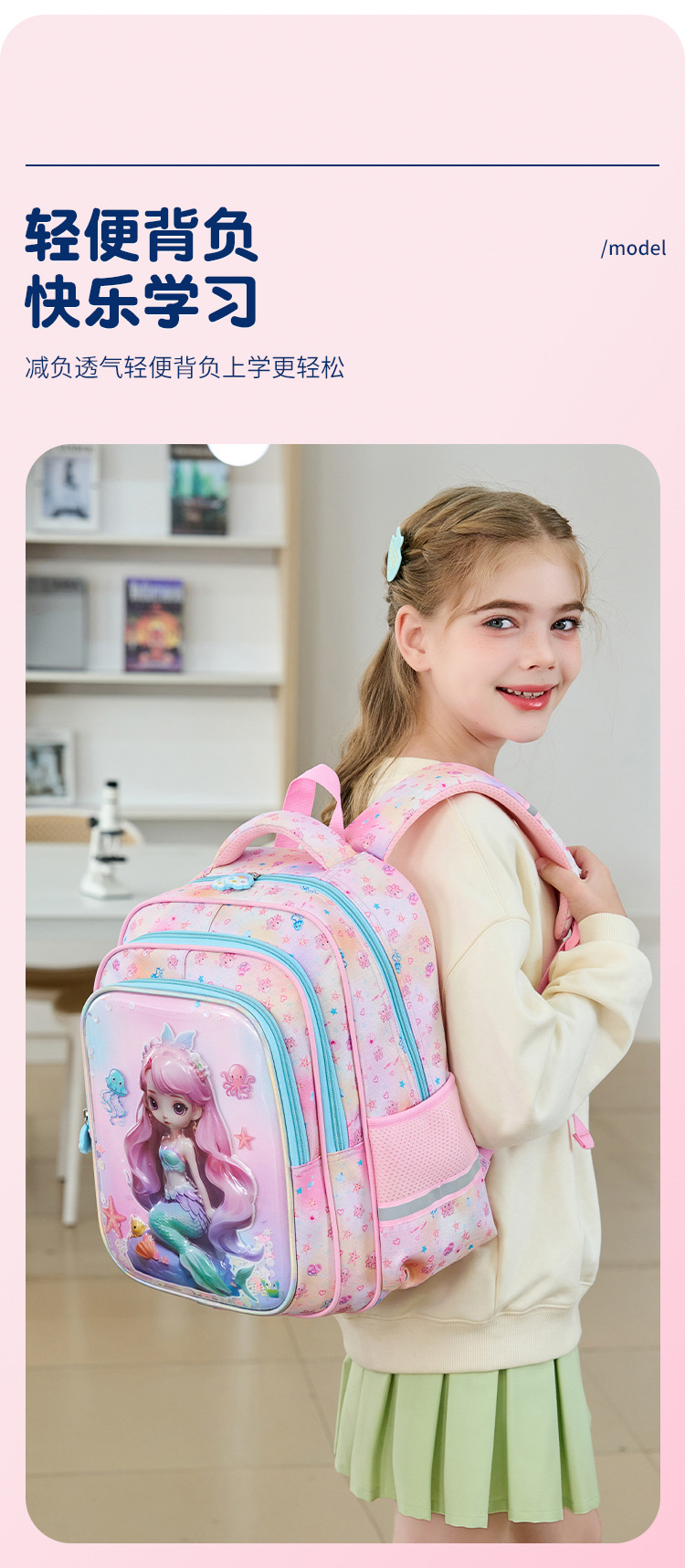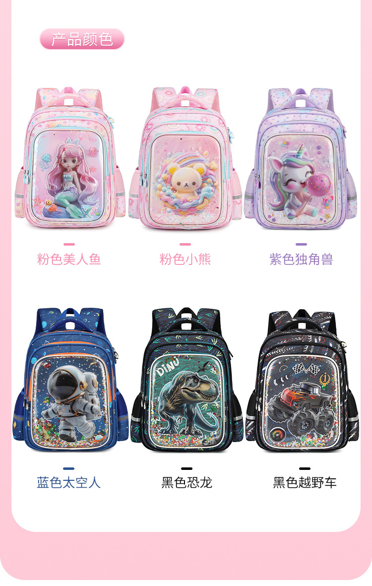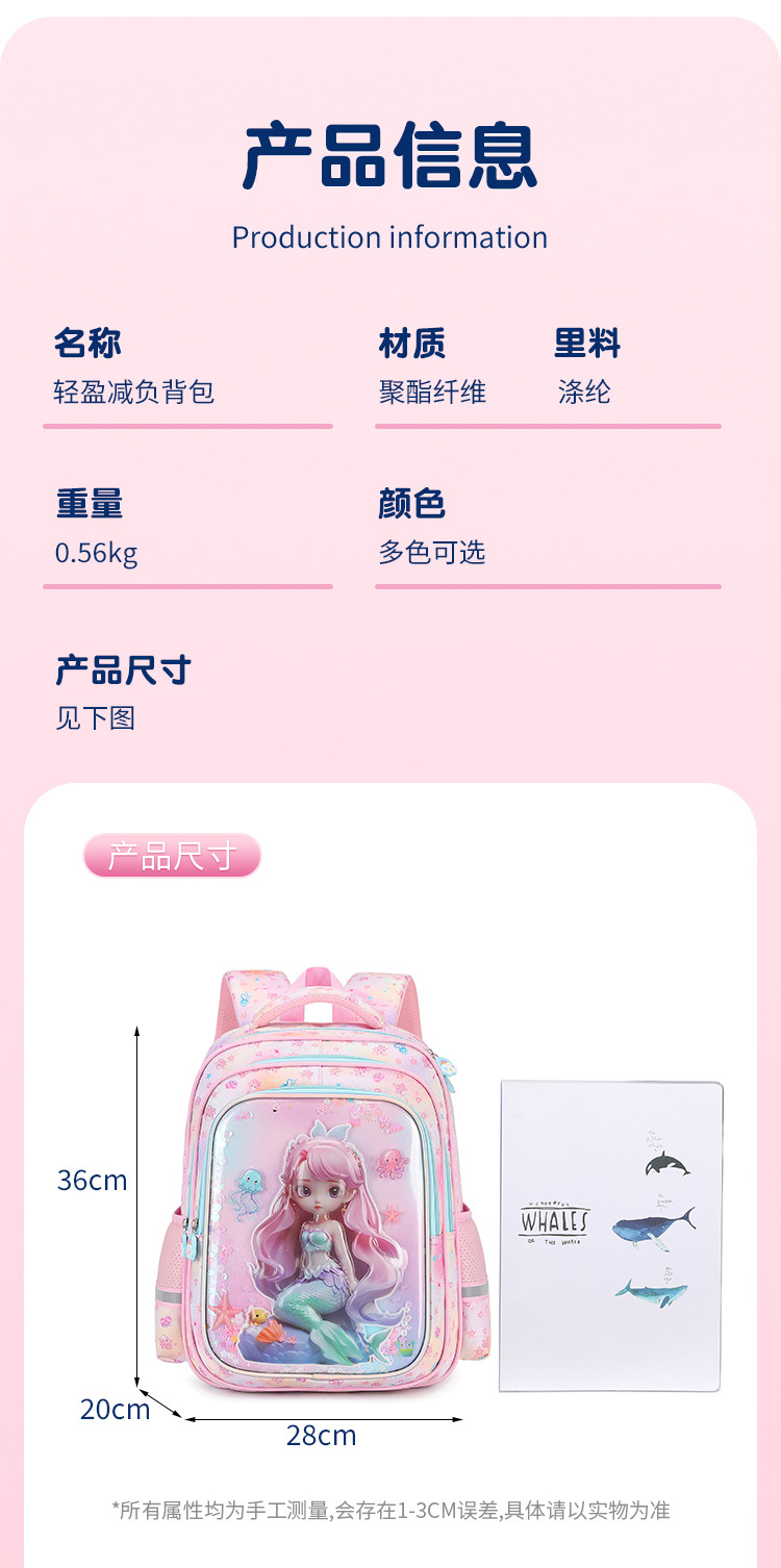 工厂批发新款美人鱼小学生书包减负护脊3D透明壳卡通大容量双肩包