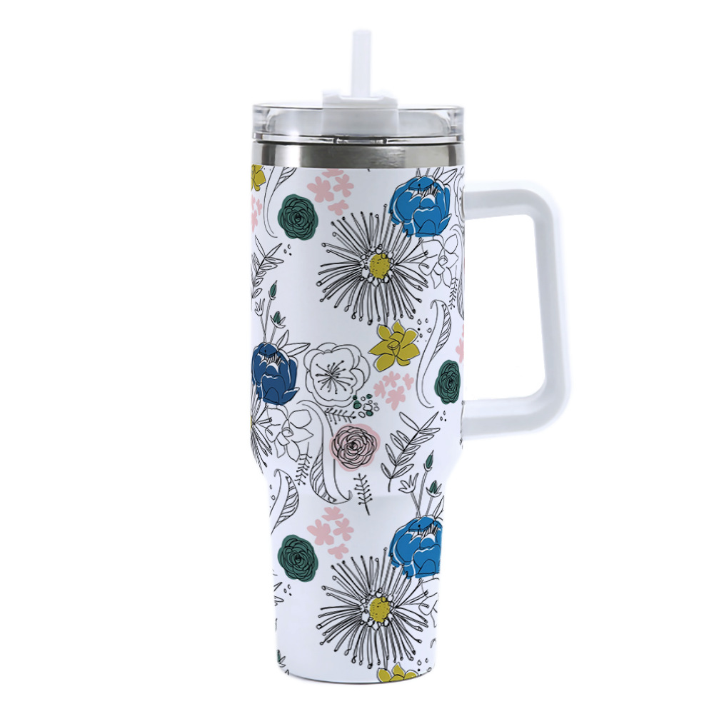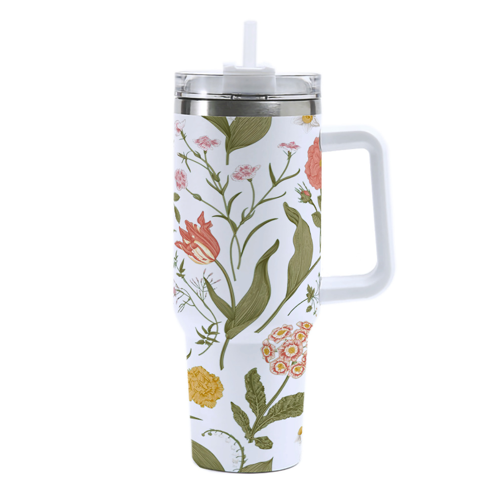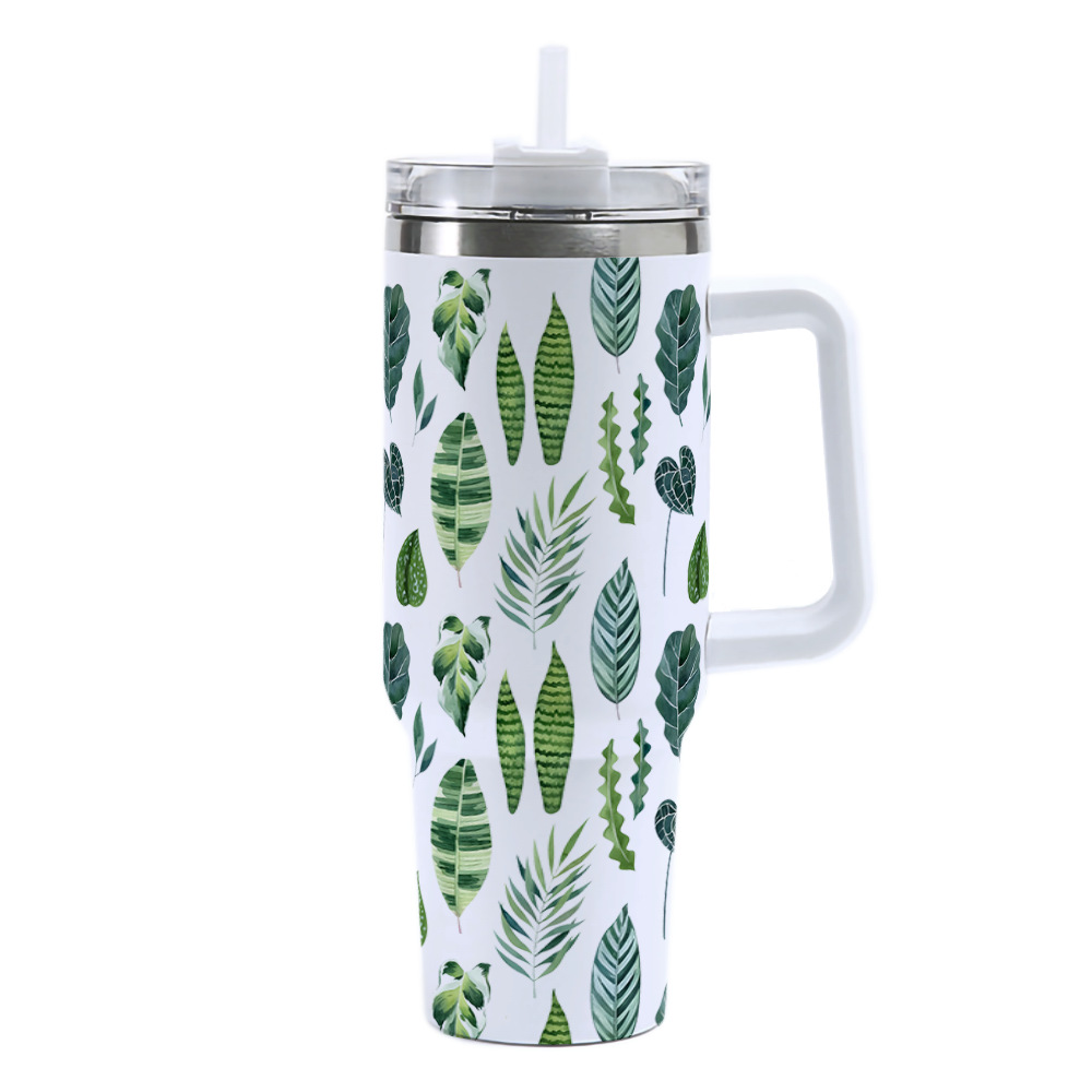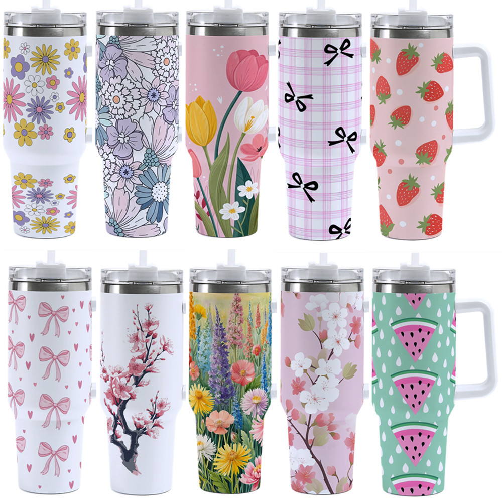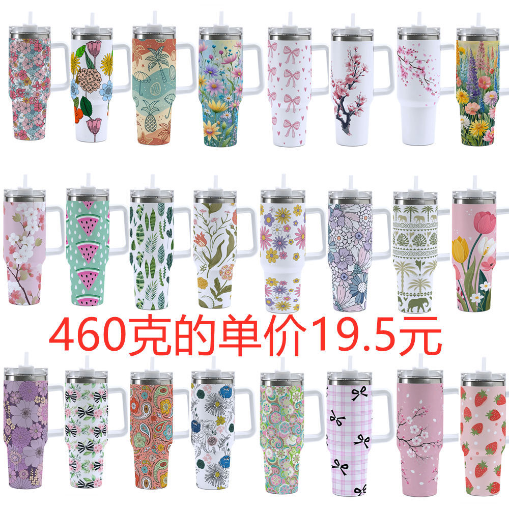 东南亚清新植物花朵印花40oz冰霸杯不锈钢汽车杯tumbler保温杯