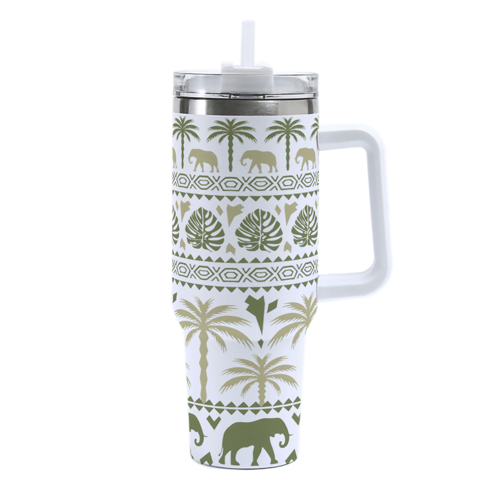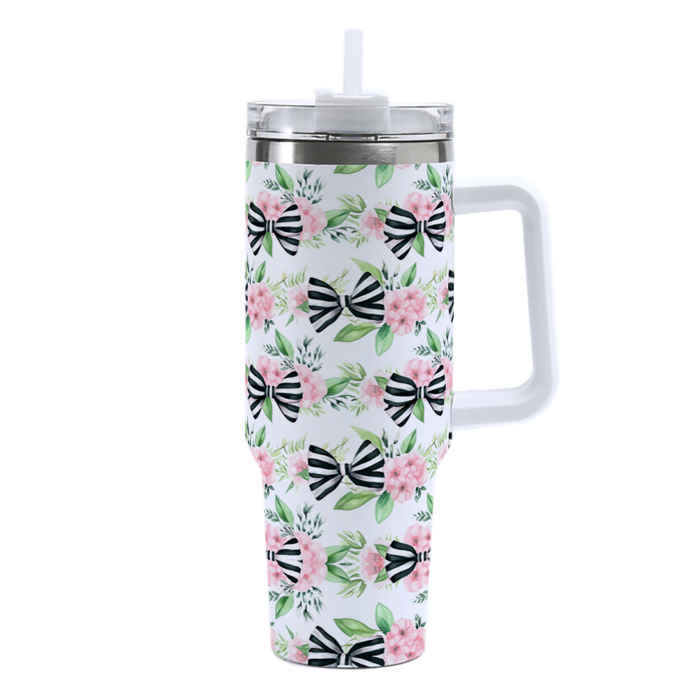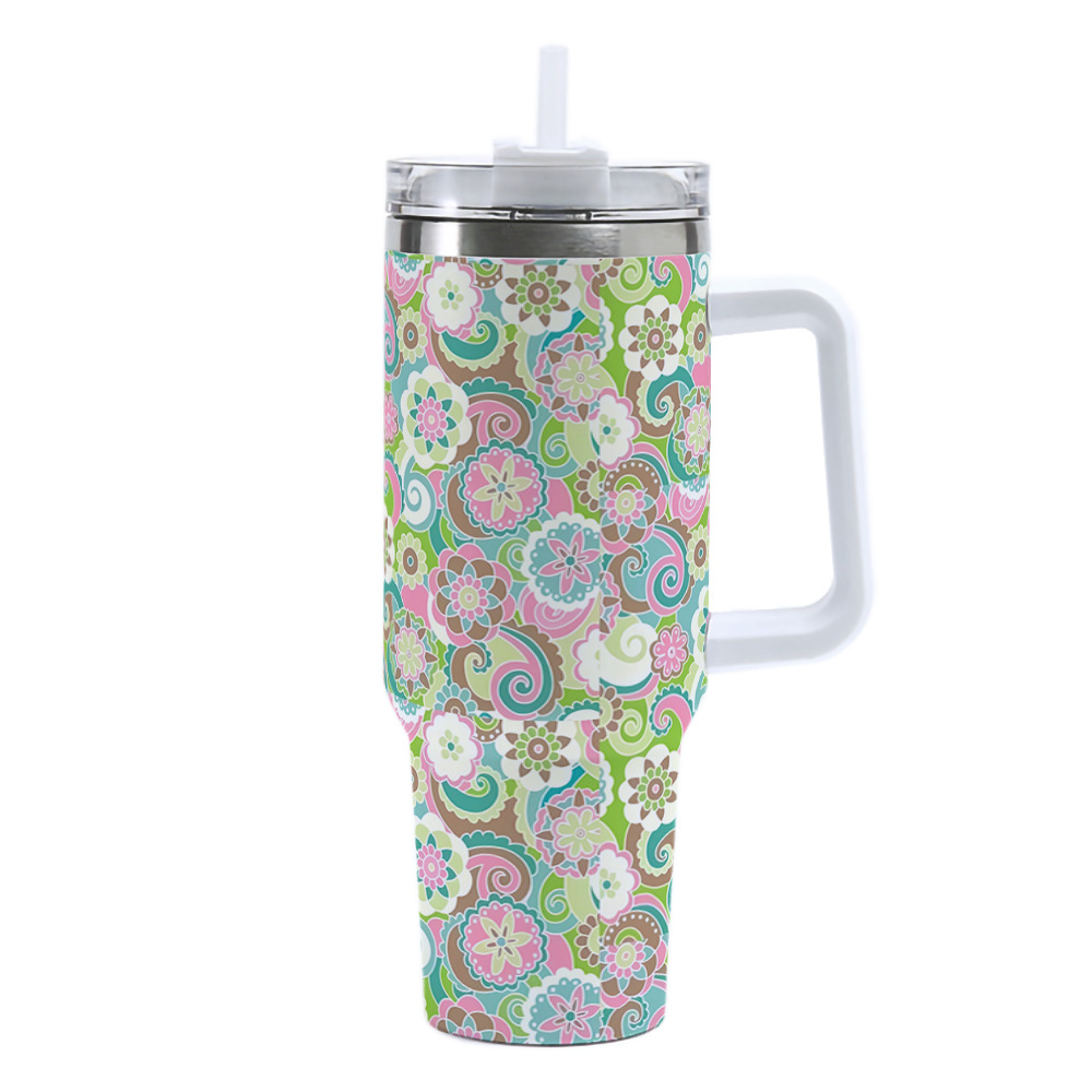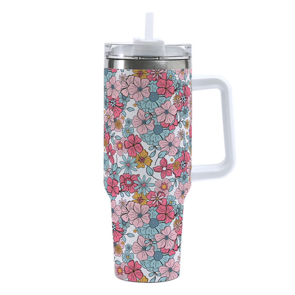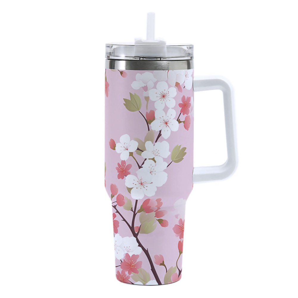 东南亚清新植物花朵印花40oz冰霸杯不锈钢汽车杯tumbler保温杯