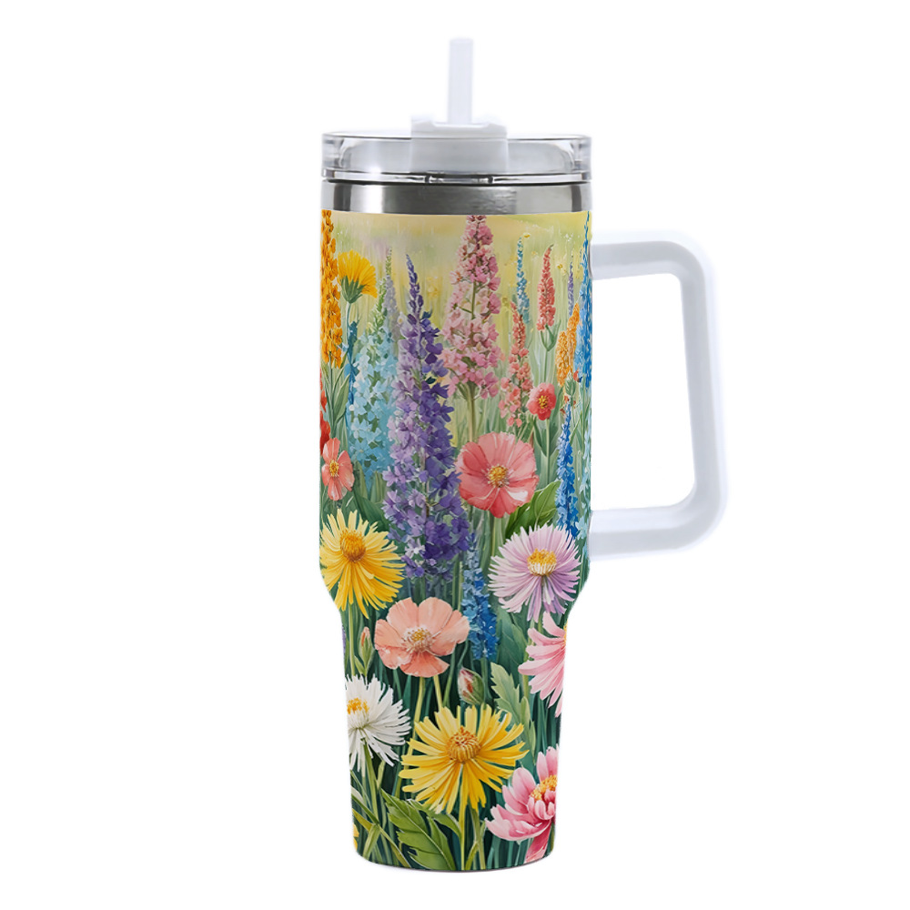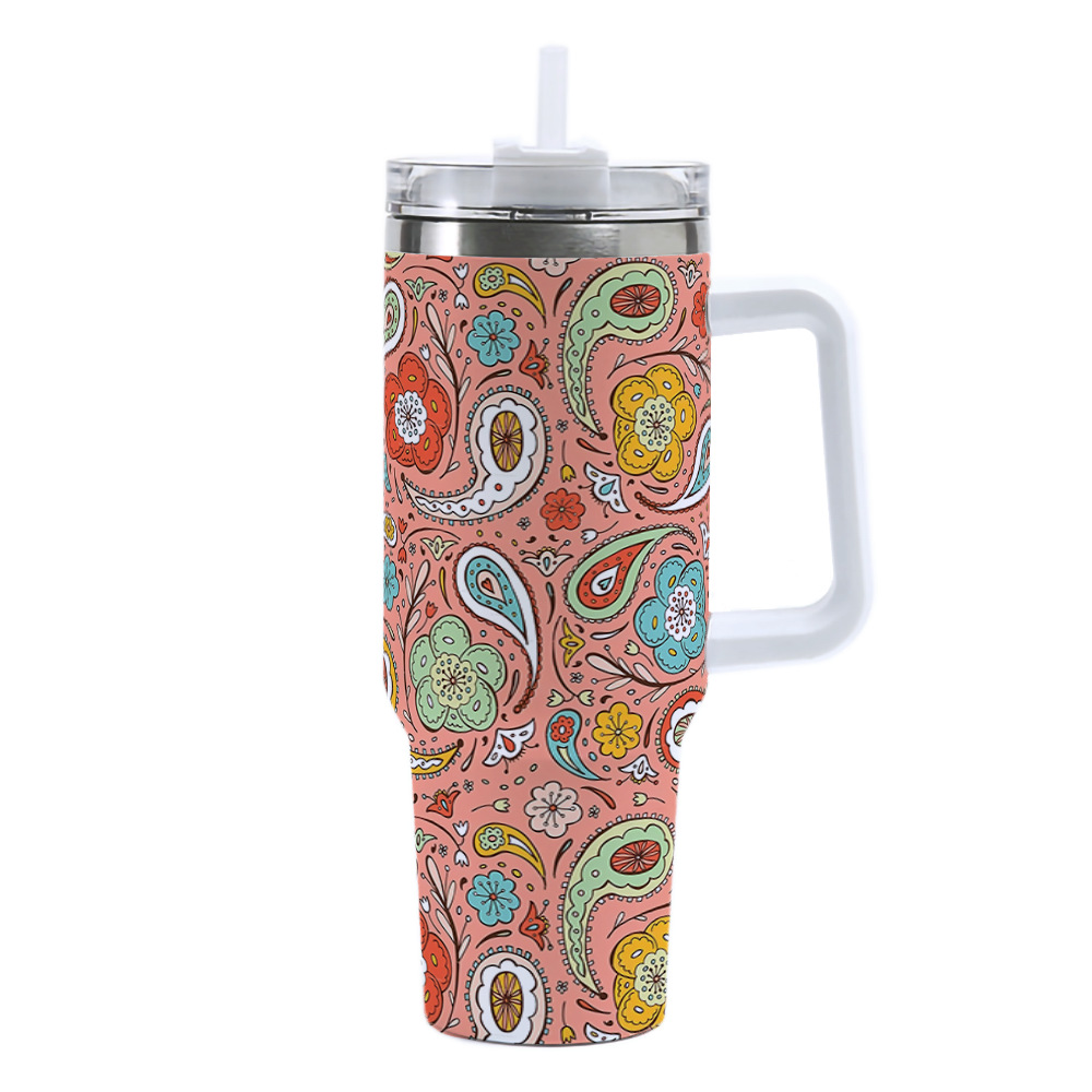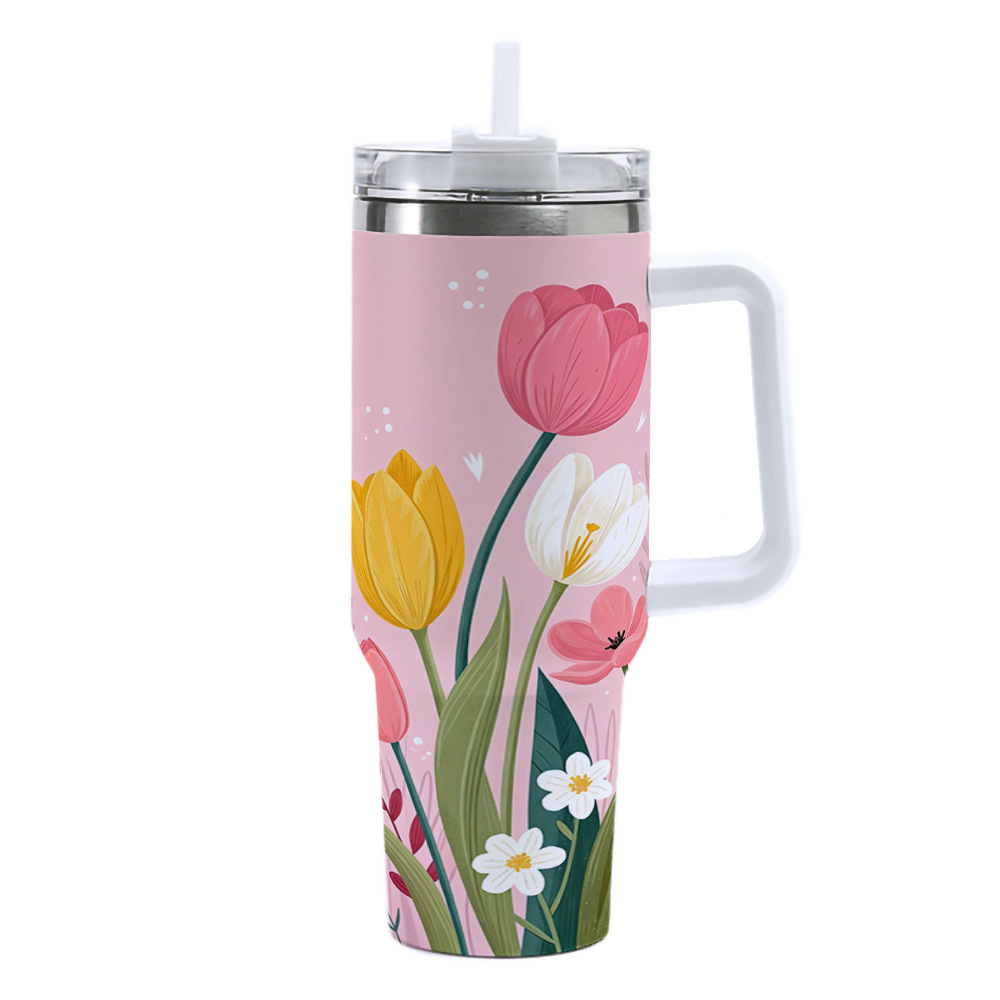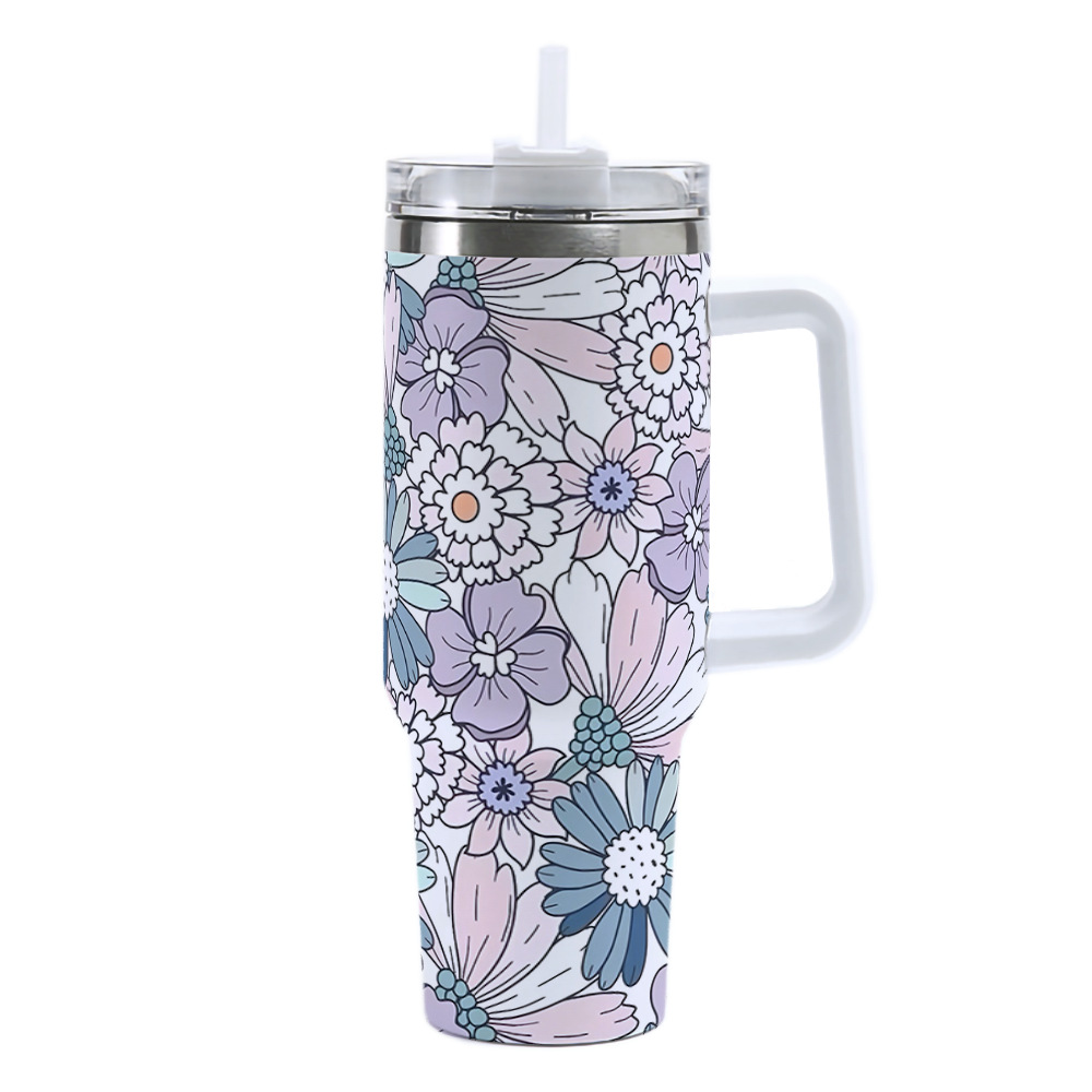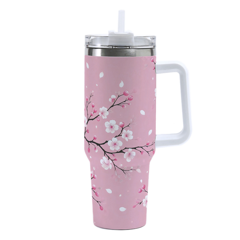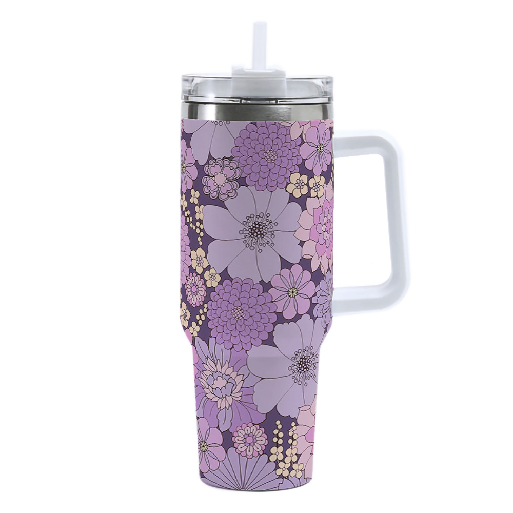 东南亚清新植物花朵印花40oz冰霸杯不锈钢汽车杯tumbler保温杯