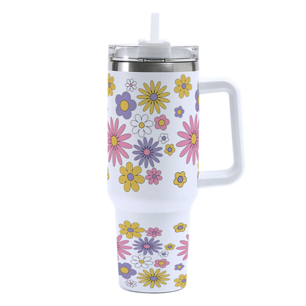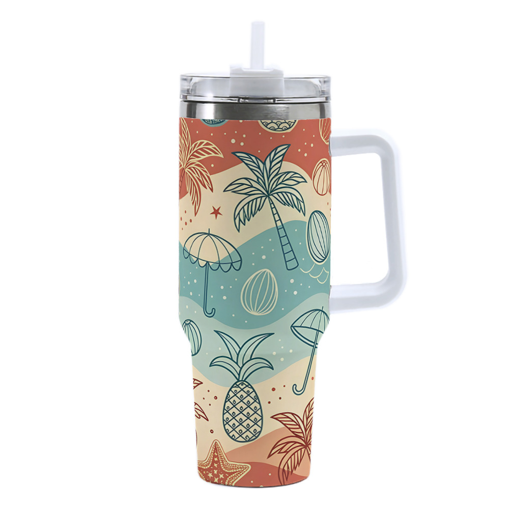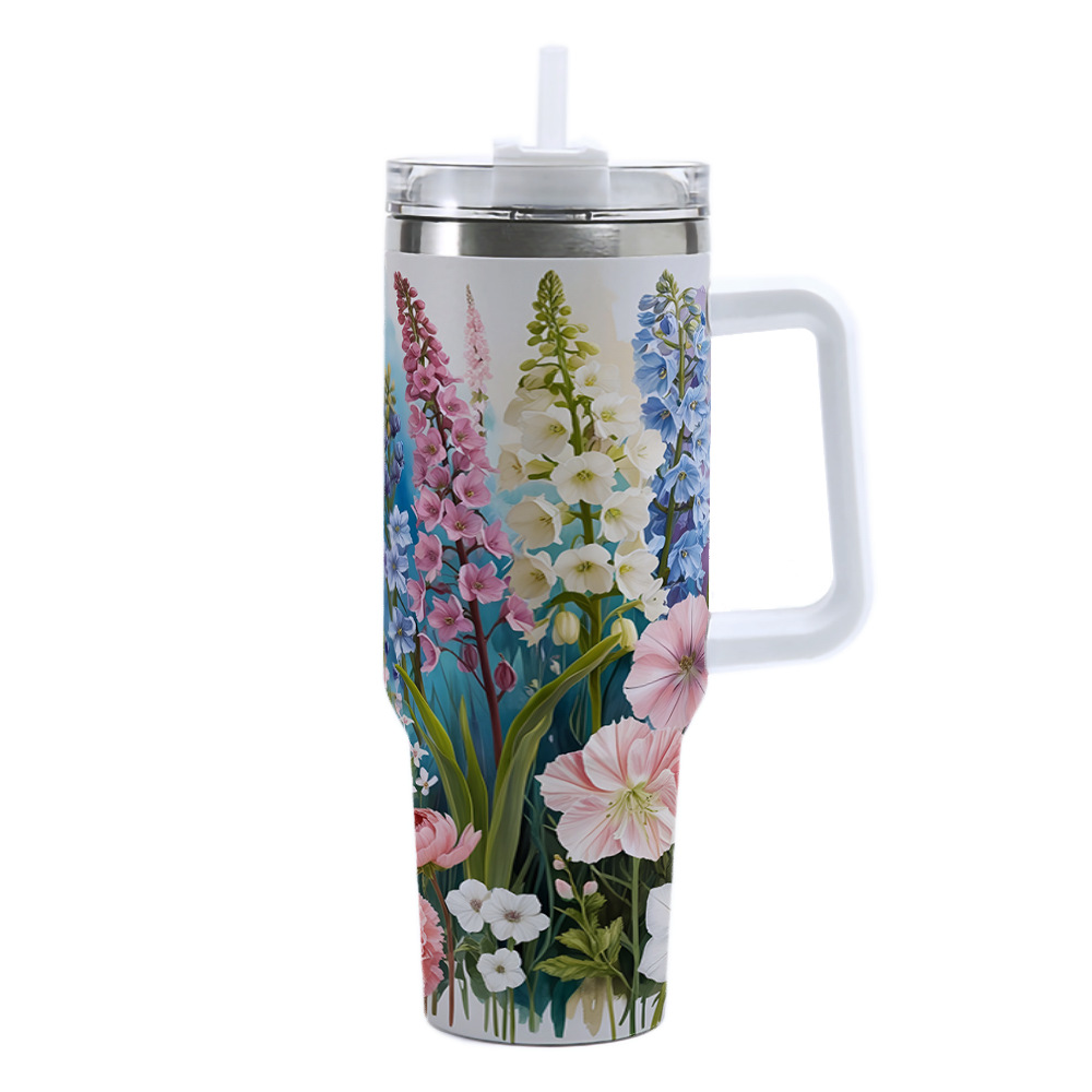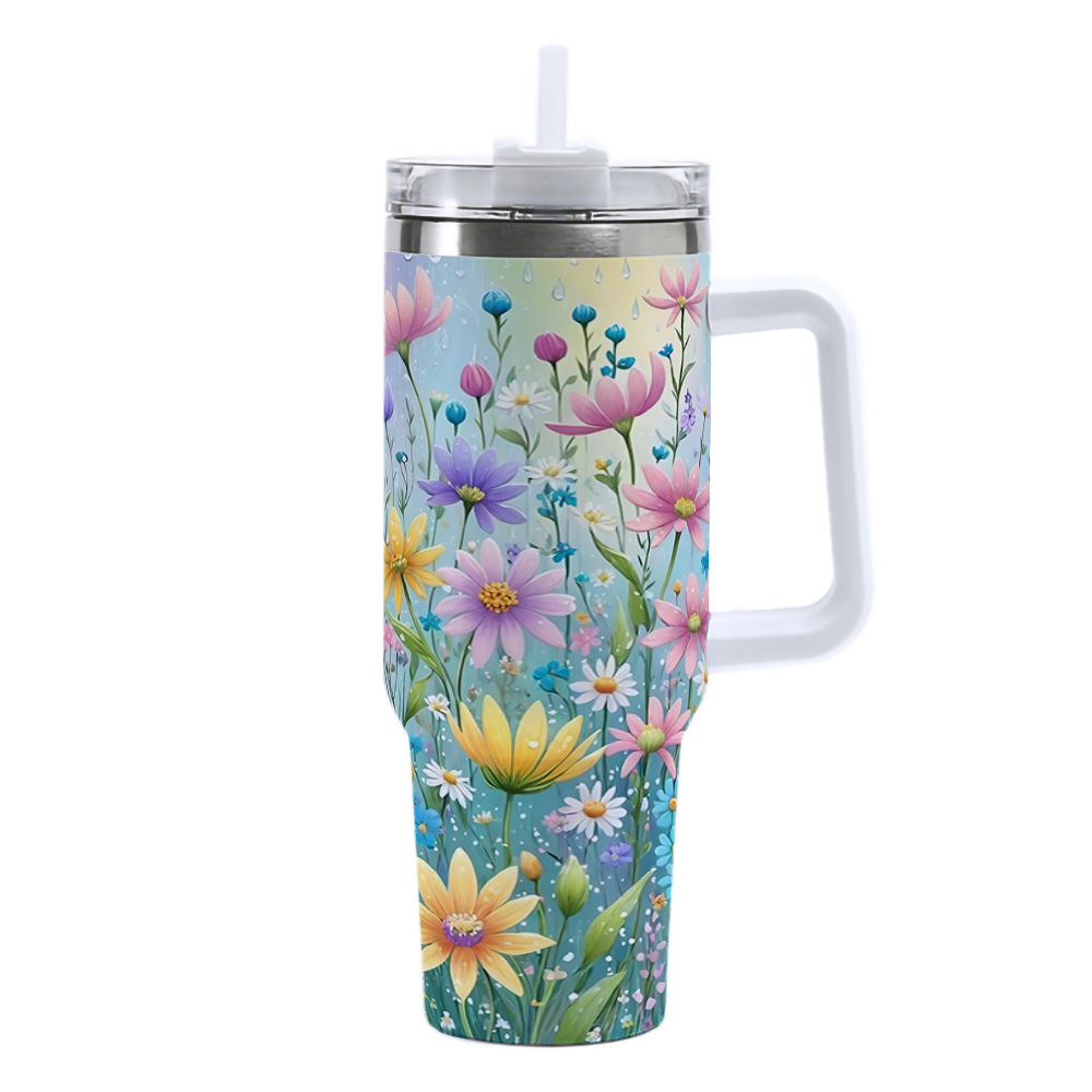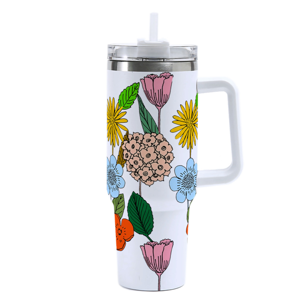 东南亚清新植物花朵印花40oz冰霸杯不锈钢汽车杯tumbler保温杯