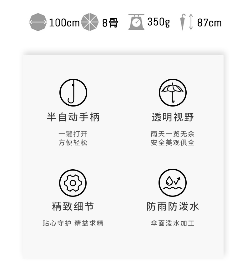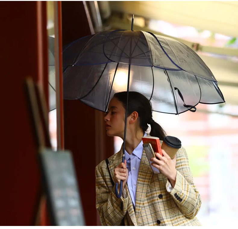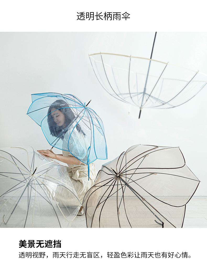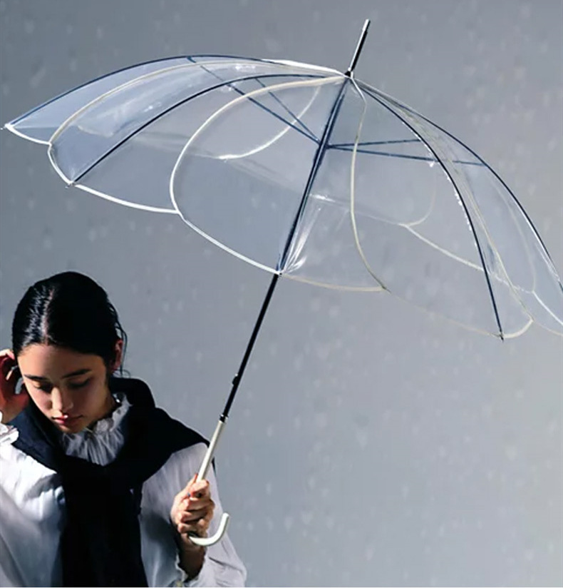 transparent umbrella 8 bone petals creative thickening straight umbrella ultra-light boys and girls japanese fresh automatic transparent umbrella
