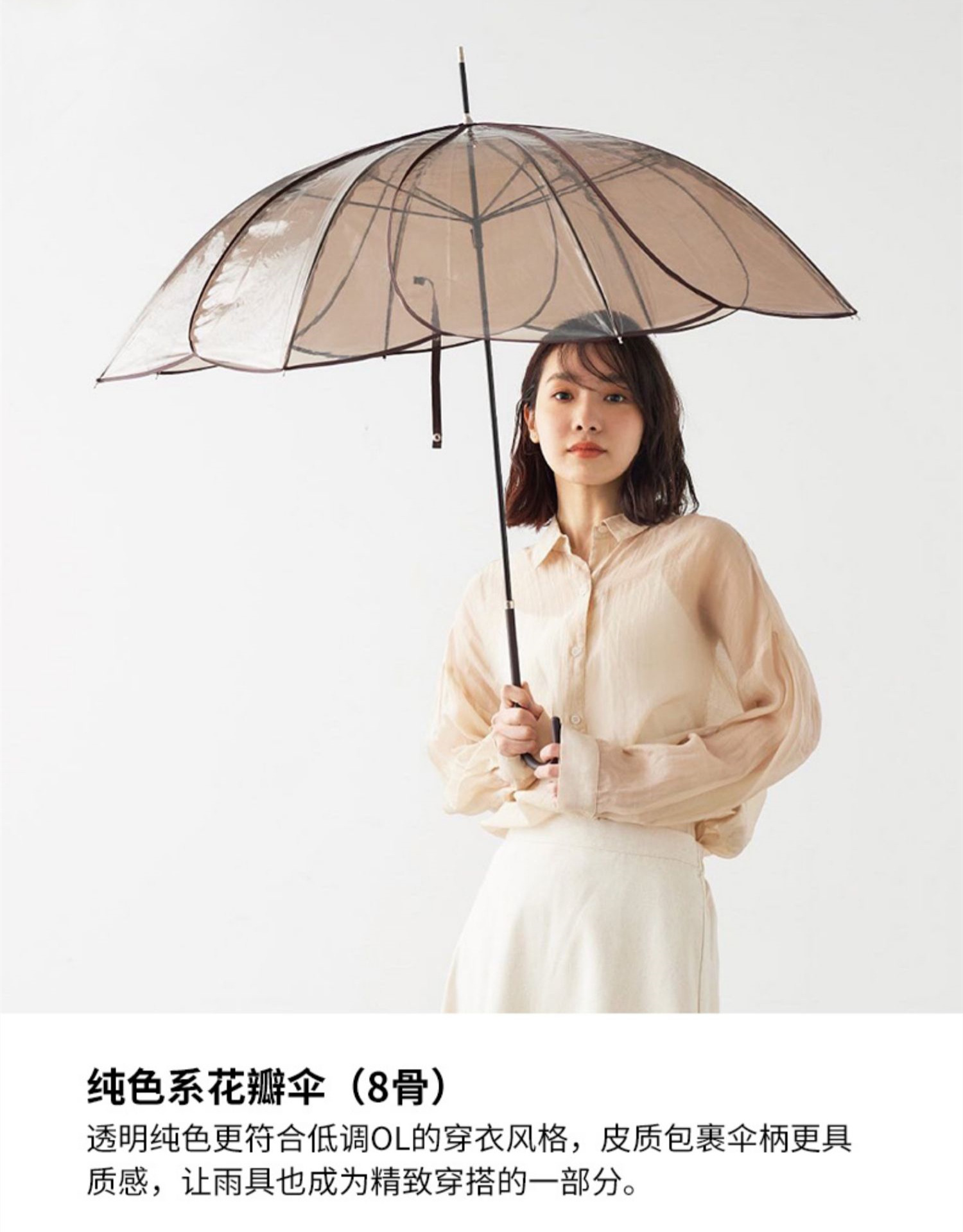 透明伞8骨花瓣创意加厚直杆伞超轻男女生日本小清新自动透明雨伞