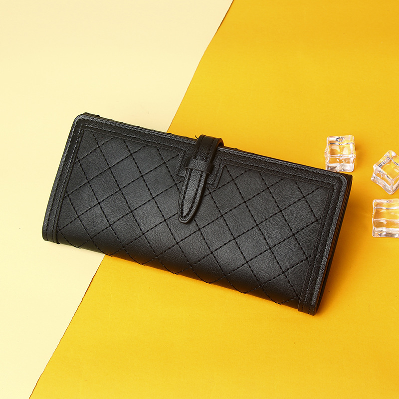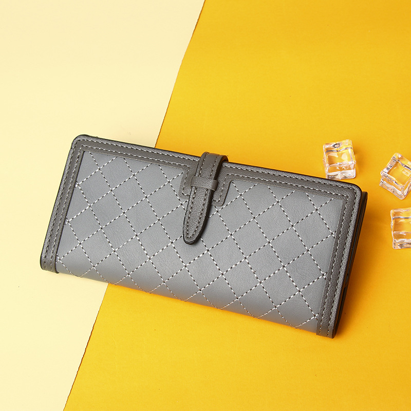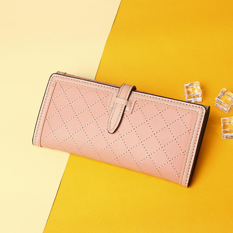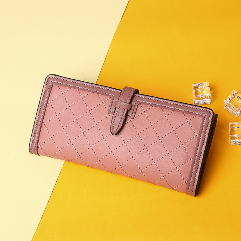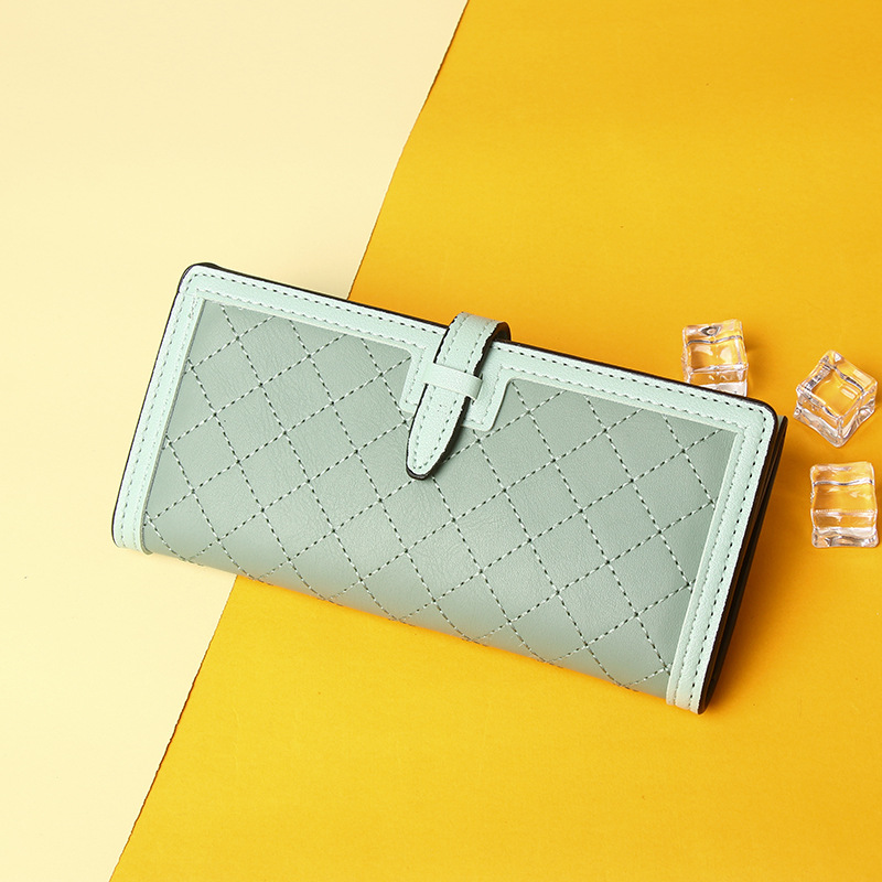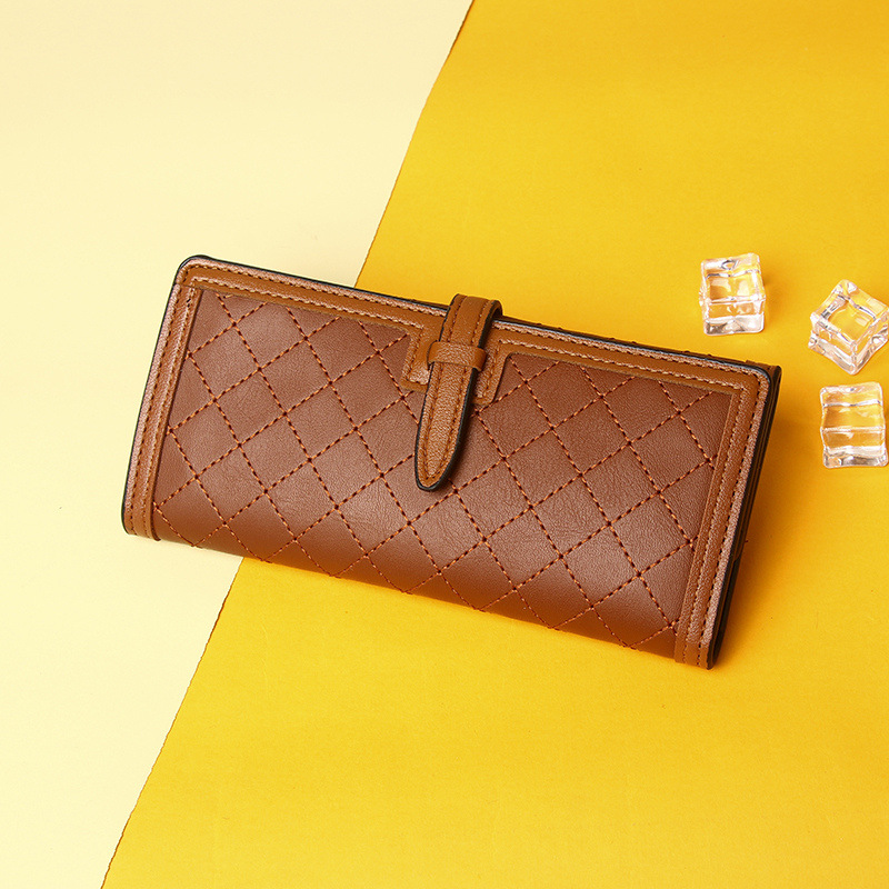 钱包长款女生2025新款小众设计三折菱格绣线零钱包手拿包