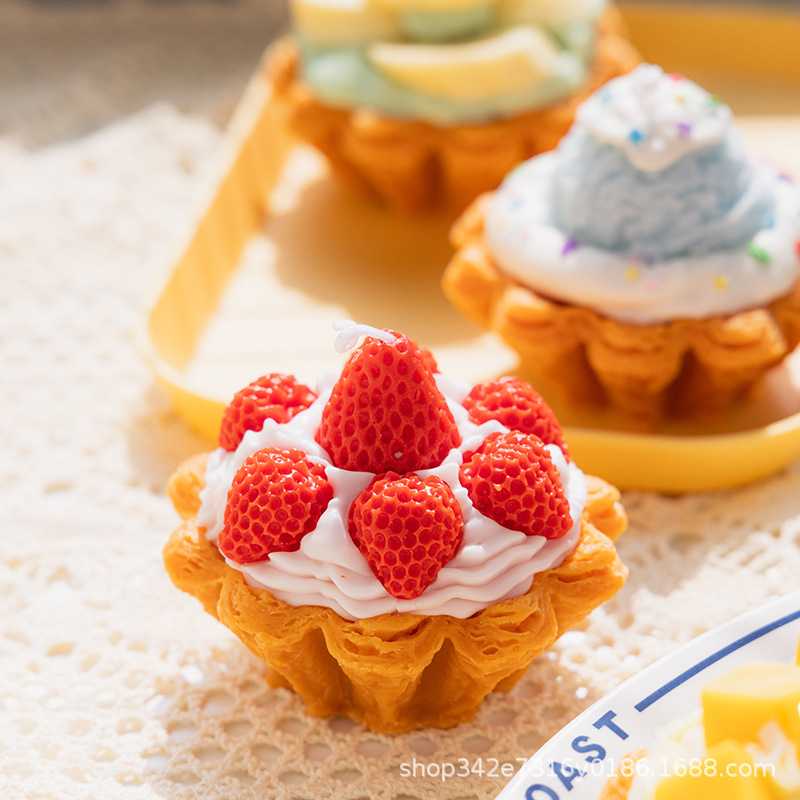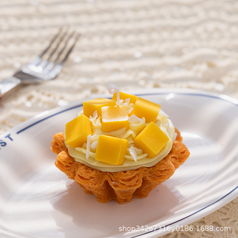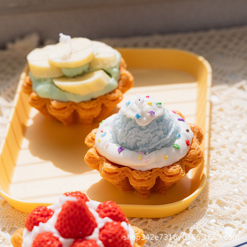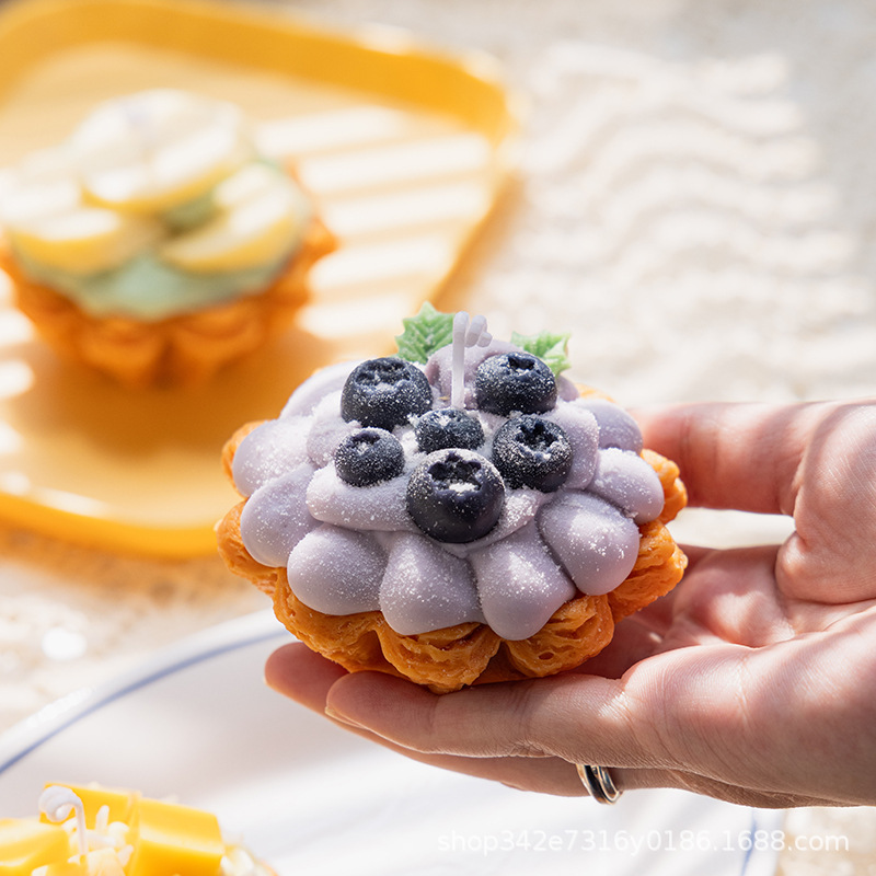 大豆蜡可颂蛋挞甜品蛋糕香薰蜡烛摆件草莓蓝莓水果挞手工
