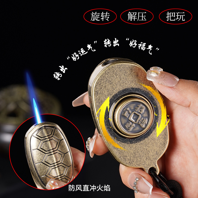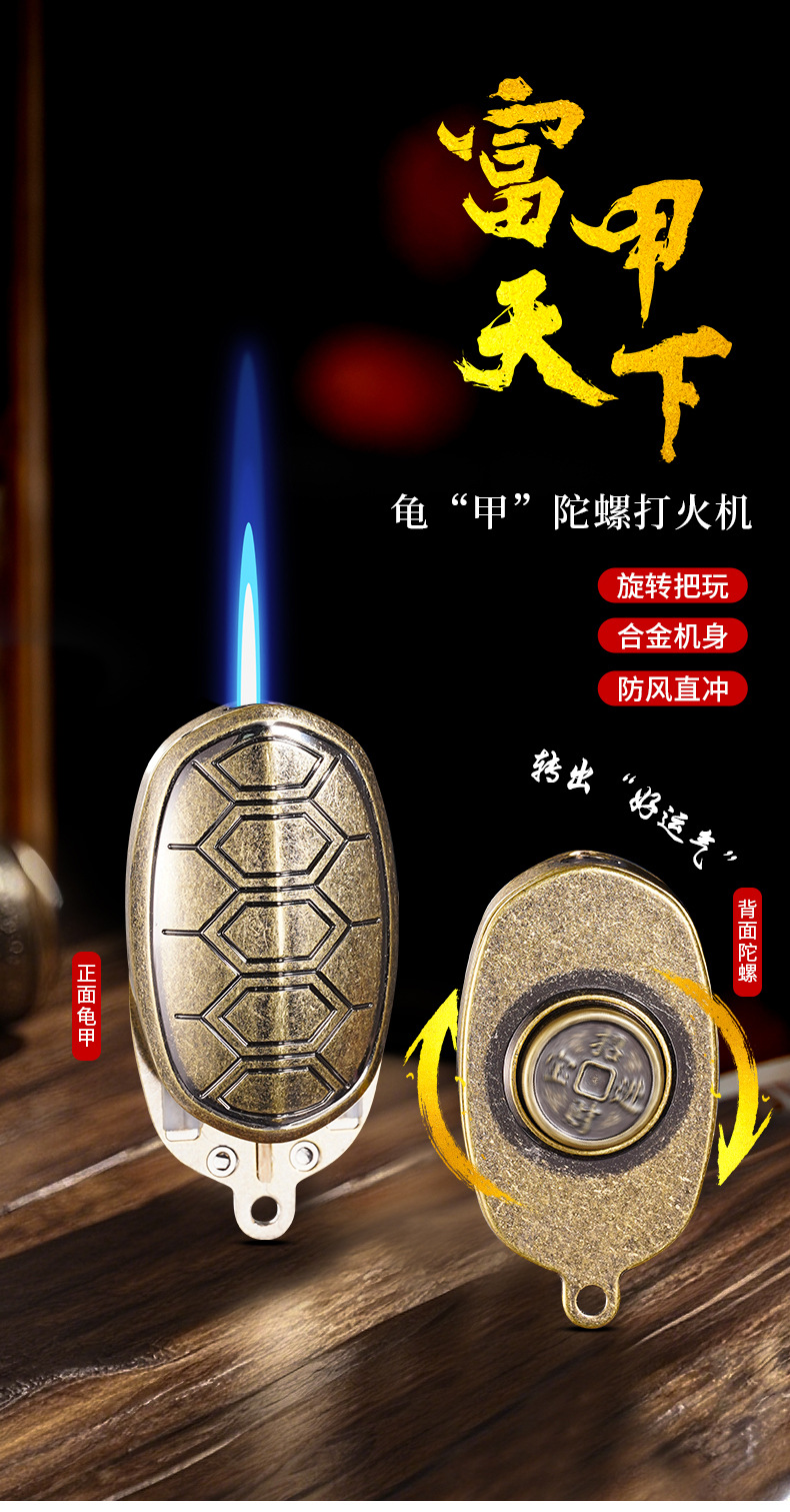 创意造型小金龟充气直冲打火机可旋转把玩转盘点烟器桌面摆件可爱