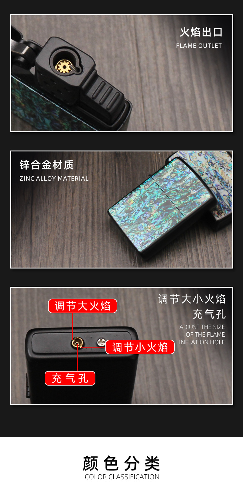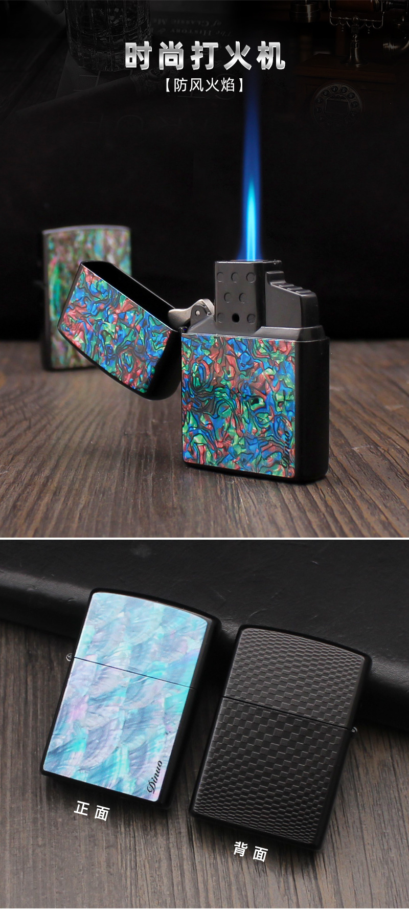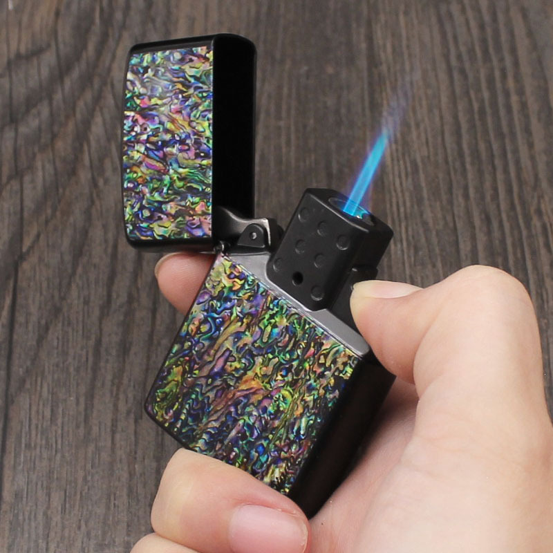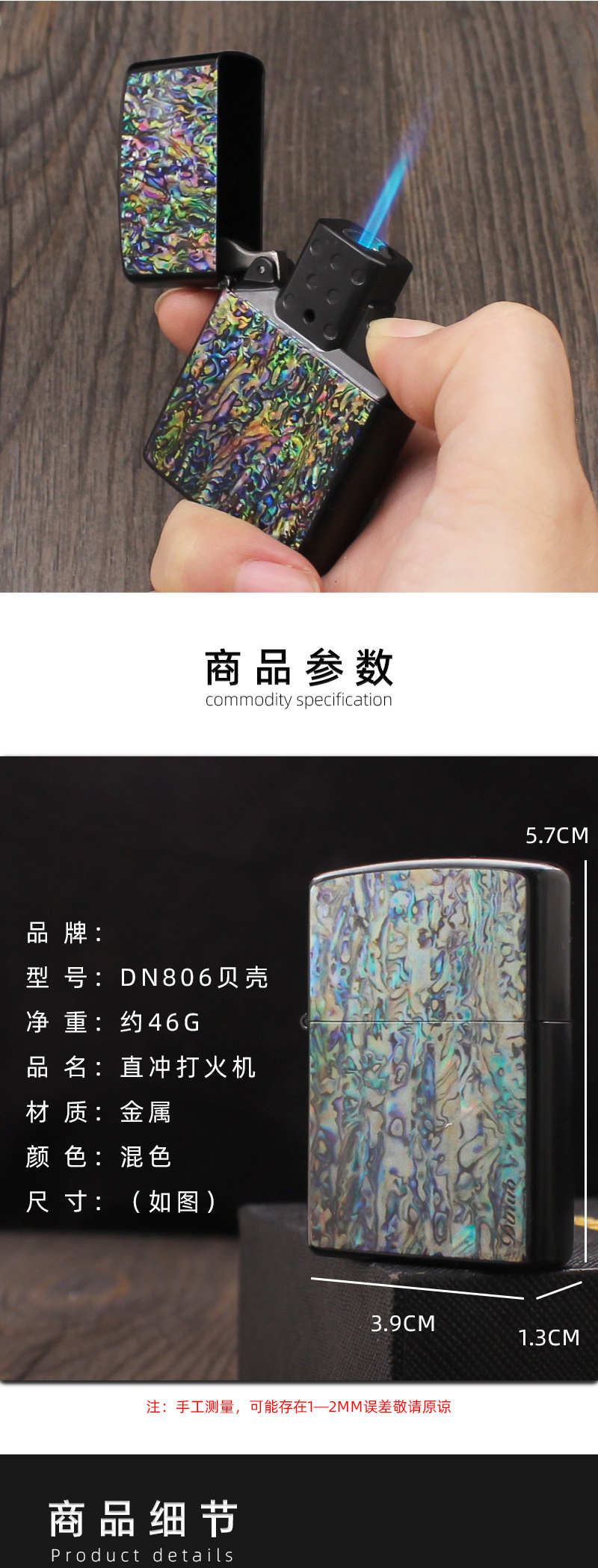 DN806创意贝壳图案防风火焰打火机金属充气直冲点火器便携批发