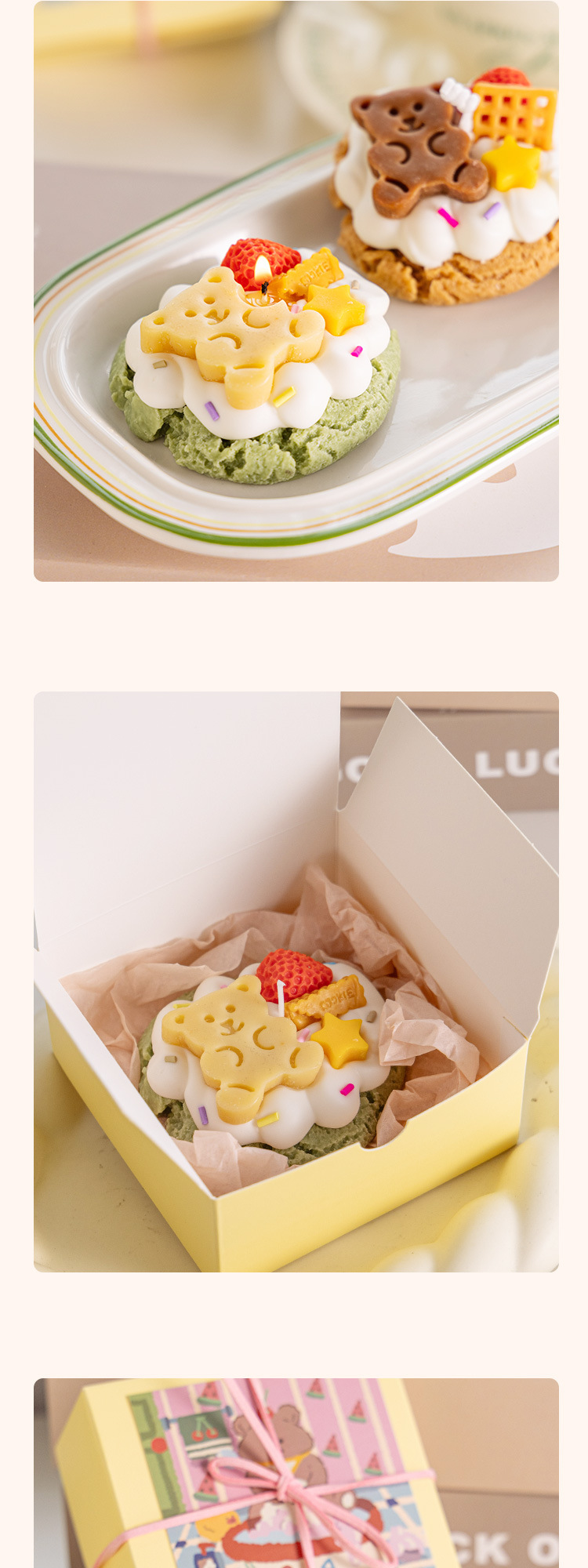 大豆蜡甜品蛋糕香薰蜡烛礼盒摆件小熊曲奇饼干手工造型香薰蜡烛