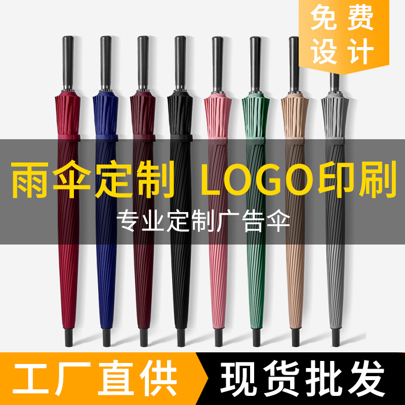 雨伞定制LOGO成人商务高尔夫广告伞纯色直杆伞大号24骨长柄伞批发