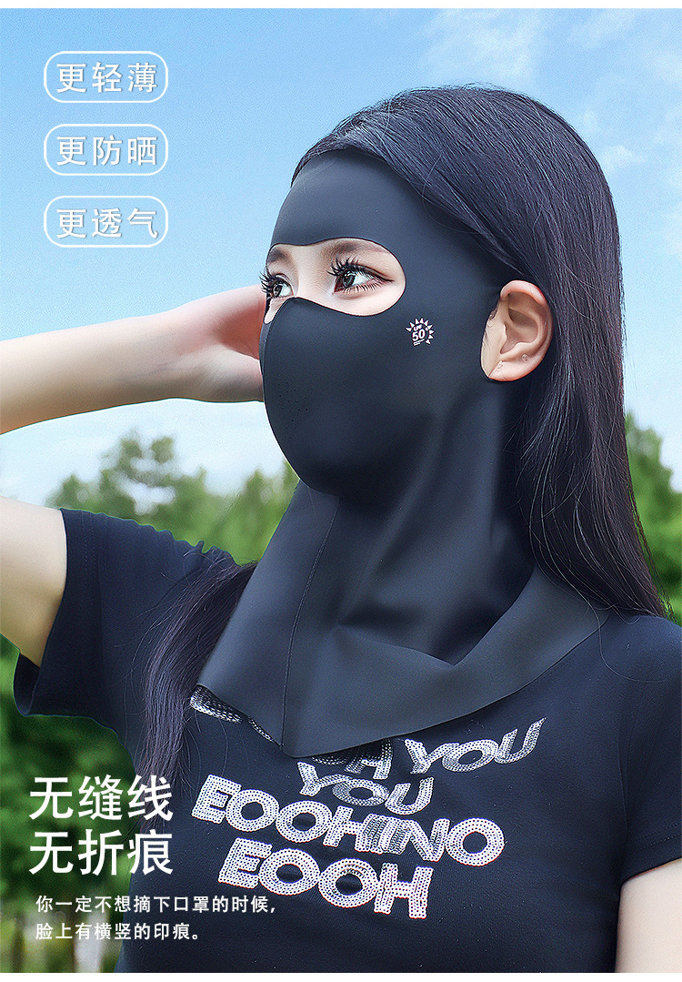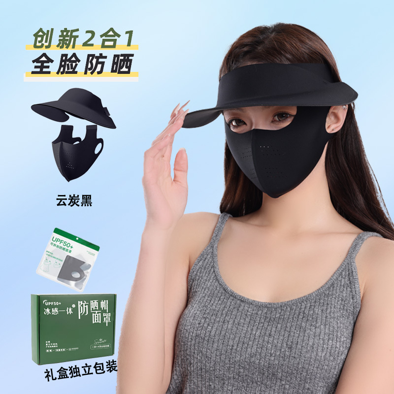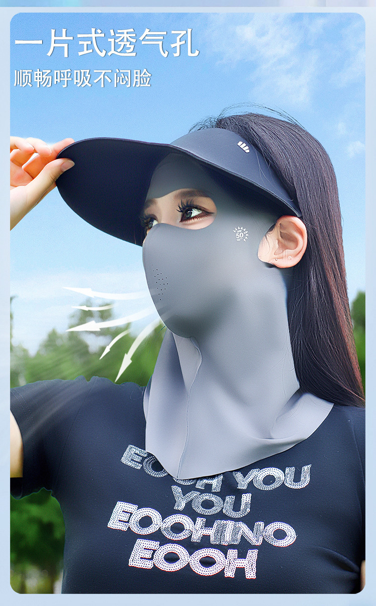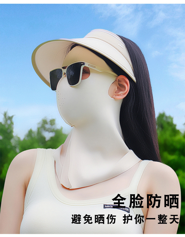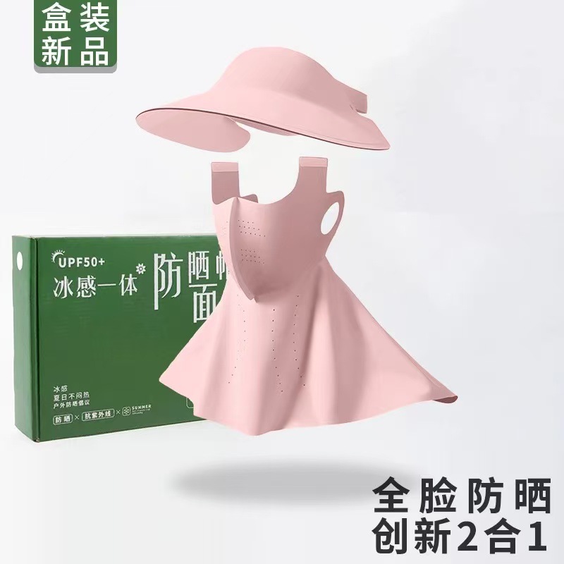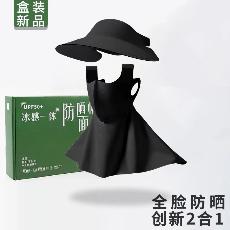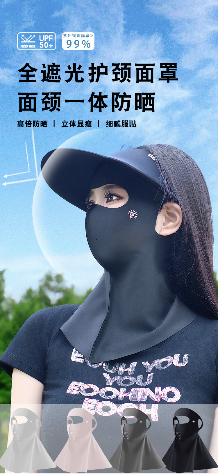 夏季防晒面罩帽子护颈一体遮阳脸基尼带帽檐骑行全脸口罩女高颜值