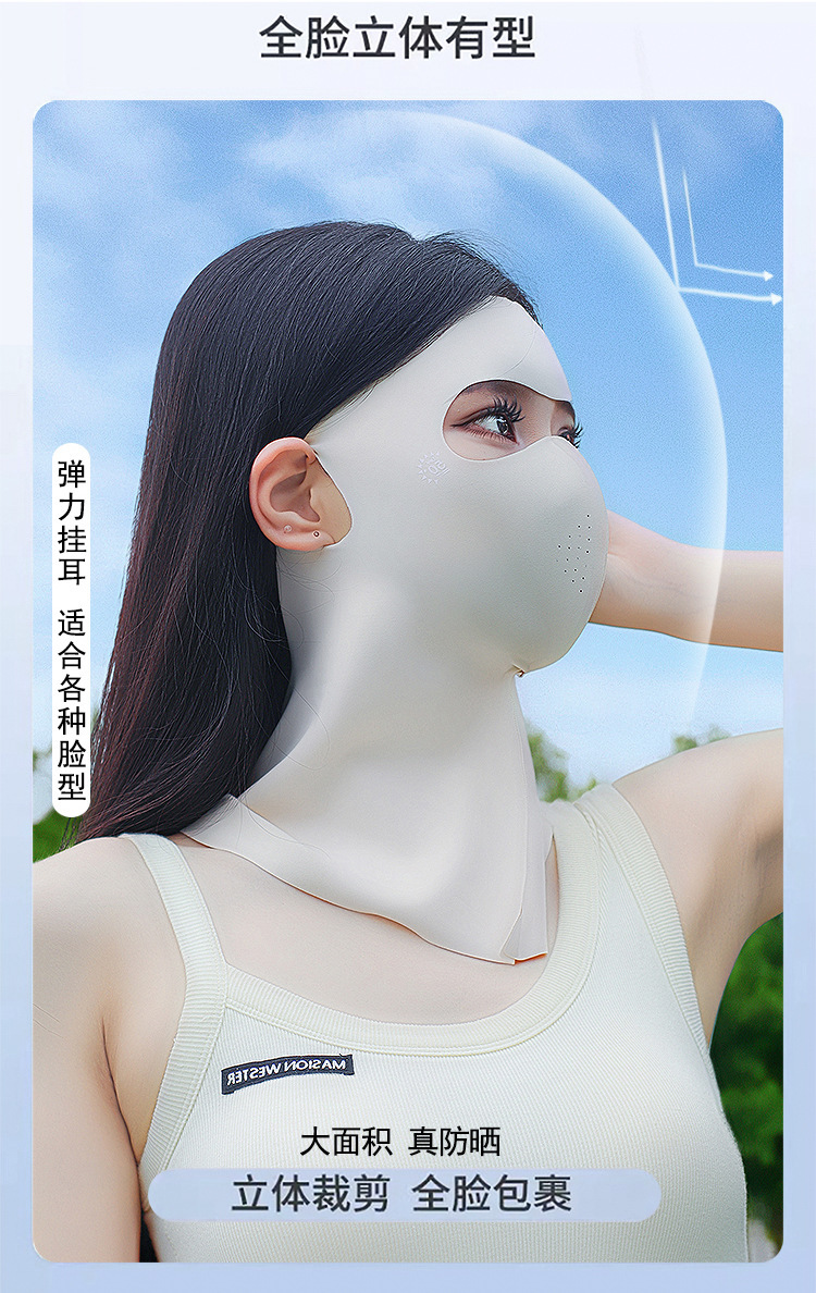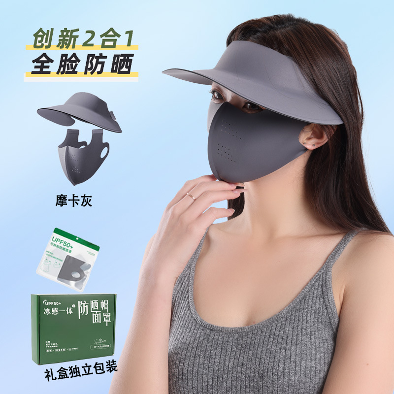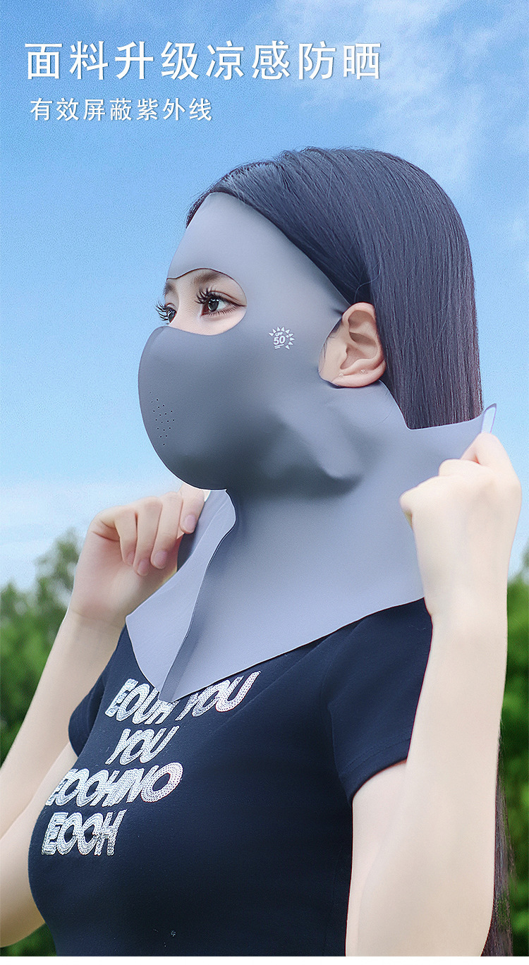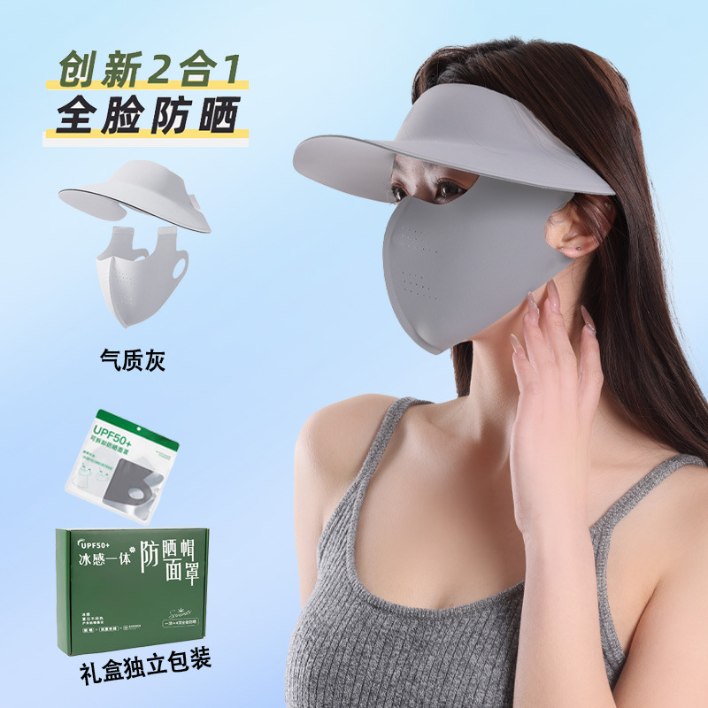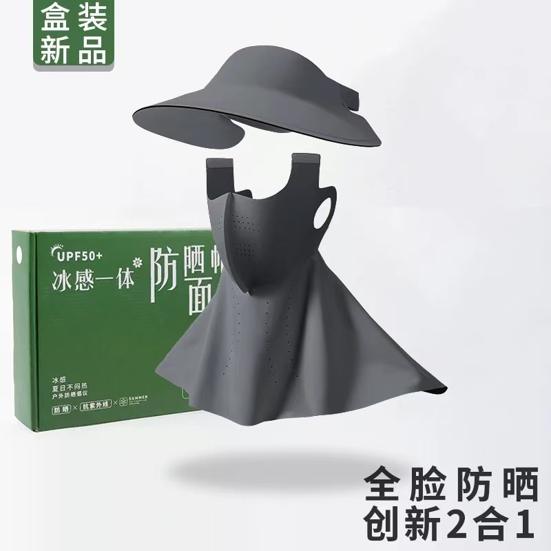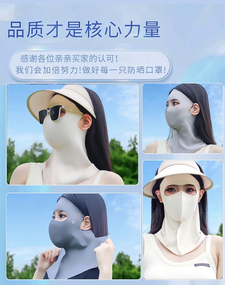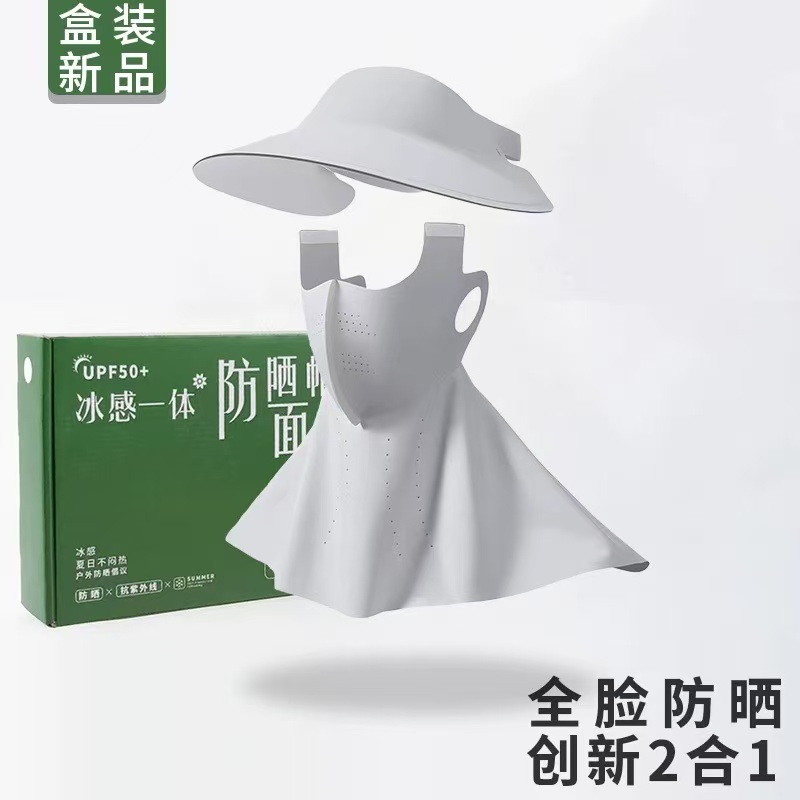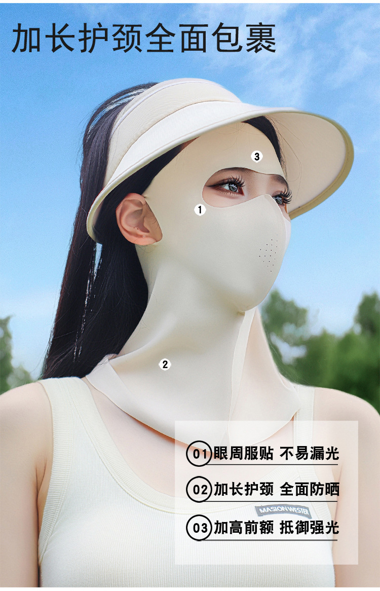夏季防晒面罩帽子护颈一体遮阳脸基尼带帽檐骑行全脸口罩女高颜值