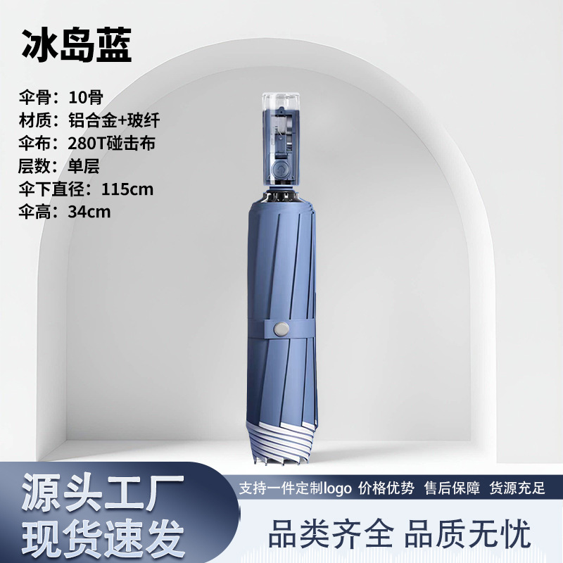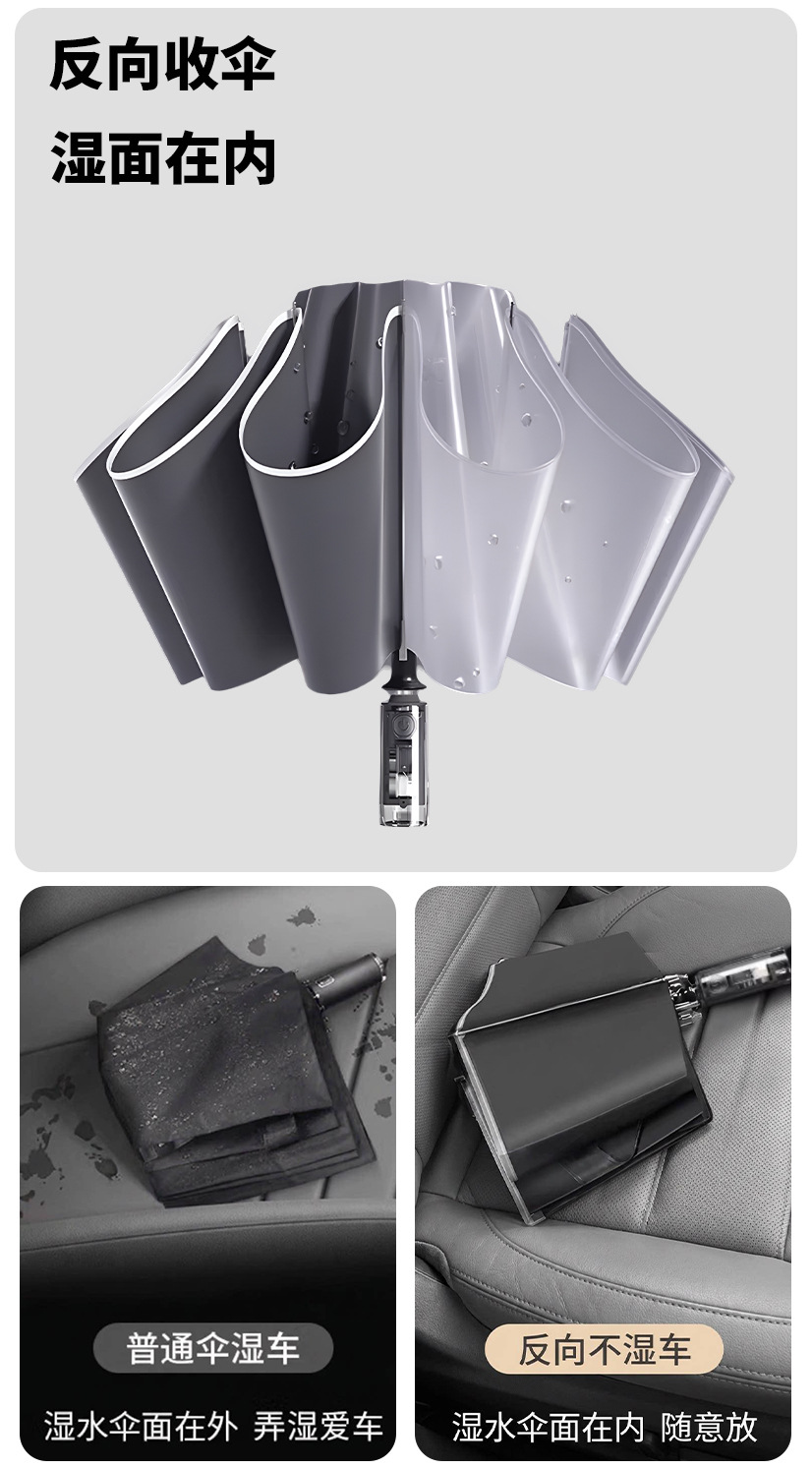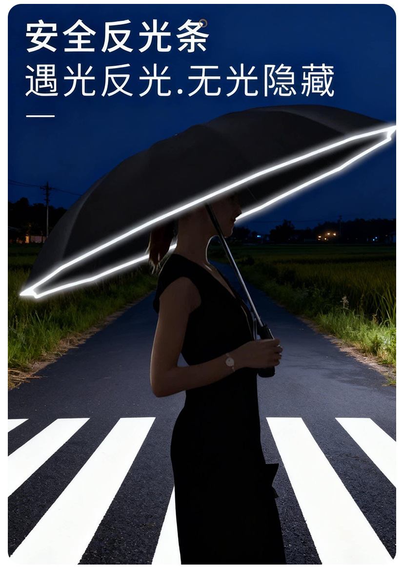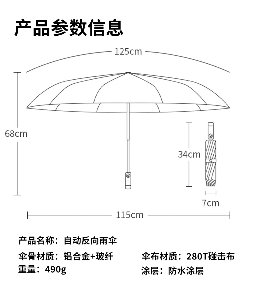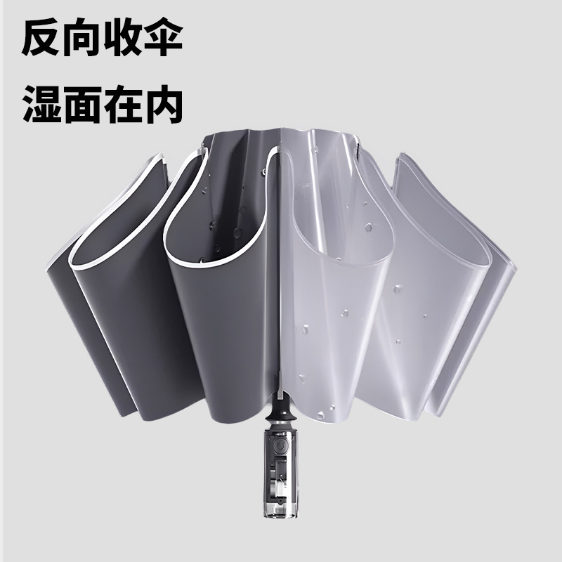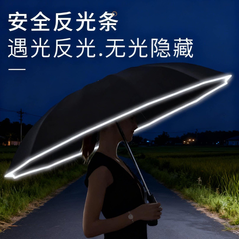超大反向自动雨伞定制抗风暴折叠加厚加大反光条三折10骨雨伞批发
