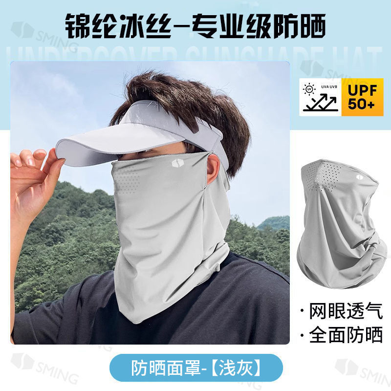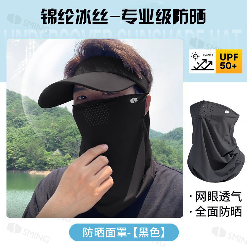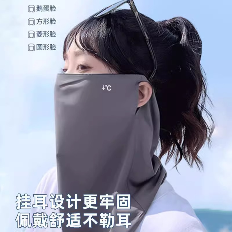 UPF50+夏季冰丝挂耳式护脖防晒面罩防紫外线护眼透气遮脸防晒口罩