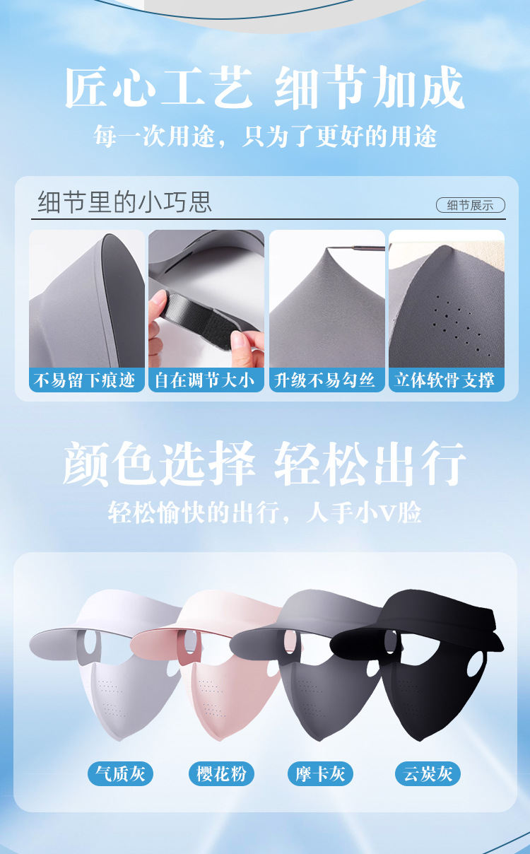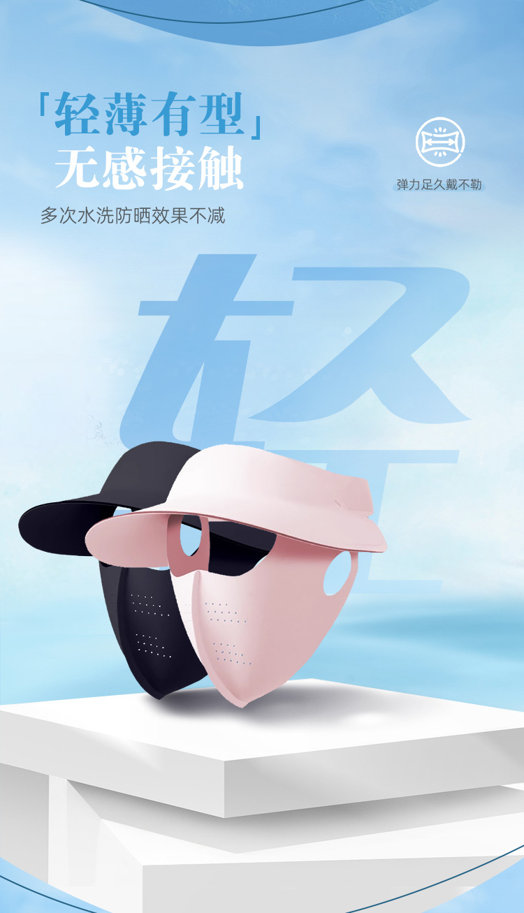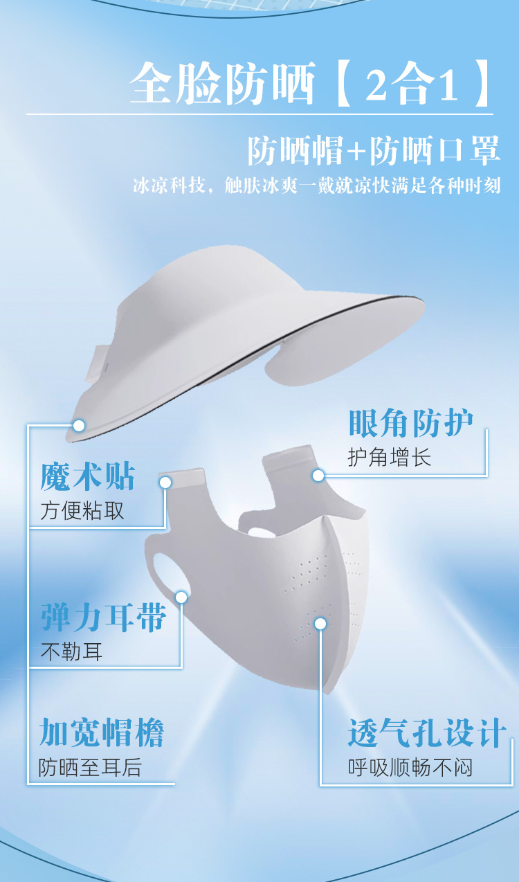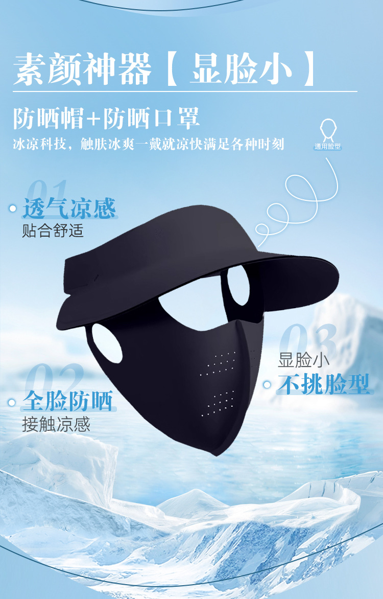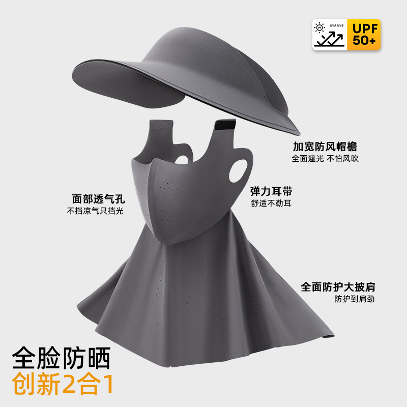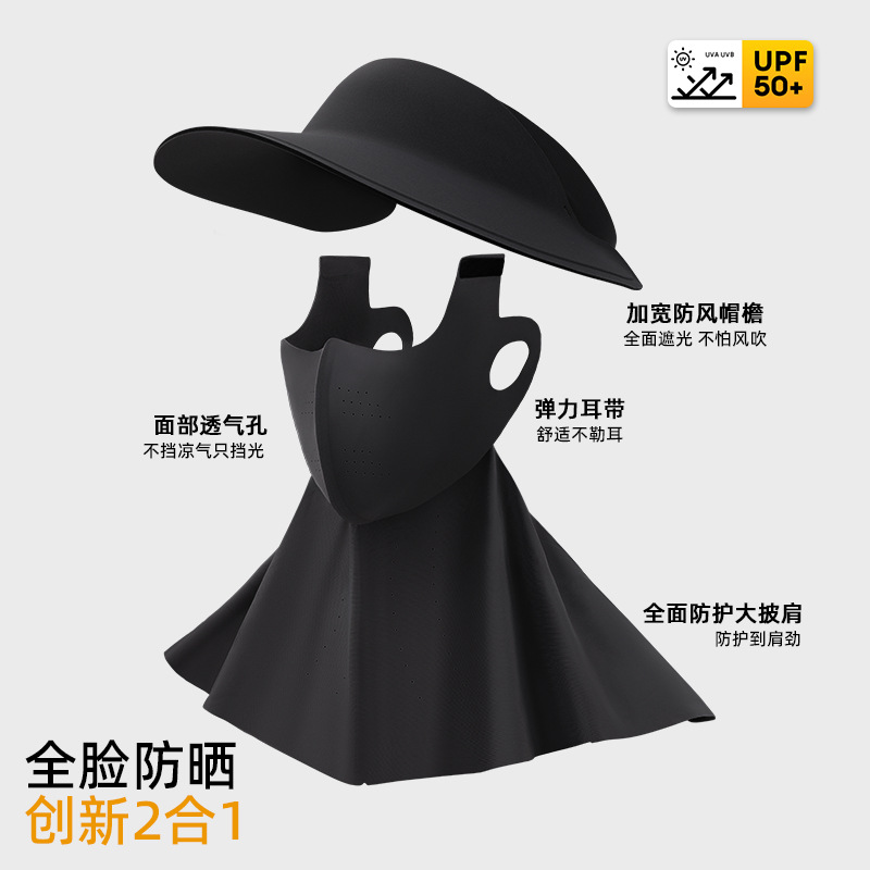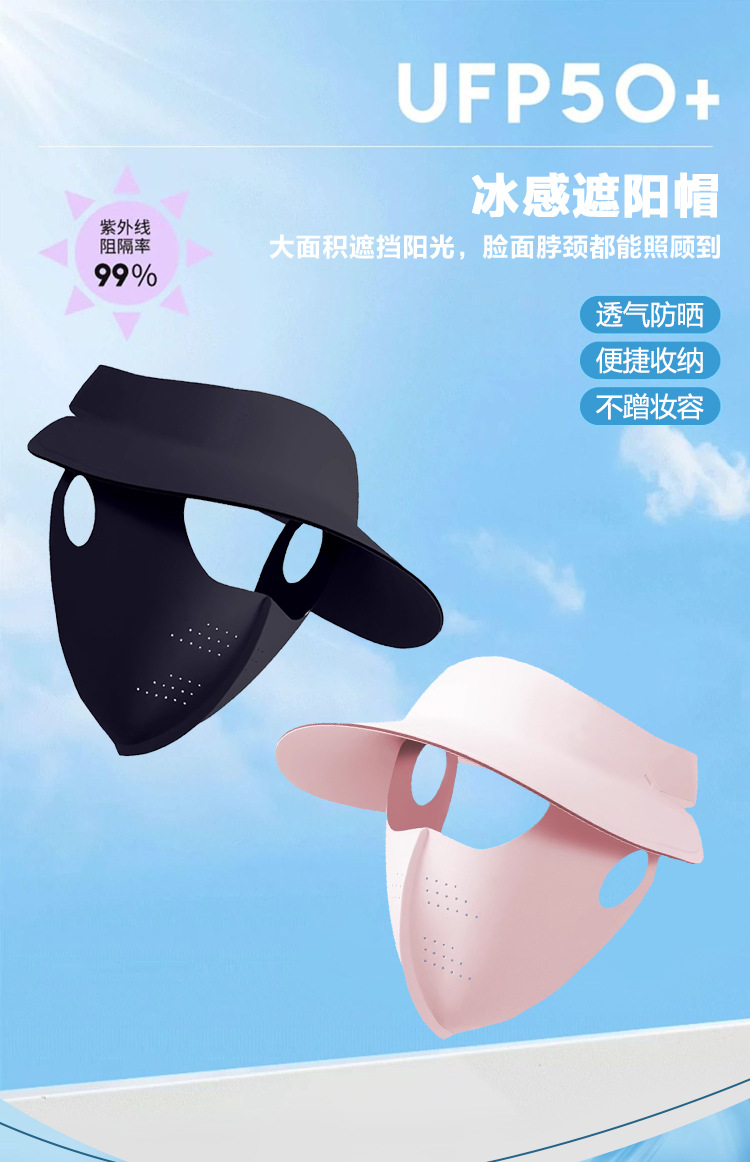夏季防晒面罩男女防紫外线冰丝脸基尼帽子口罩护颈一体透气防晒帽