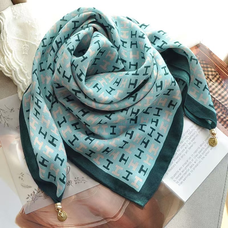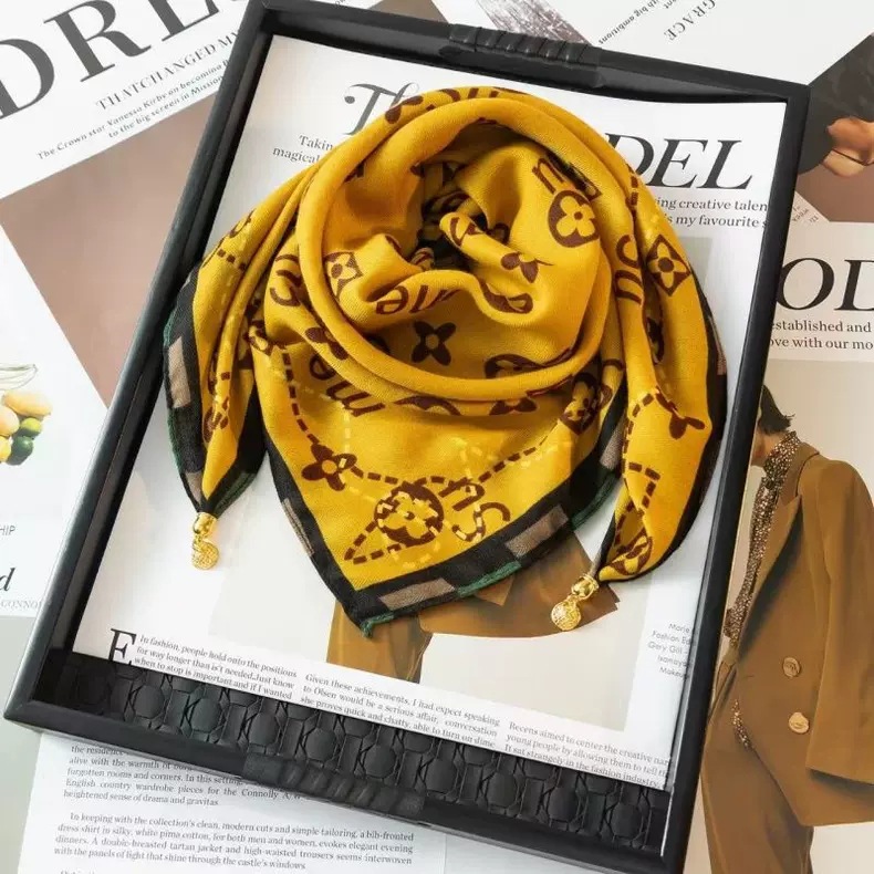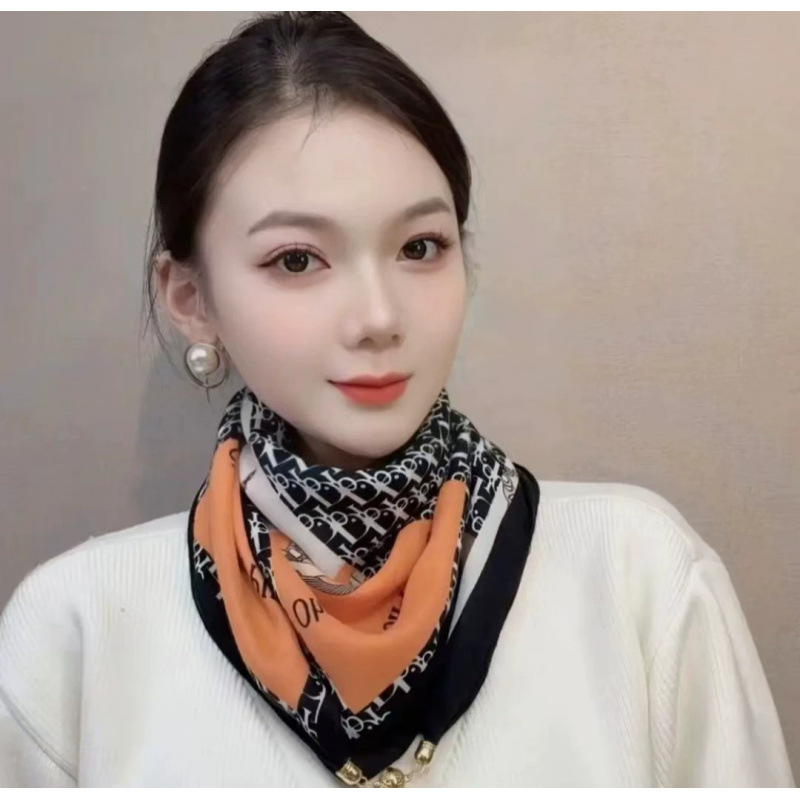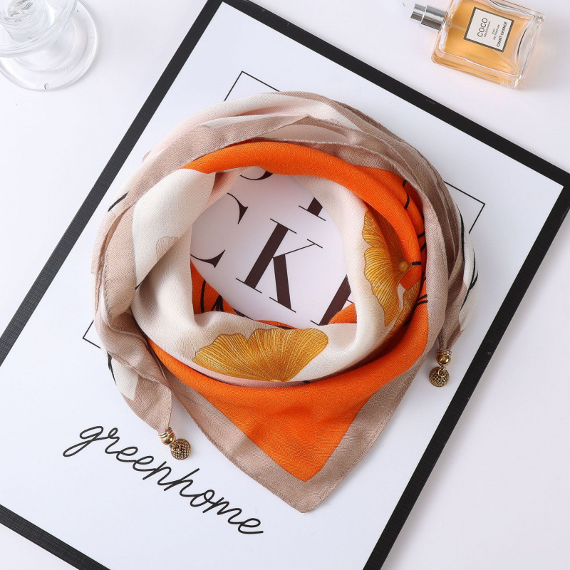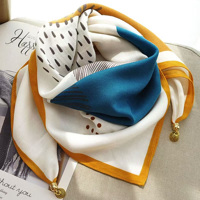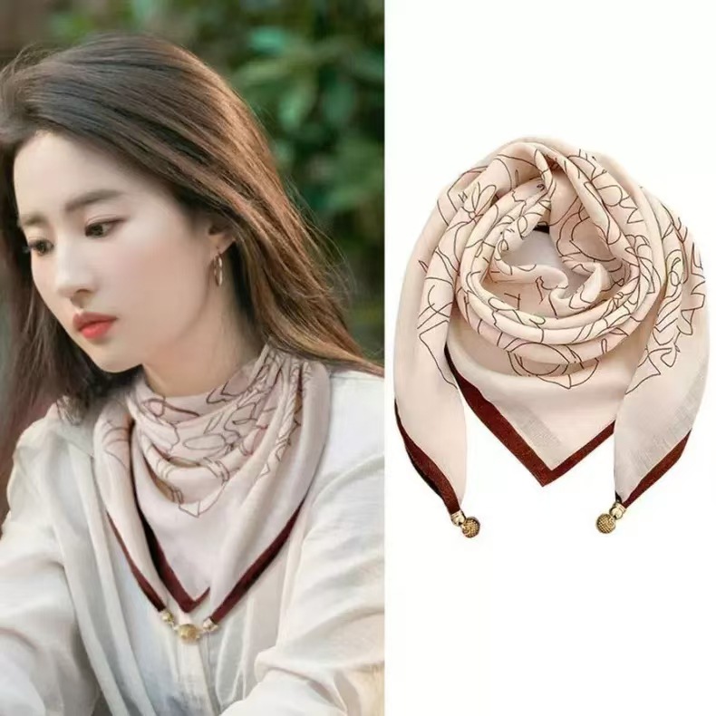 秋冬新款气质百搭护颈保暖围巾洋气领巾丝巾韩版小金球磁扣丝巾普