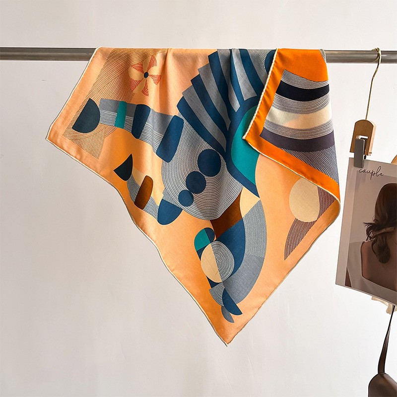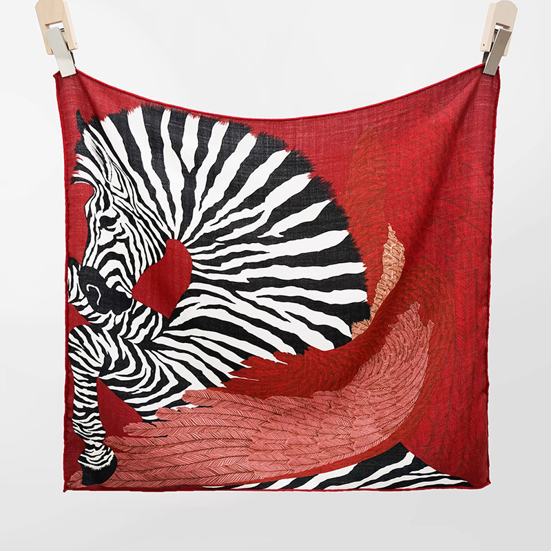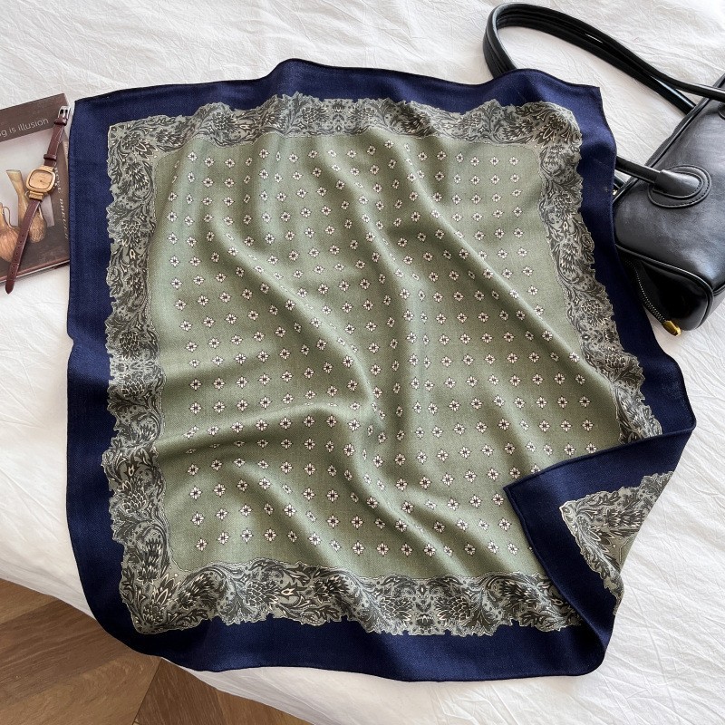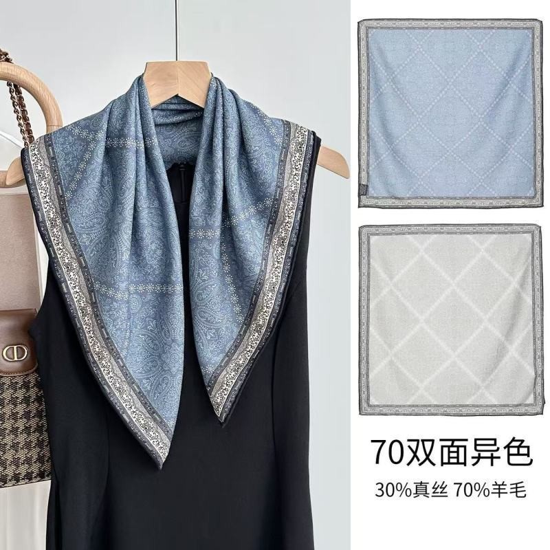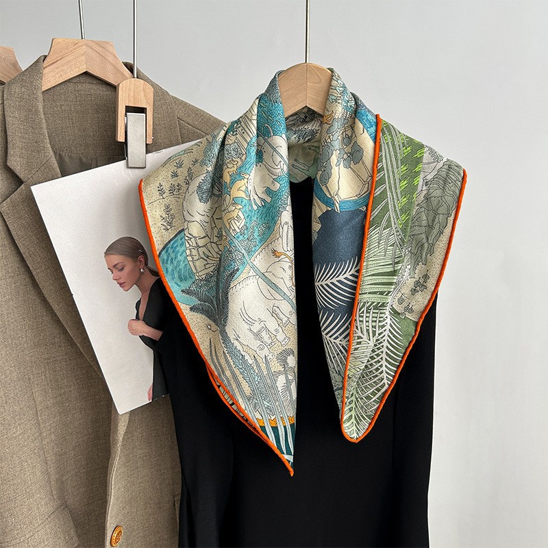 热带丛林双面双色真丝羊毛方巾冬季新款保暖披肩轻奢围脖围巾女