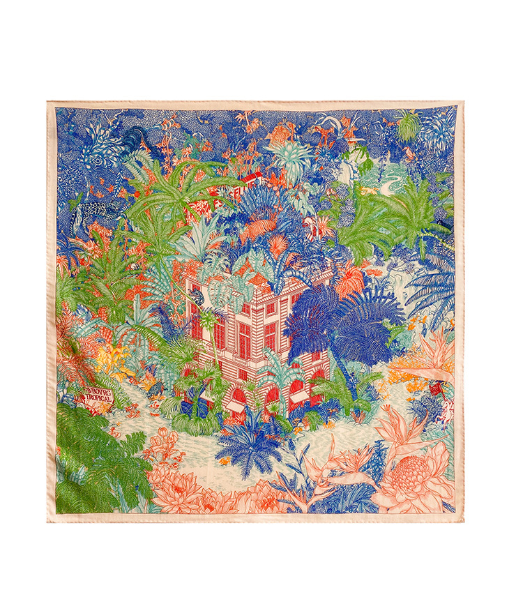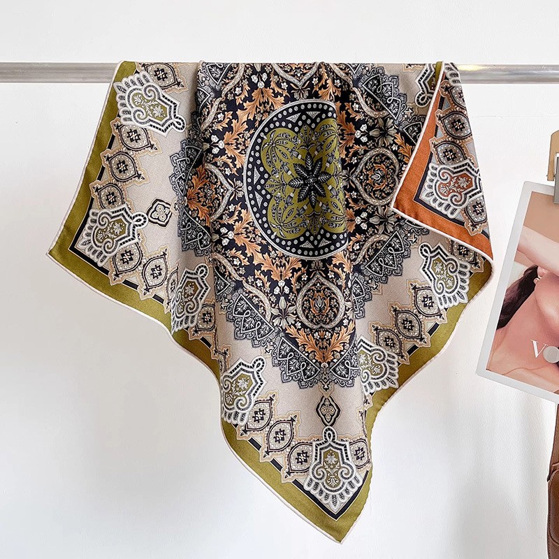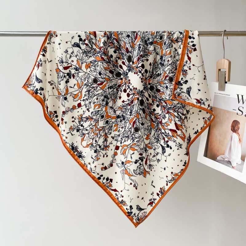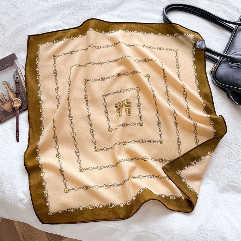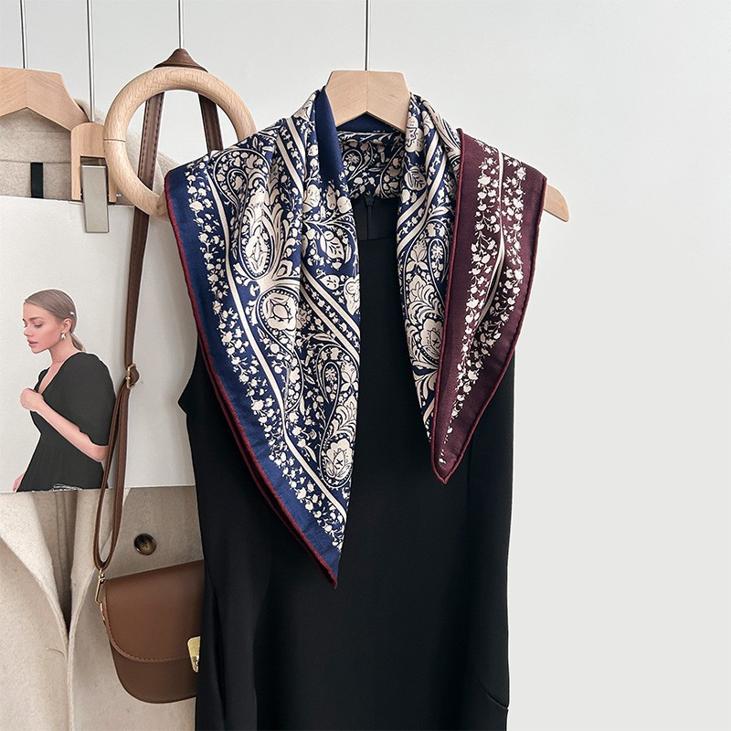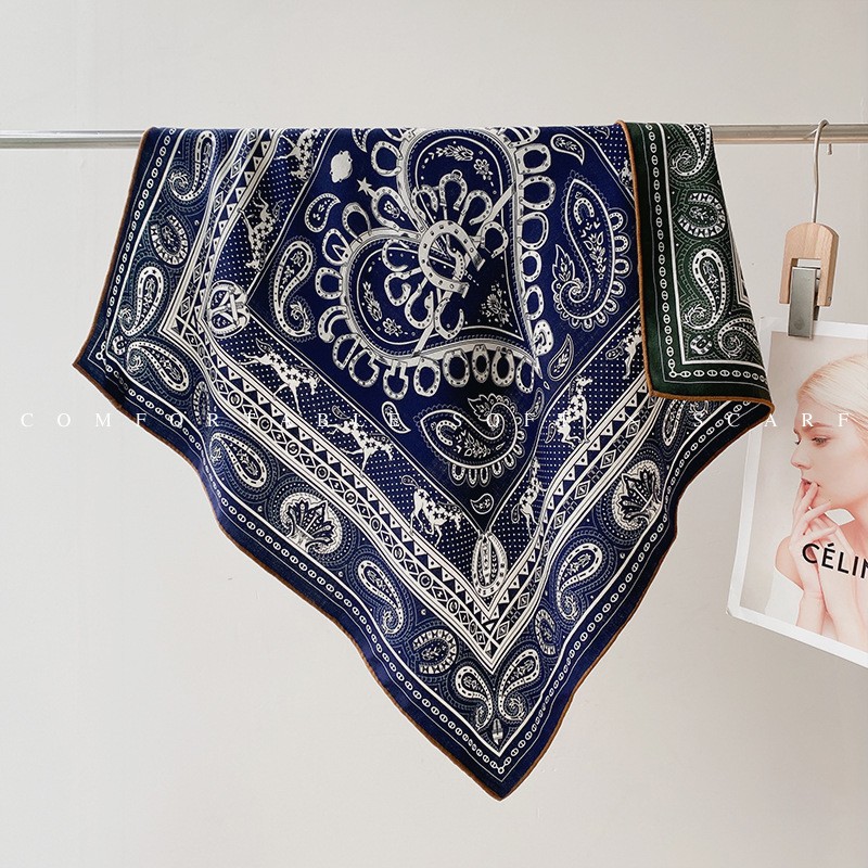 热带丛林双面双色真丝羊毛方巾冬季新款保暖披肩轻奢围脖围巾女