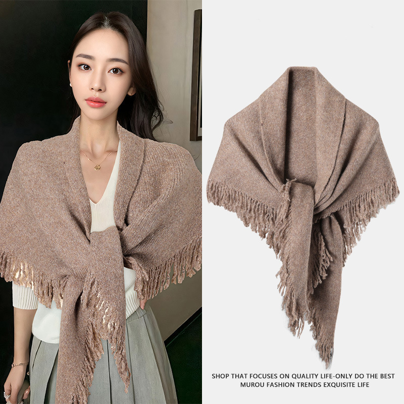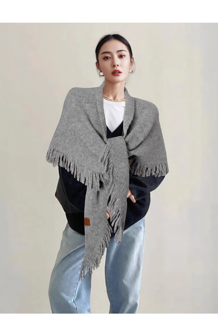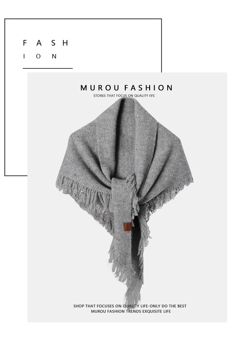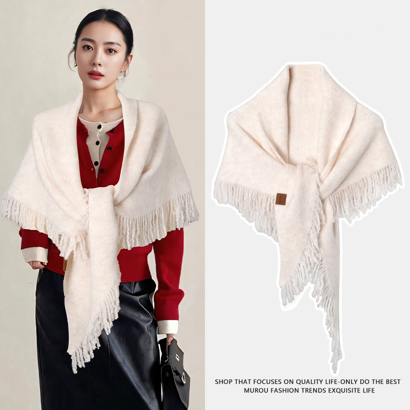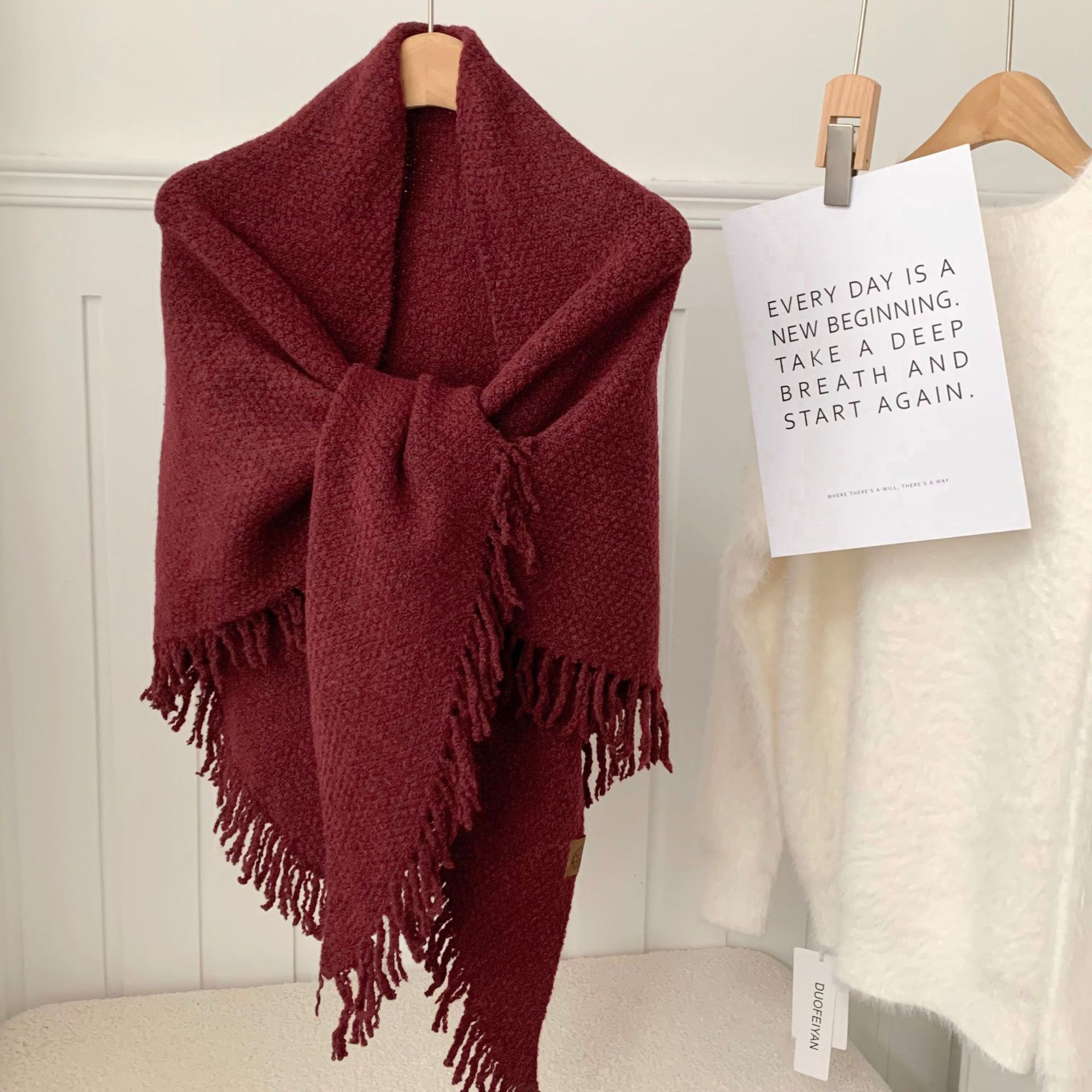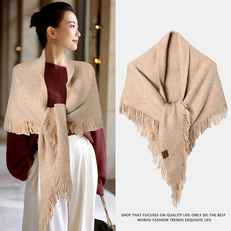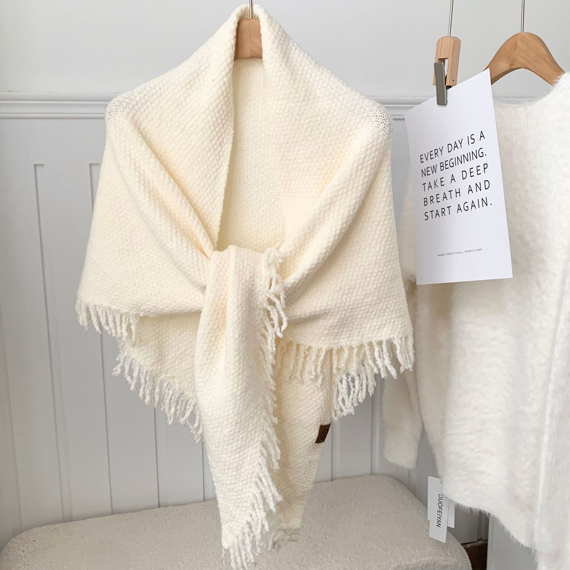 三角巾披肩秋冬加厚保暖高级感大流苏针织羊毛混纺围巾女围脖外搭