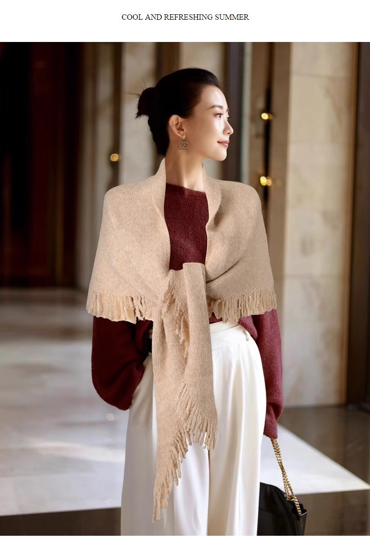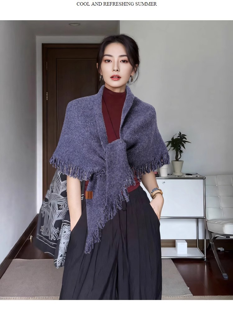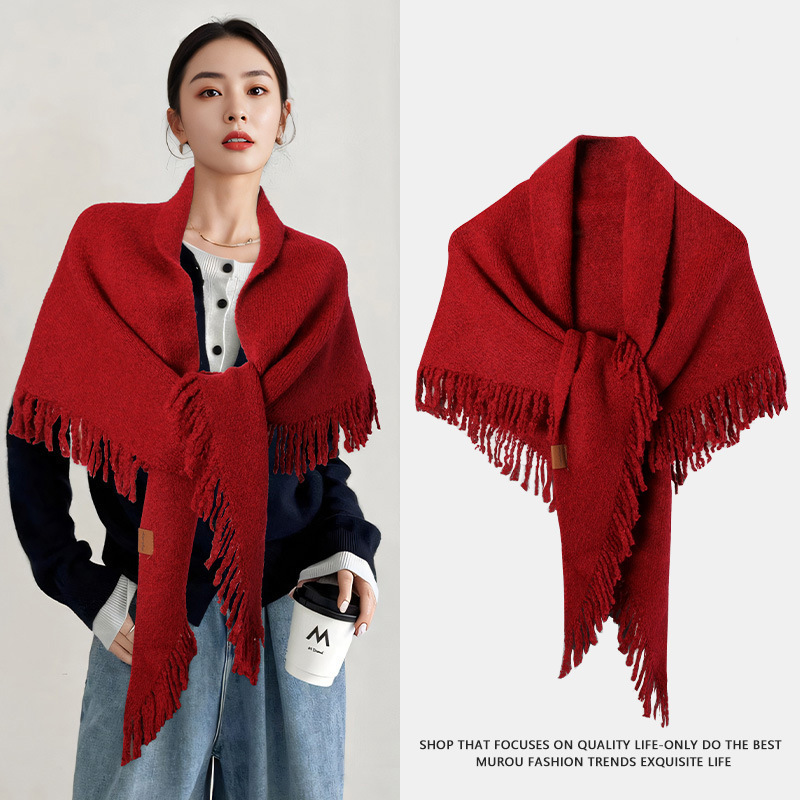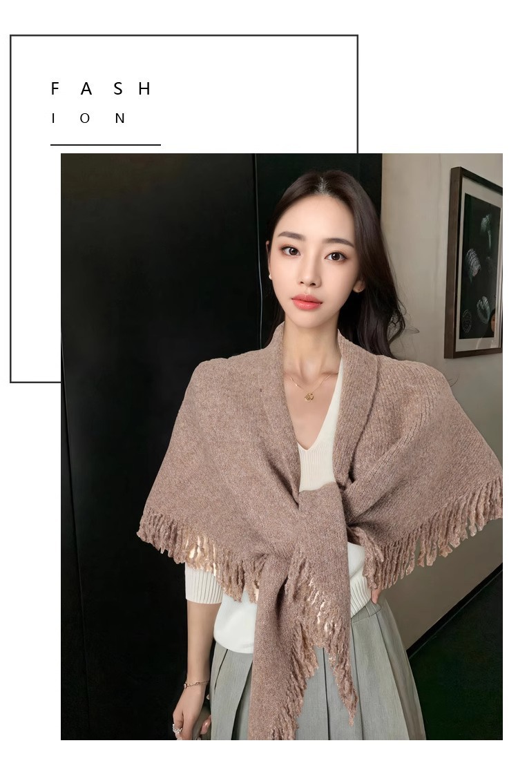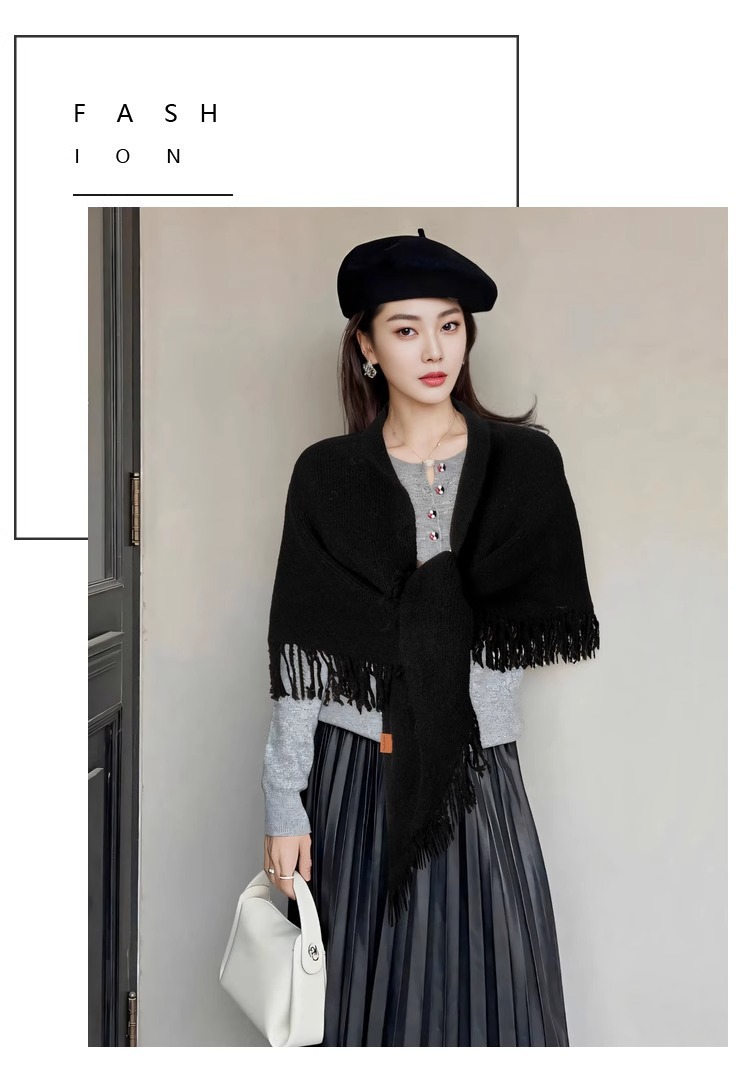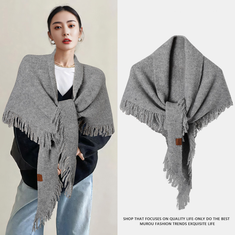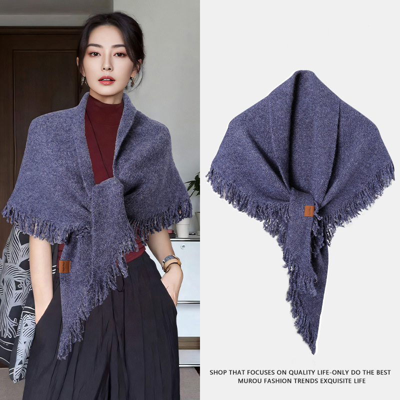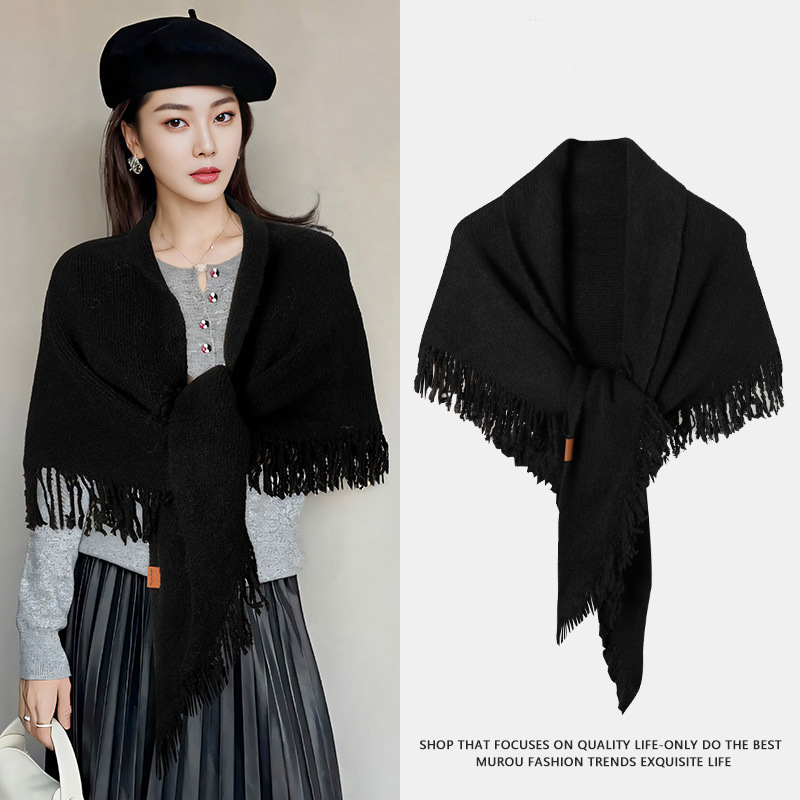 三角巾披肩秋冬加厚保暖高级感大流苏针织羊毛混纺围巾女围脖外搭