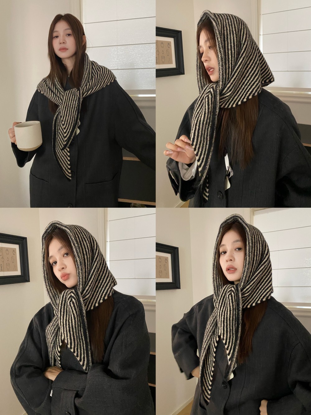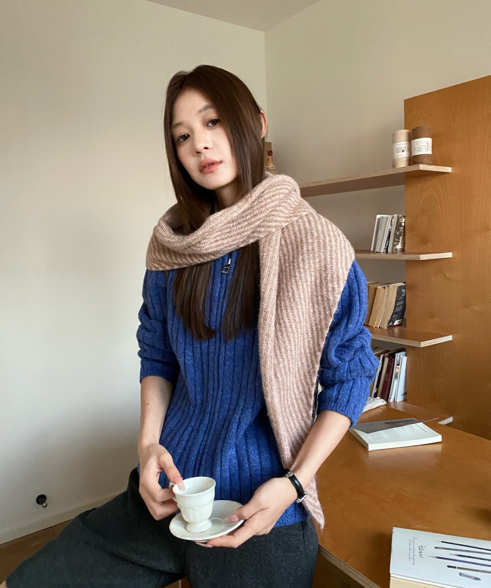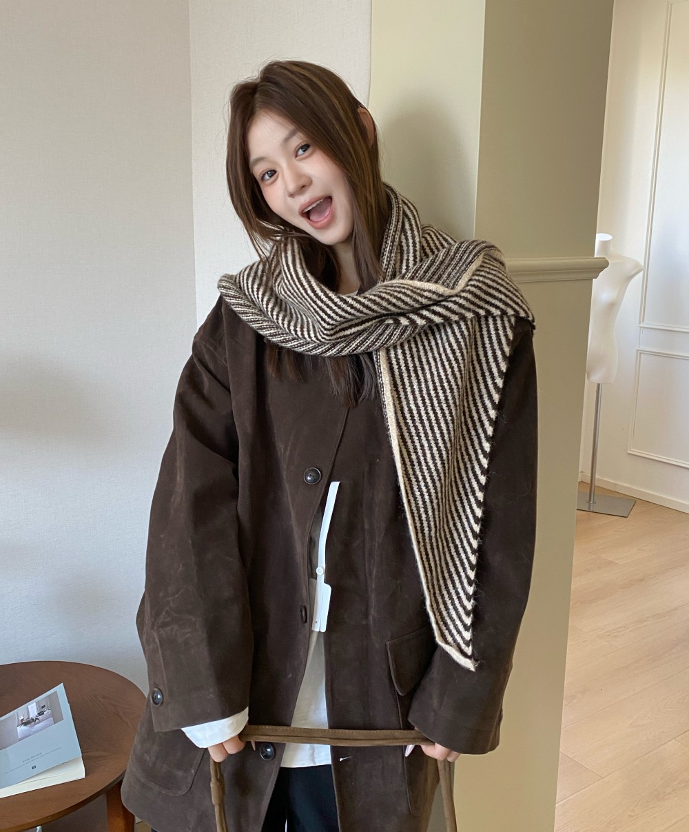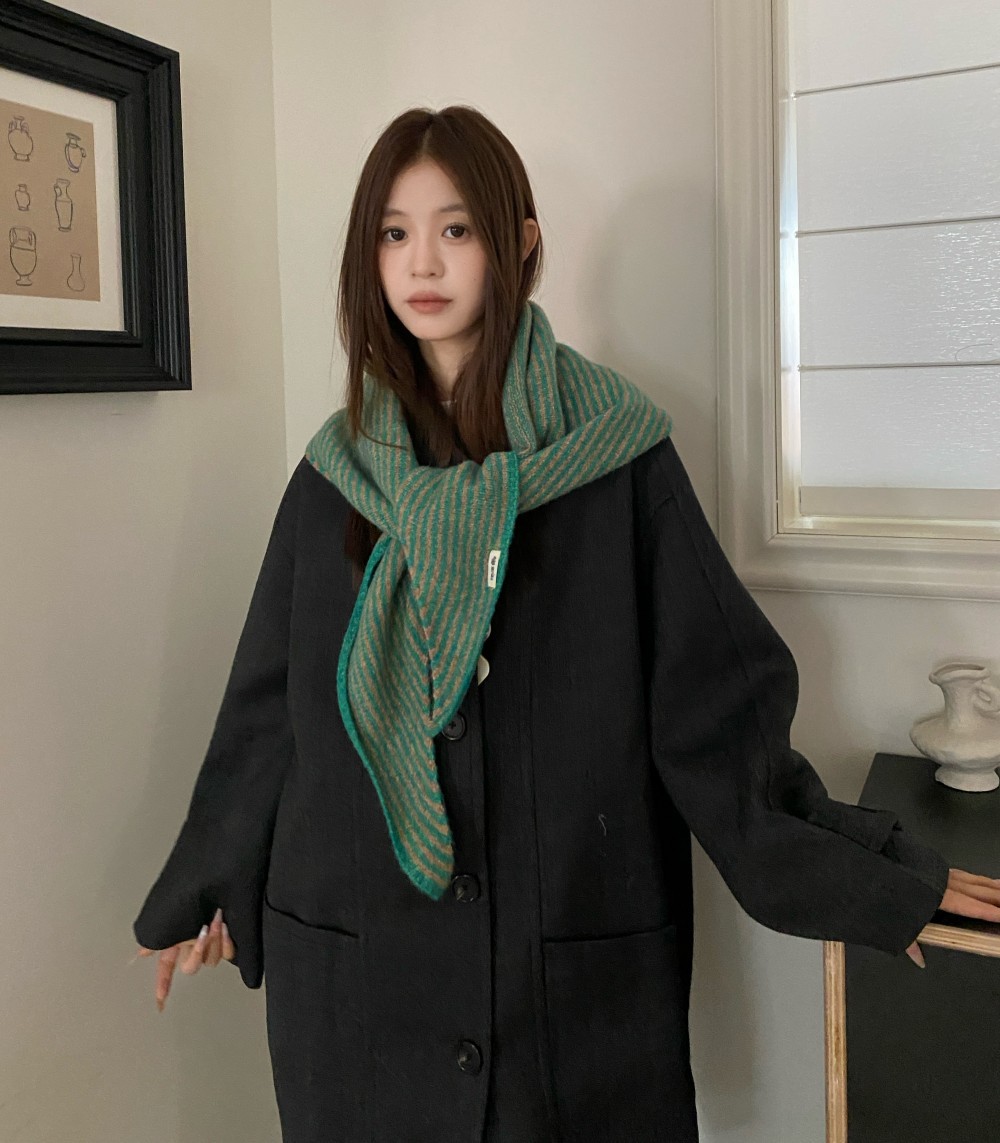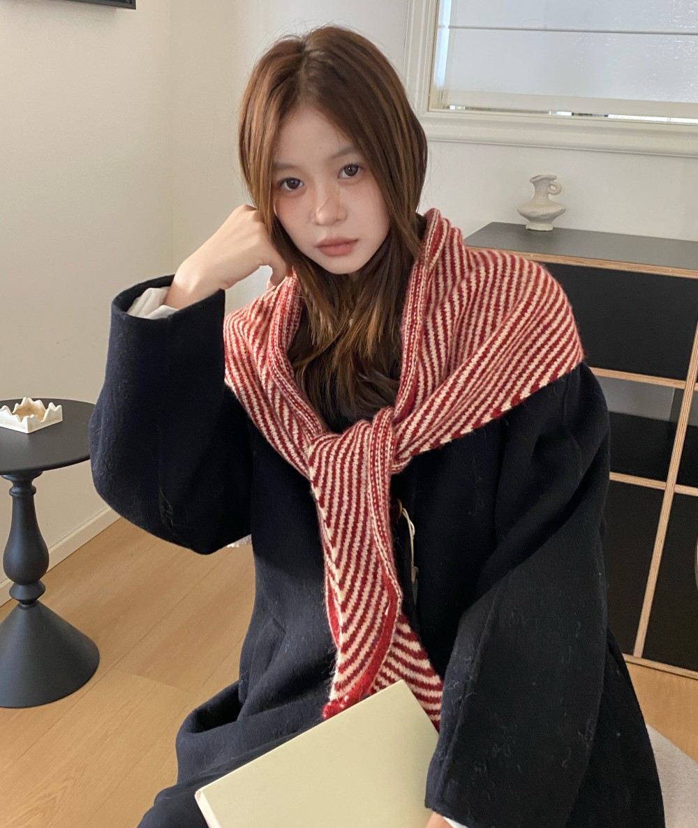 韩代春秋时尚含羊毛凹造型三角巾披肩女秋冬保暖针织条纹坎肩围巾