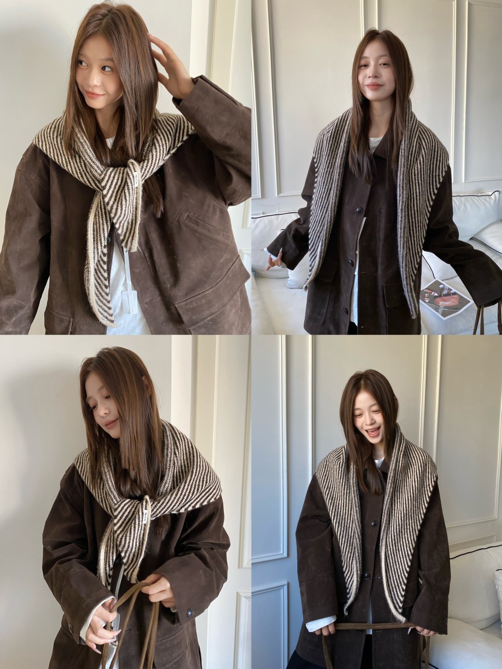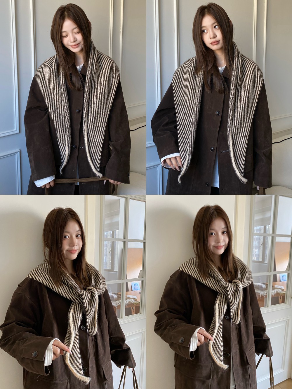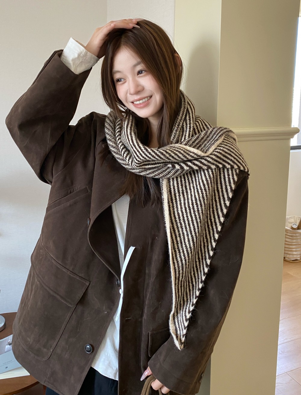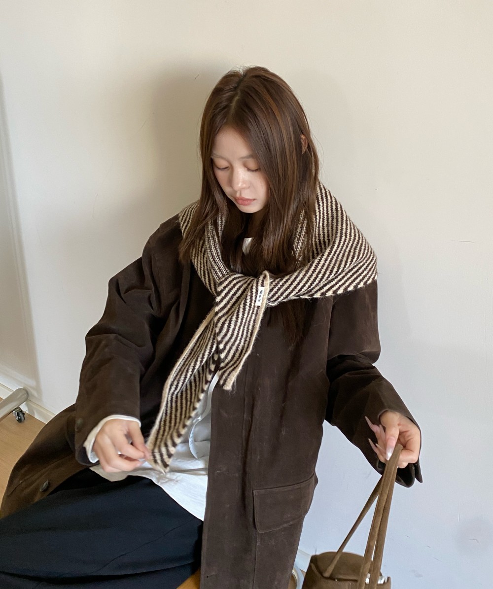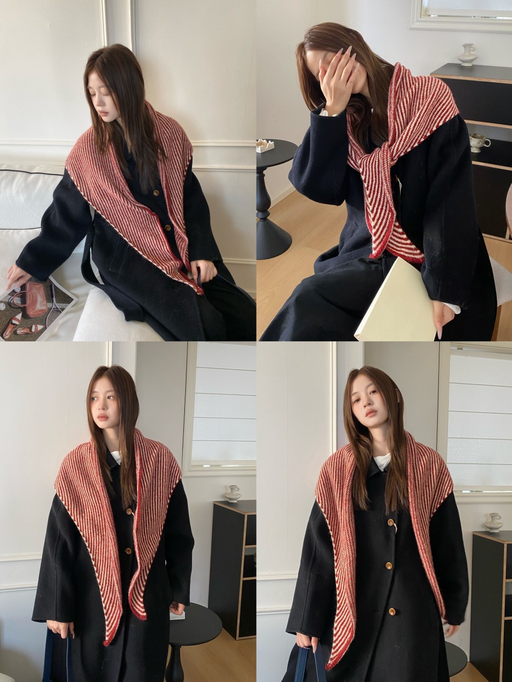 韩代春秋时尚含羊毛凹造型三角巾披肩女秋冬保暖针织条纹坎肩围巾