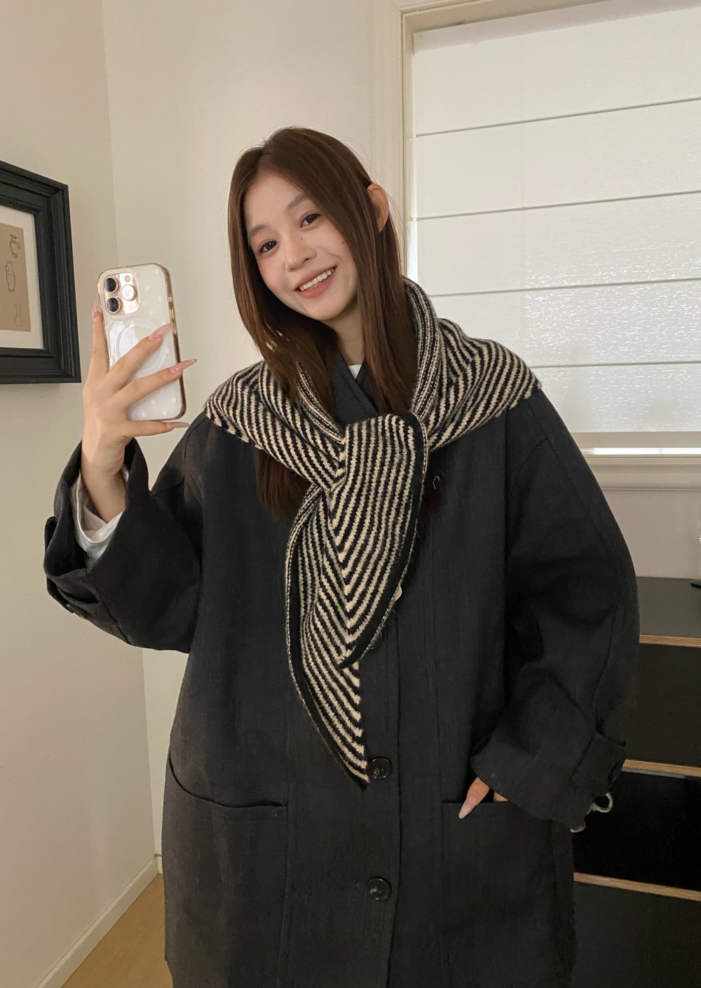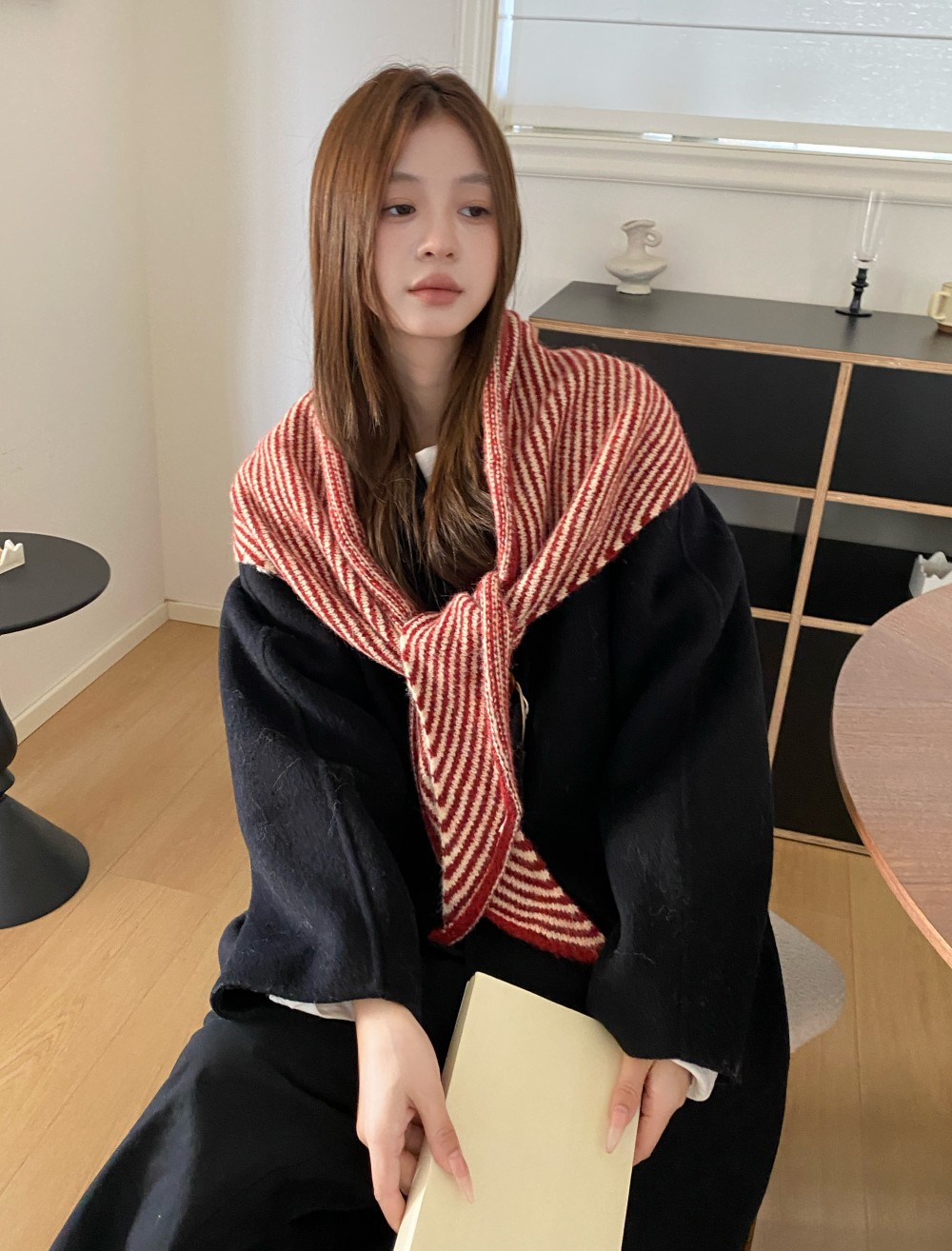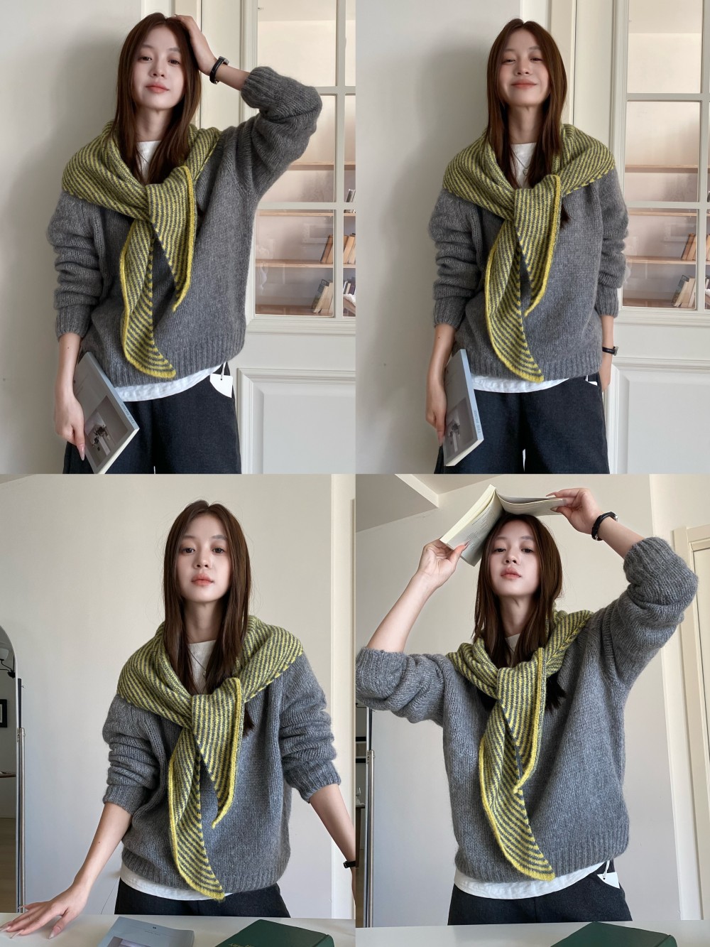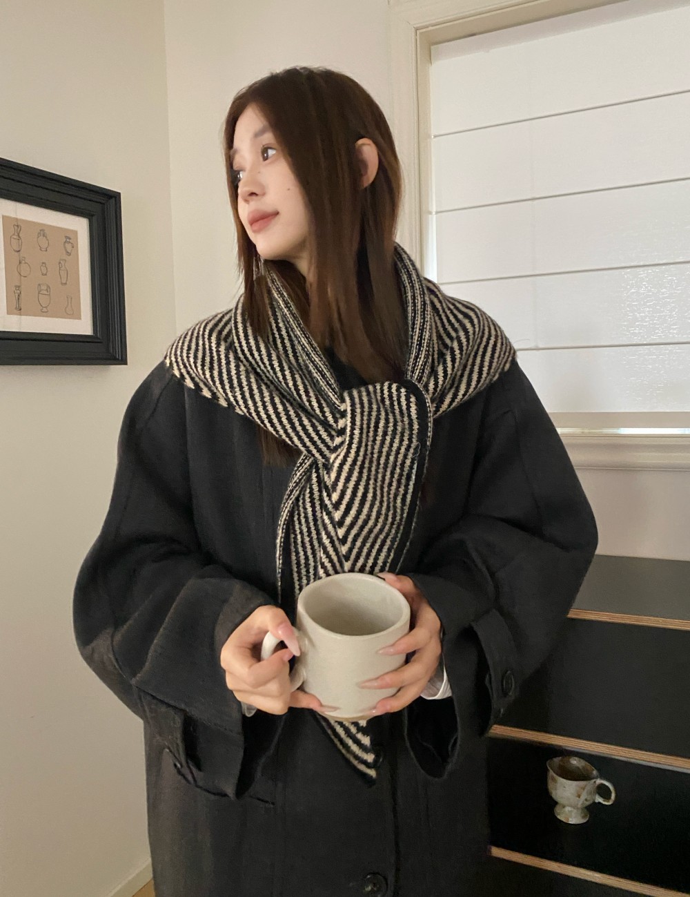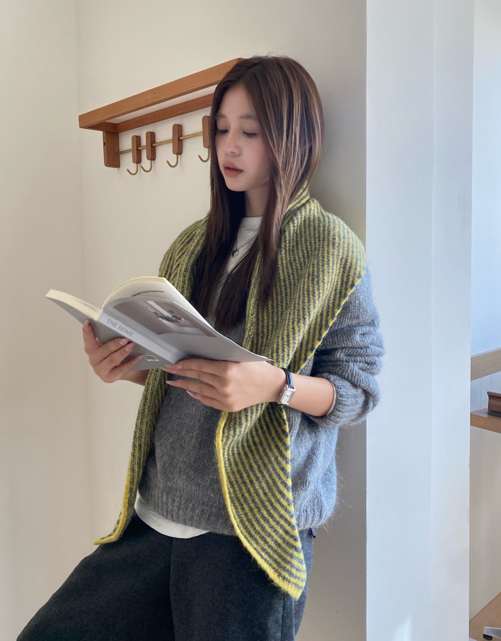 韩代春秋时尚含羊毛凹造型三角巾披肩女秋冬保暖针织条纹坎肩围巾