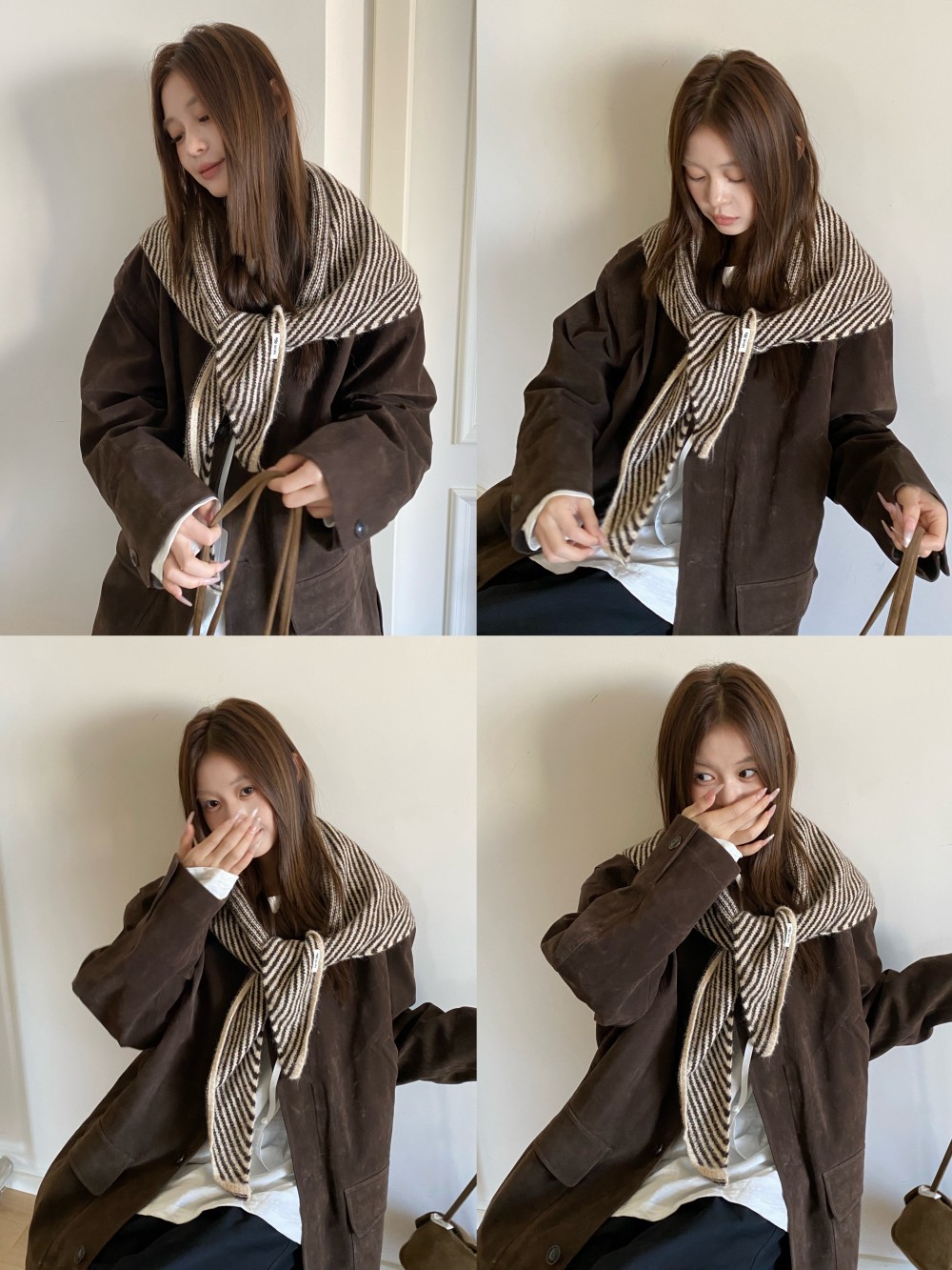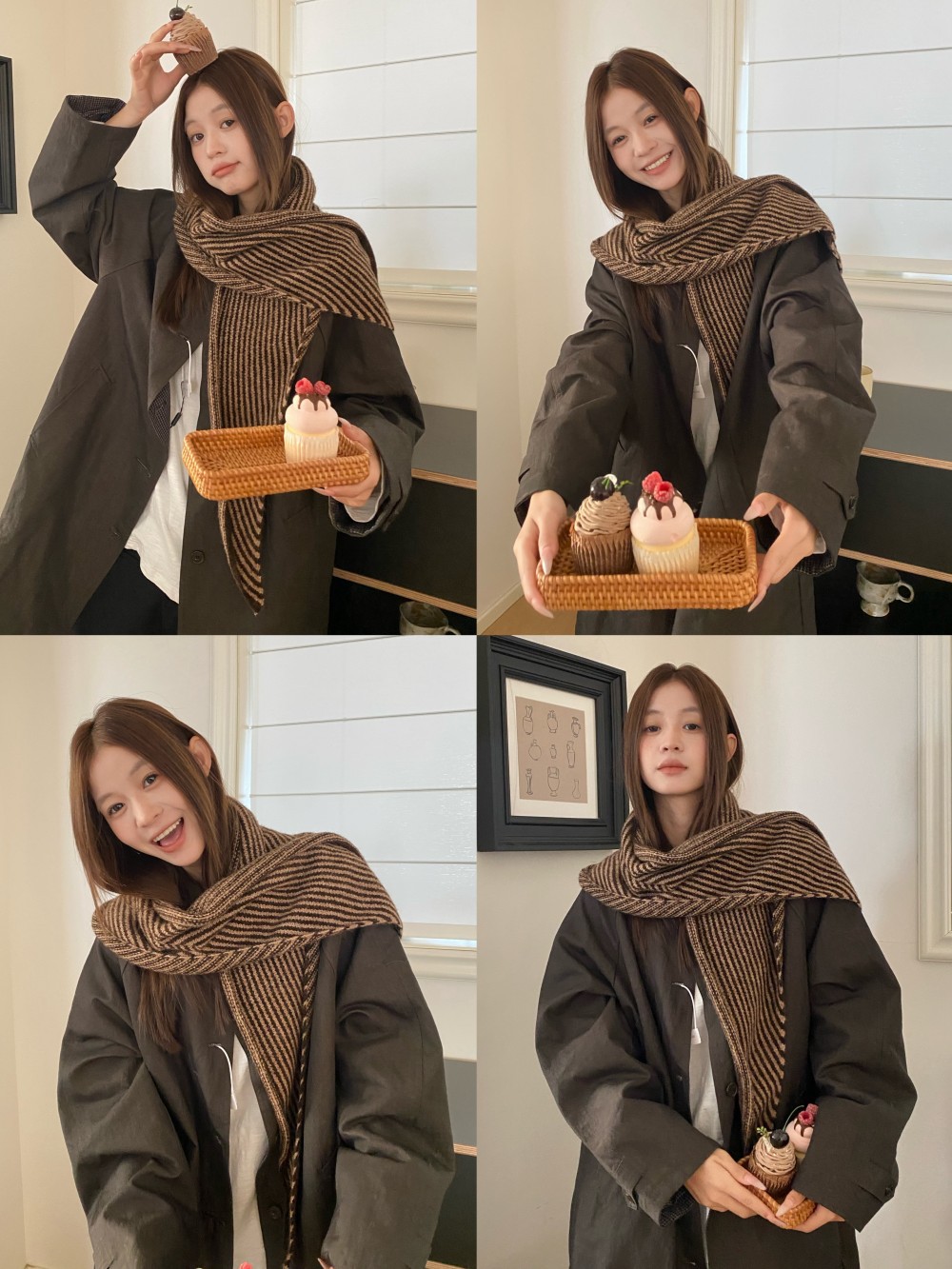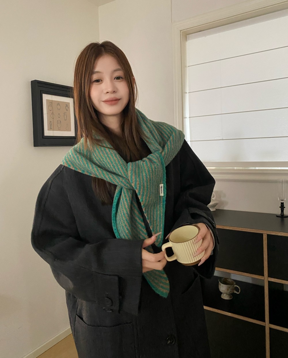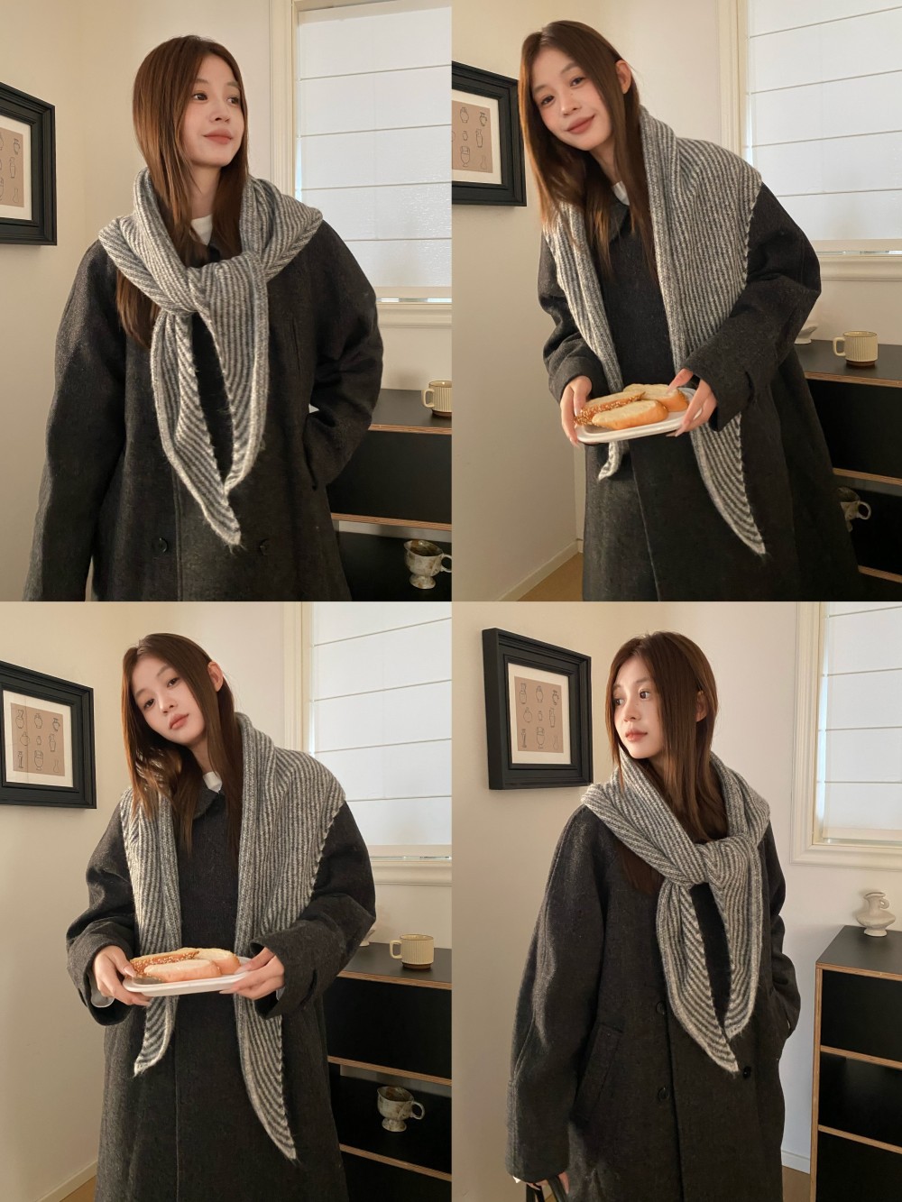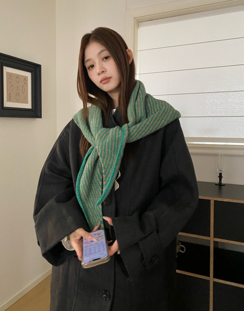 韩代春秋时尚含羊毛凹造型三角巾披肩女秋冬保暖针织条纹坎肩围巾
