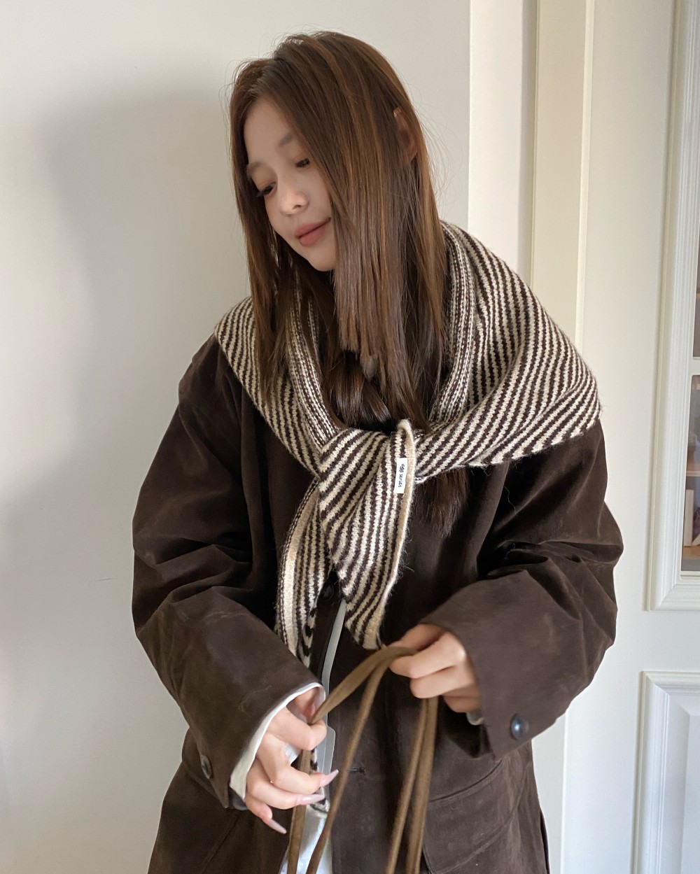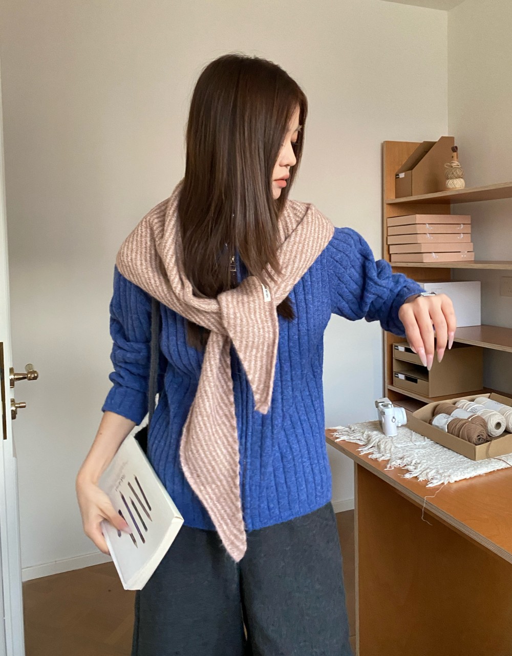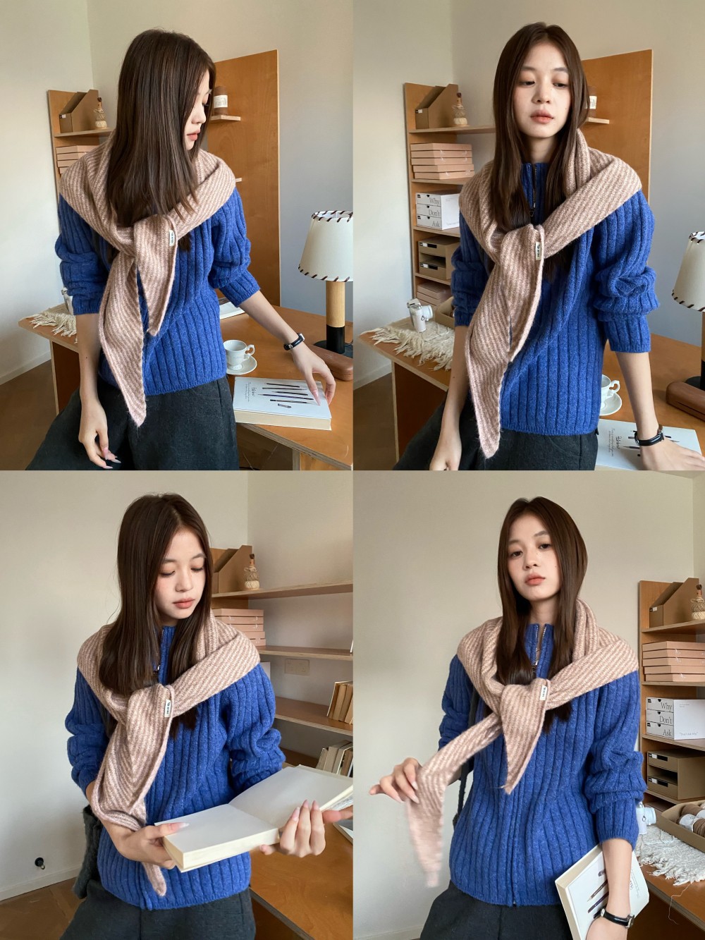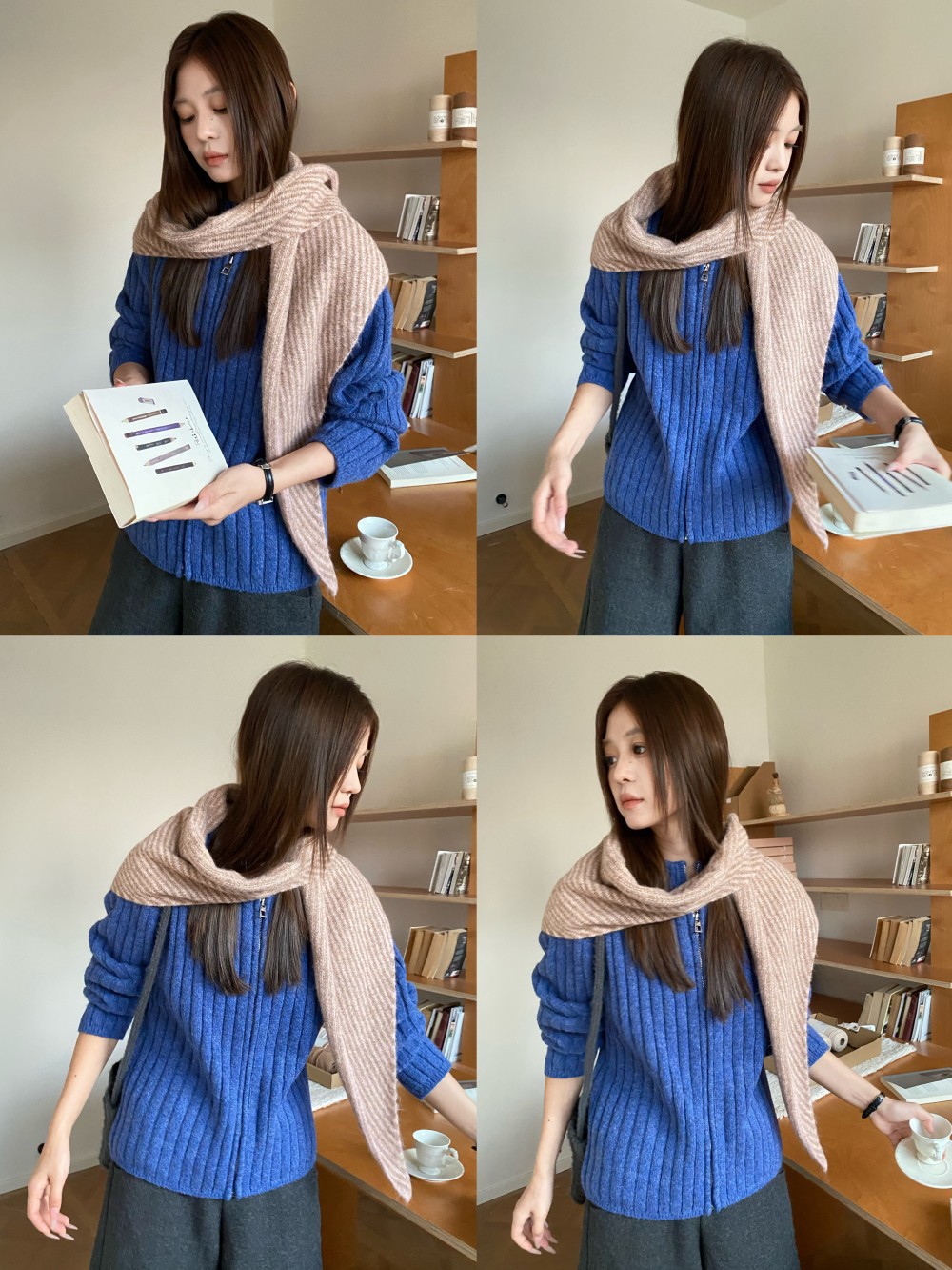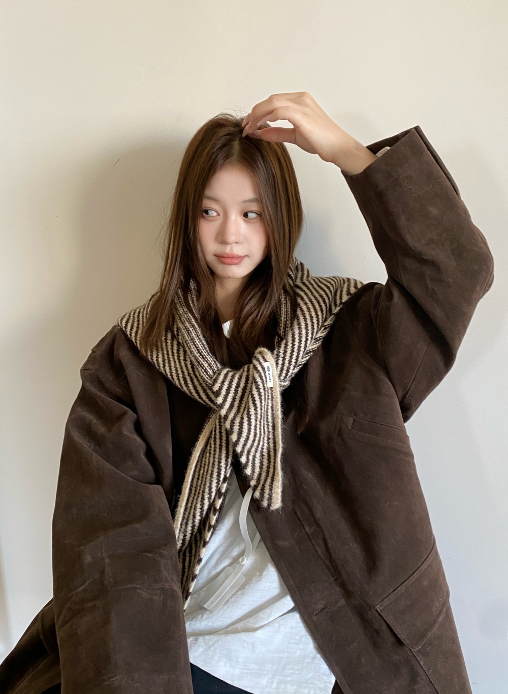 韩代春秋时尚含羊毛凹造型三角巾披肩女秋冬保暖针织条纹坎肩围巾
