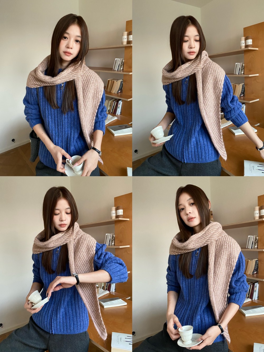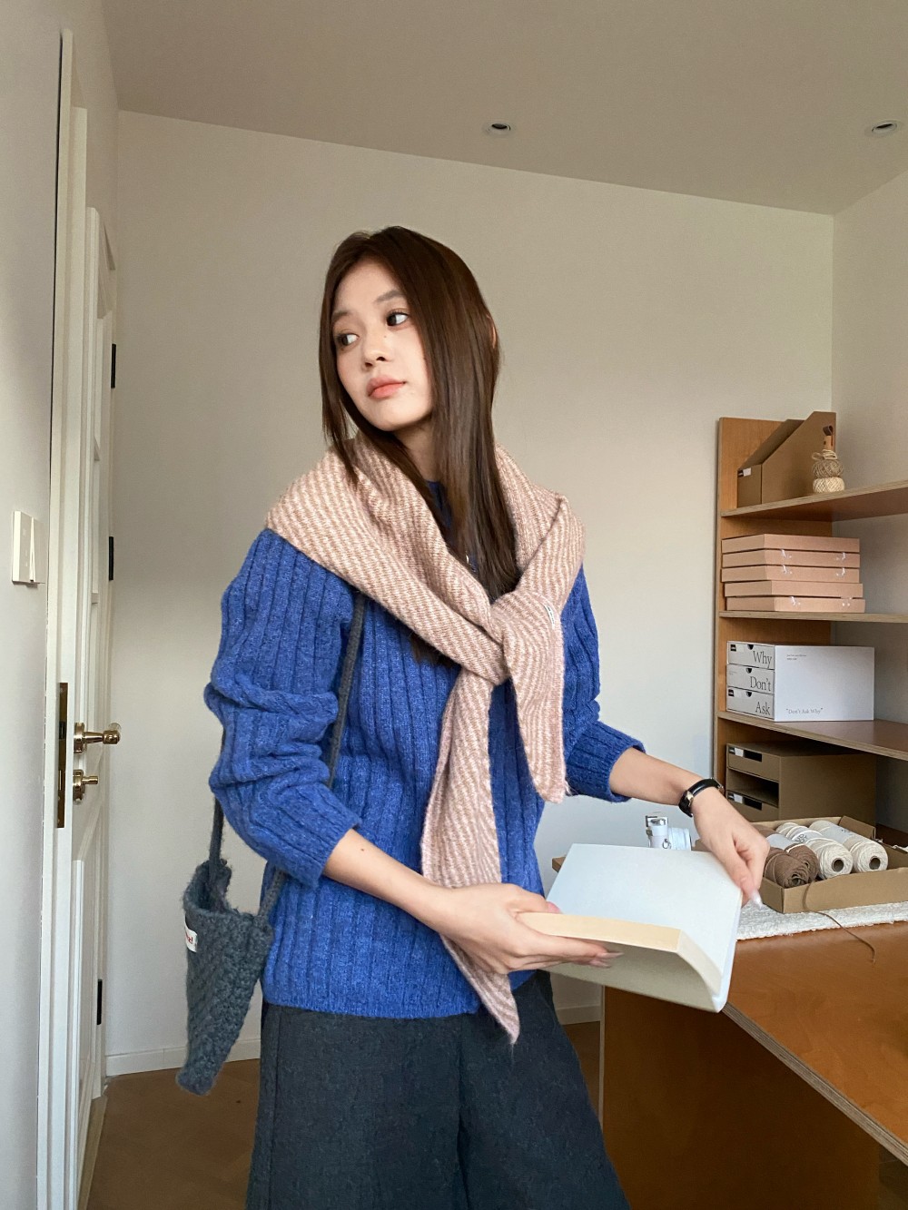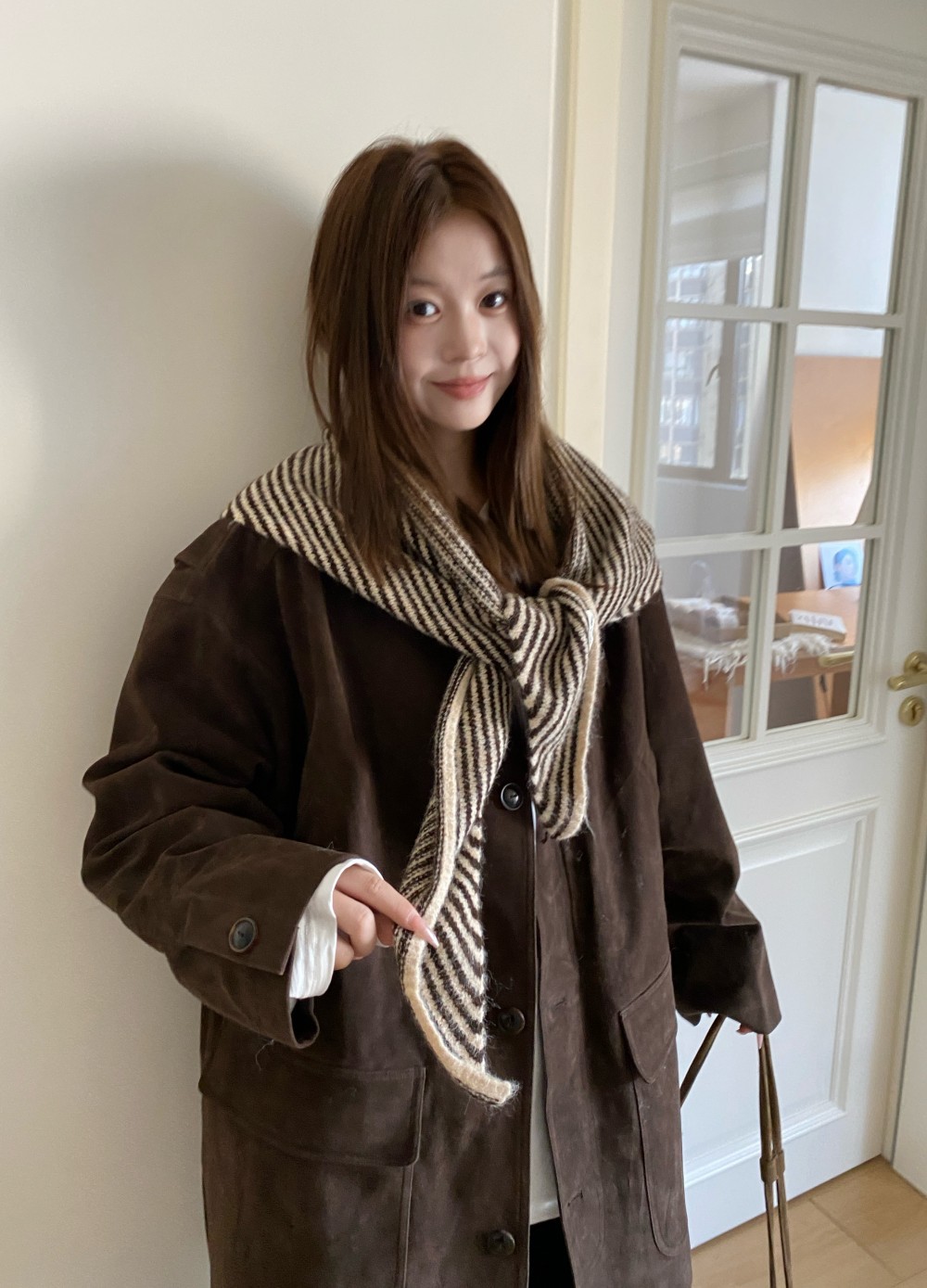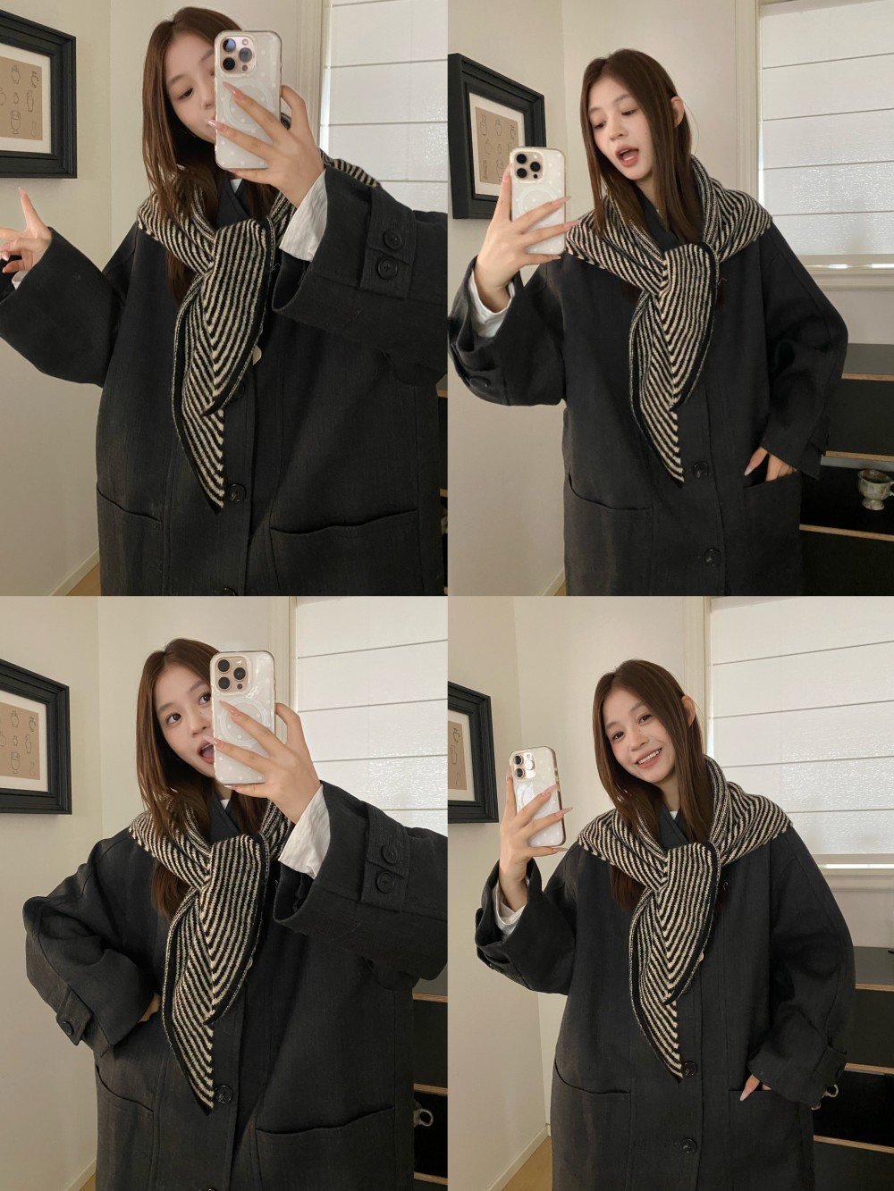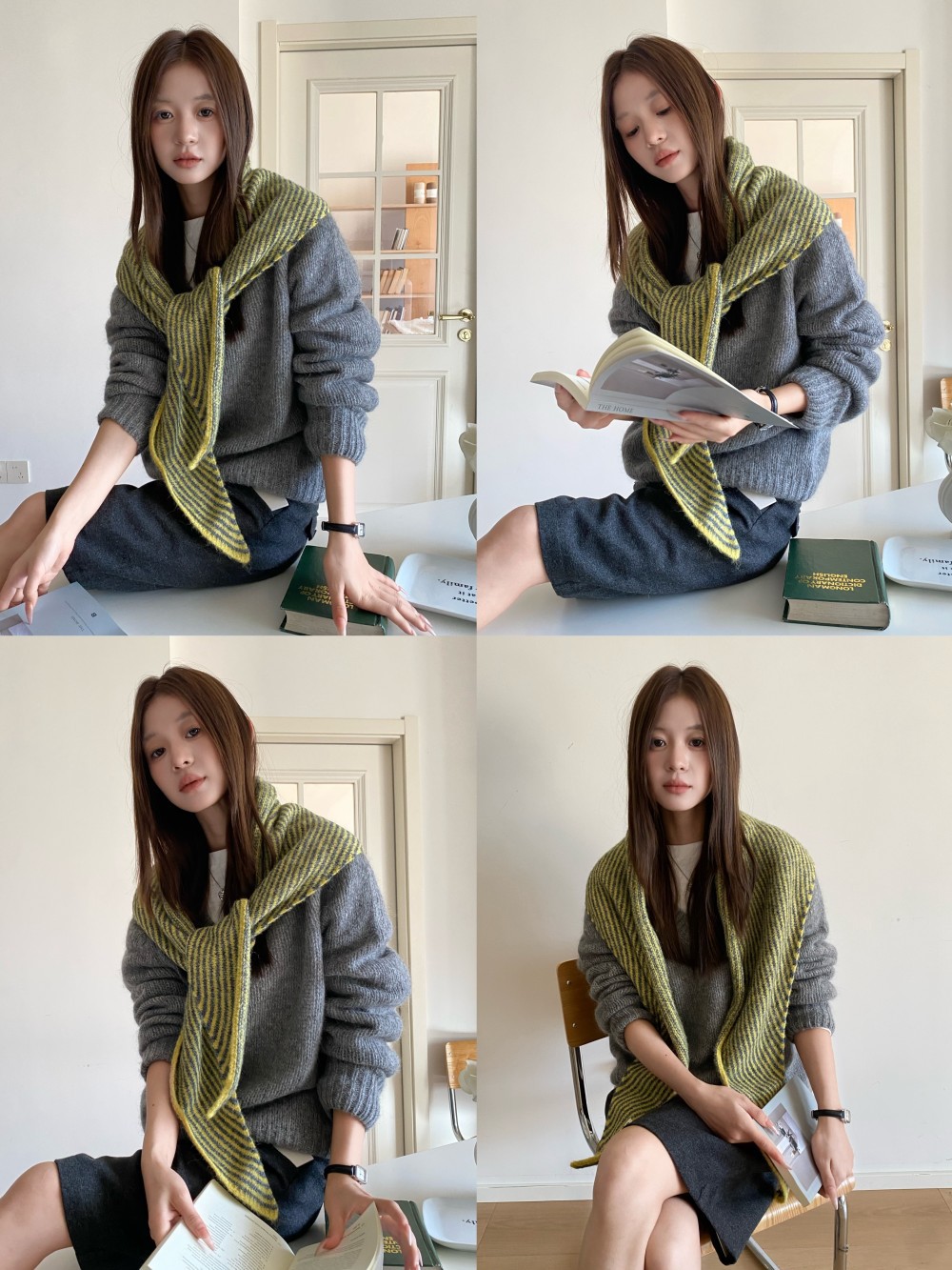 韩代春秋时尚含羊毛凹造型三角巾披肩女秋冬保暖针织条纹坎肩围巾