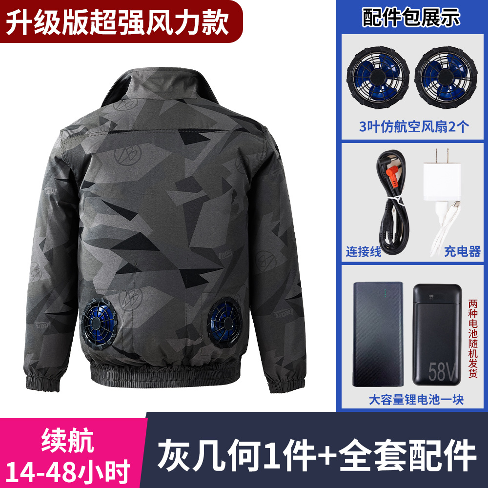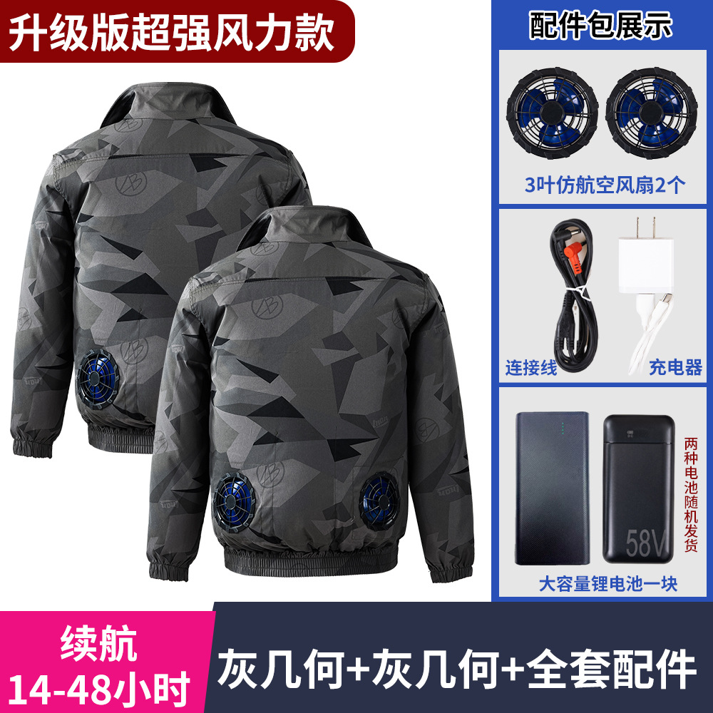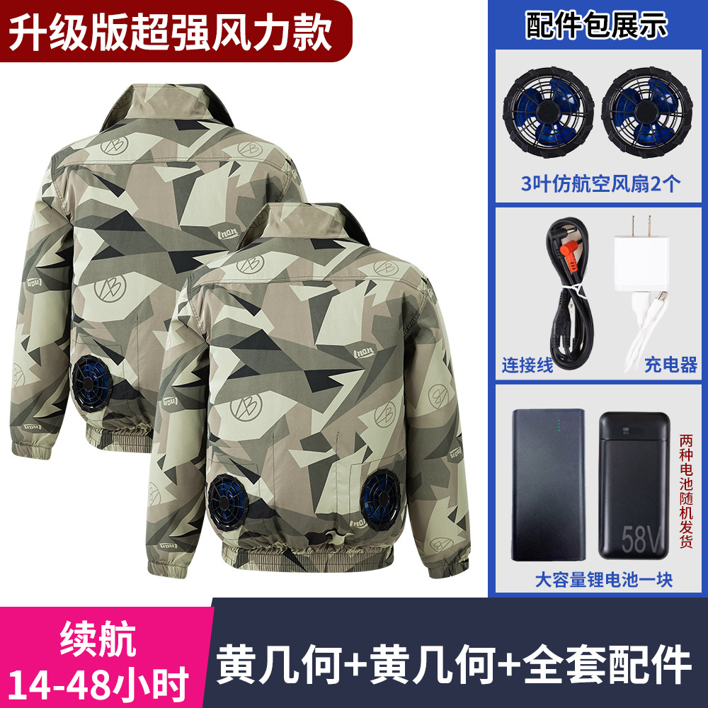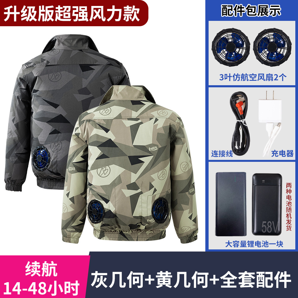 冰爽排汗风力降温夏季空调服男迷彩服工地套装制冷衣工作服冰感