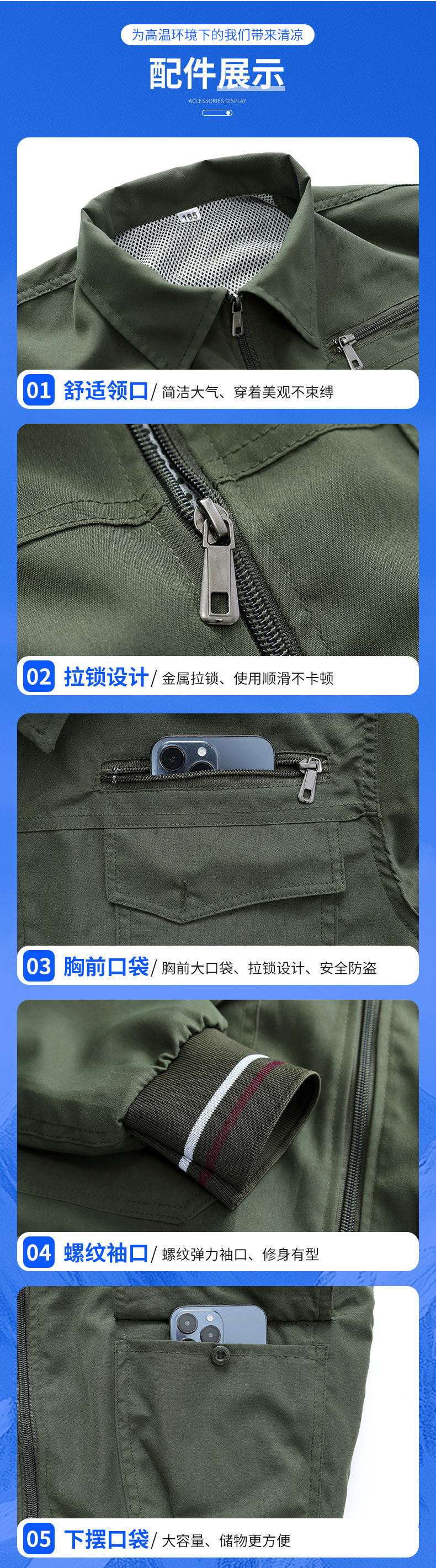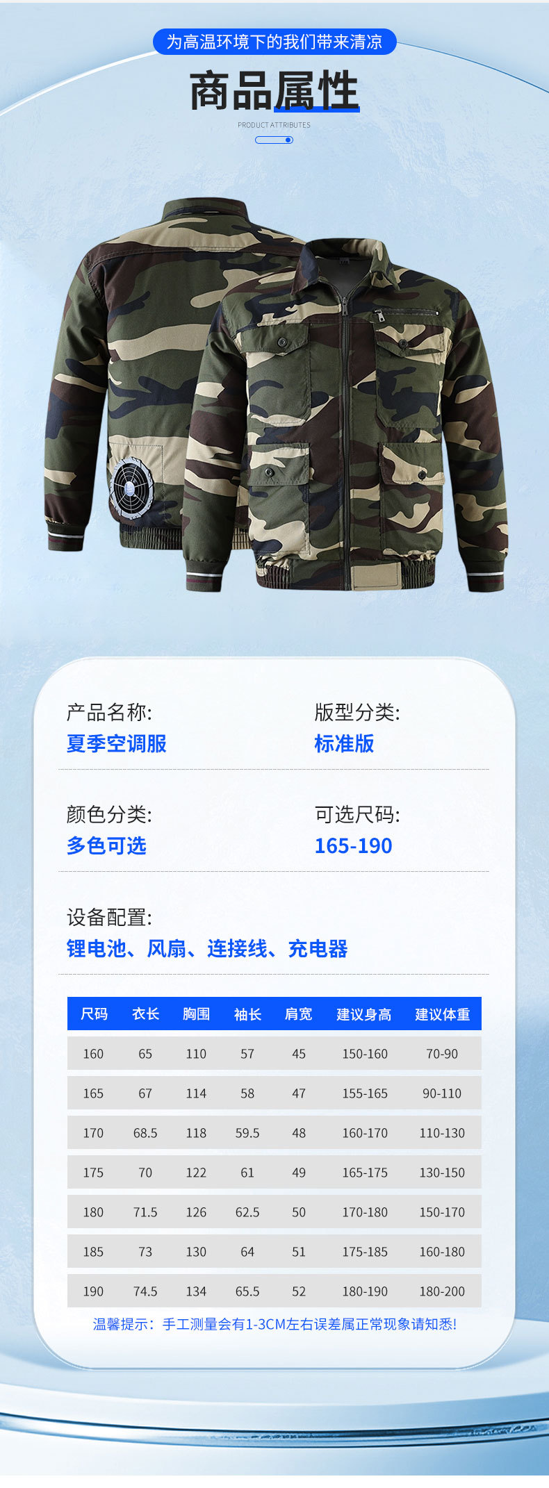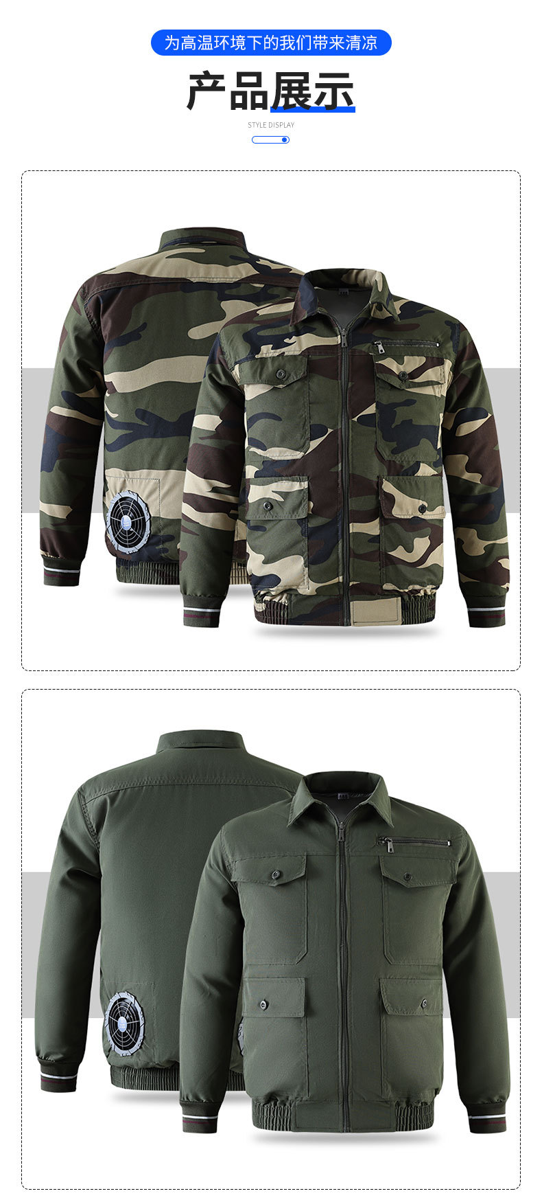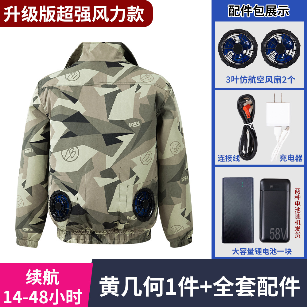 冰爽排汗风力降温夏季空调服男迷彩服工地套装制冷衣工作服冰感