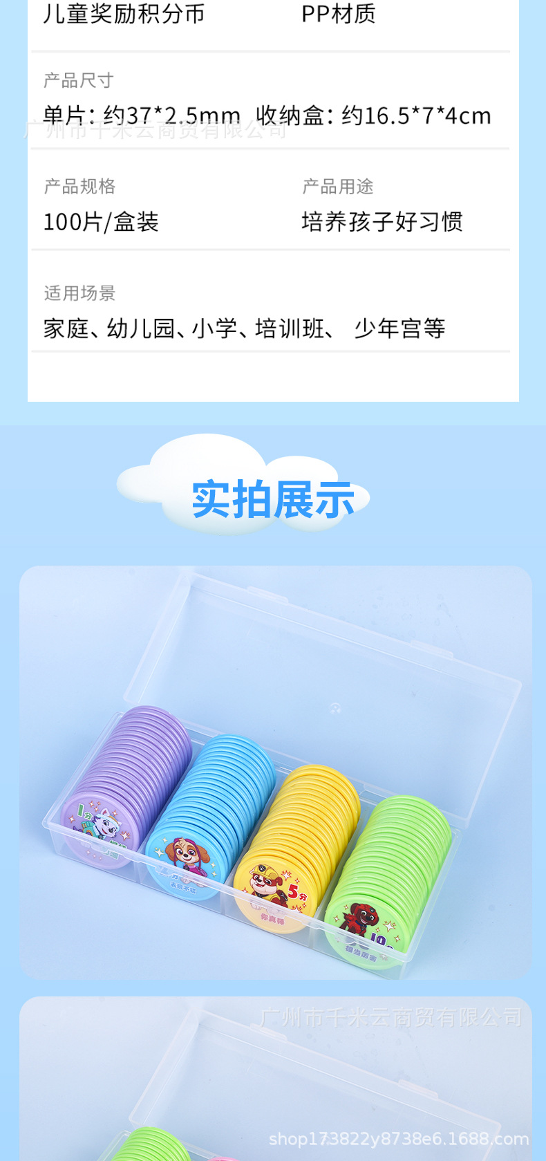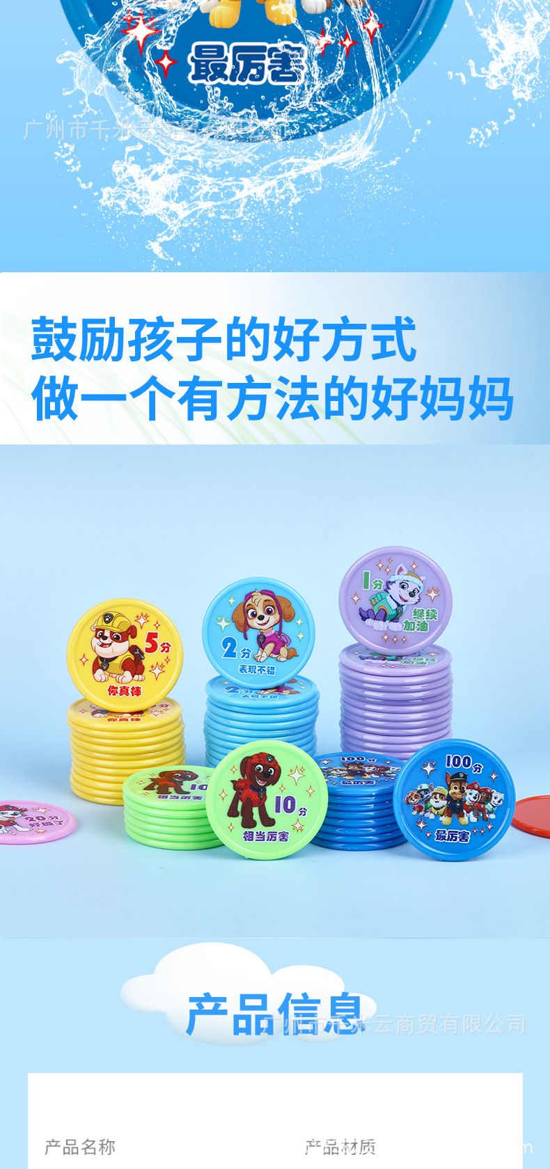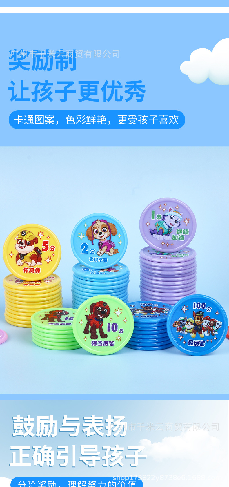 汪汪队儿童积分卡奖励币家庭幼儿园小学生鼓励学习积分塑料奖励卡