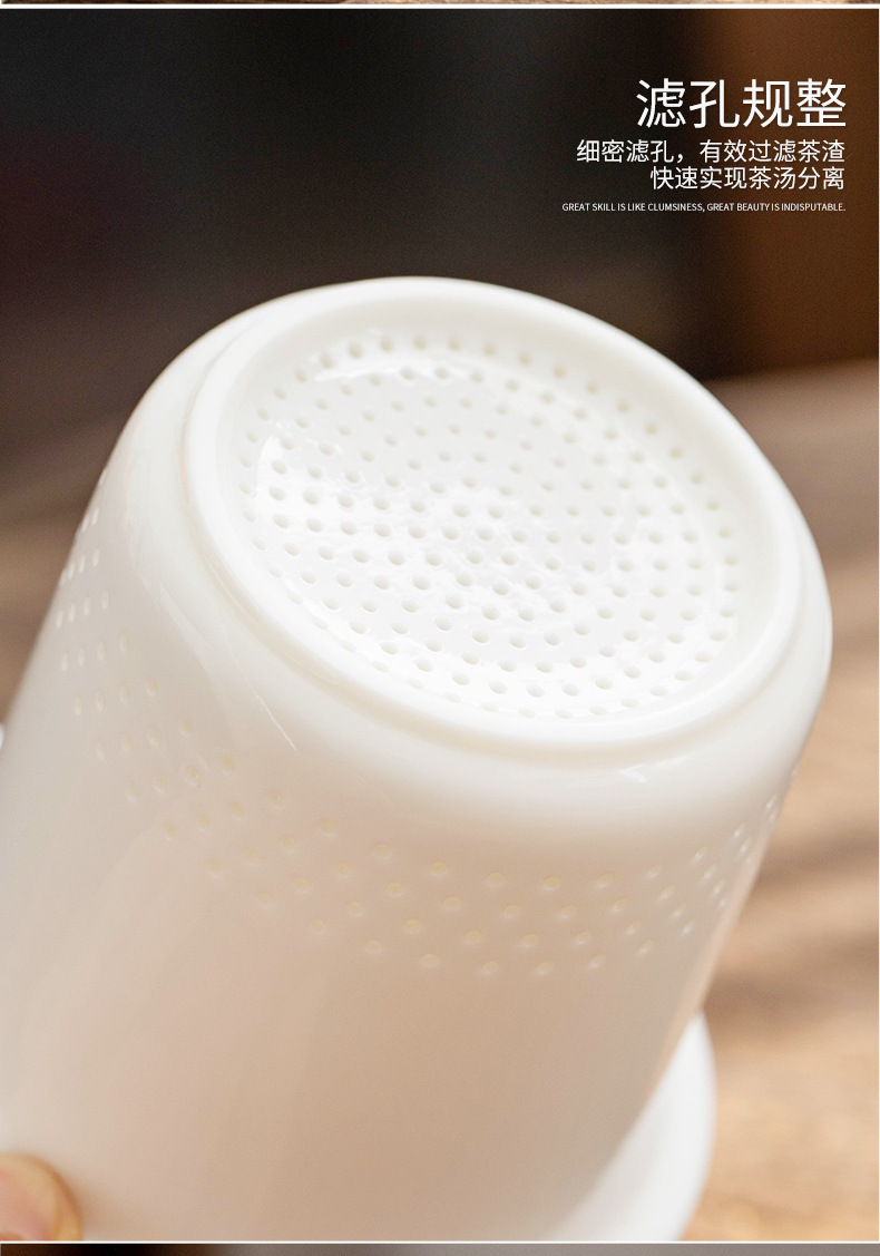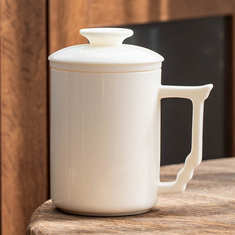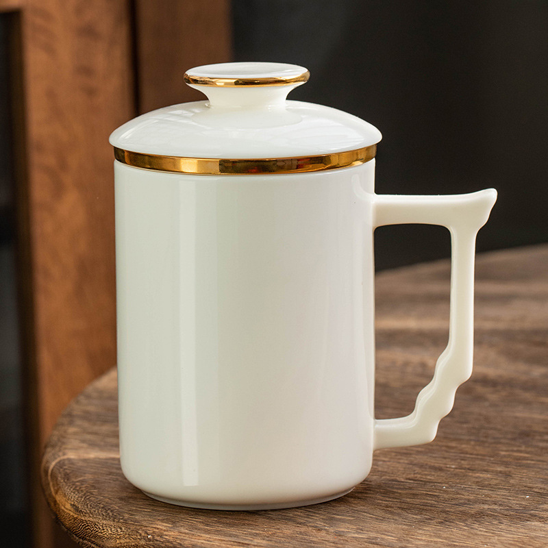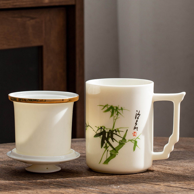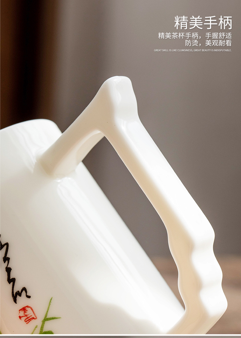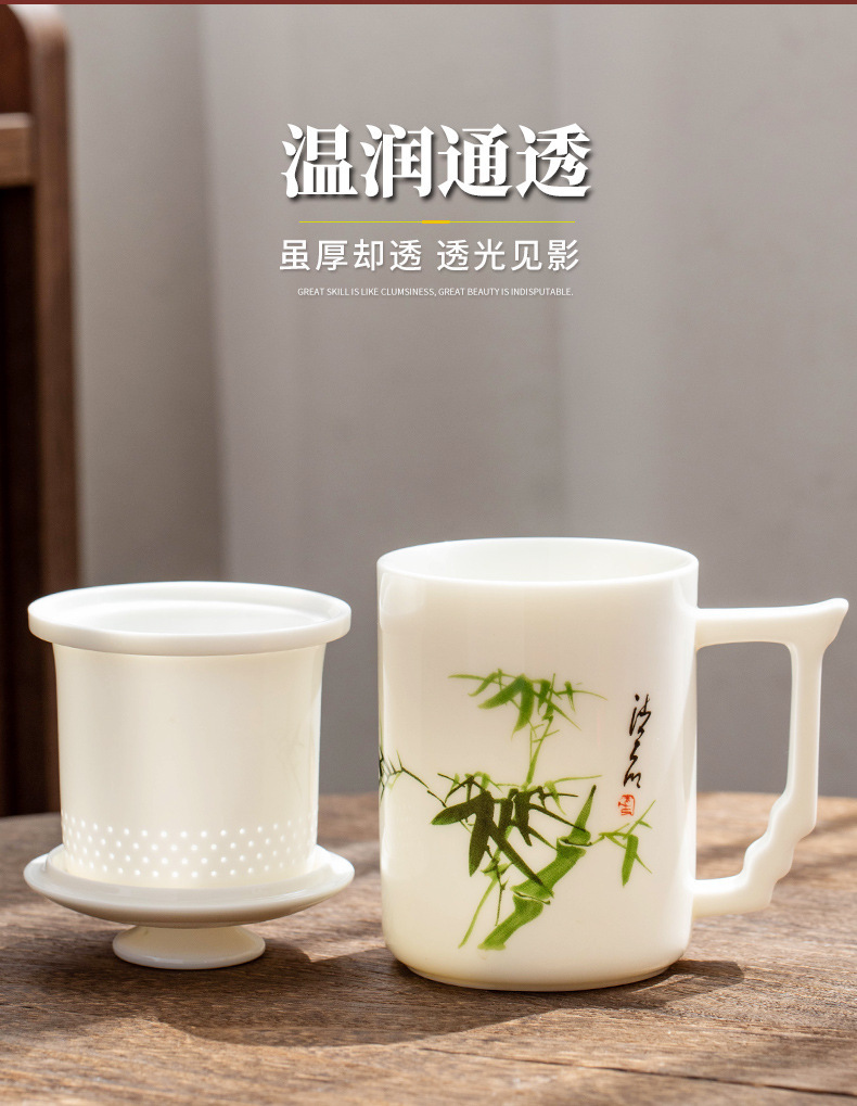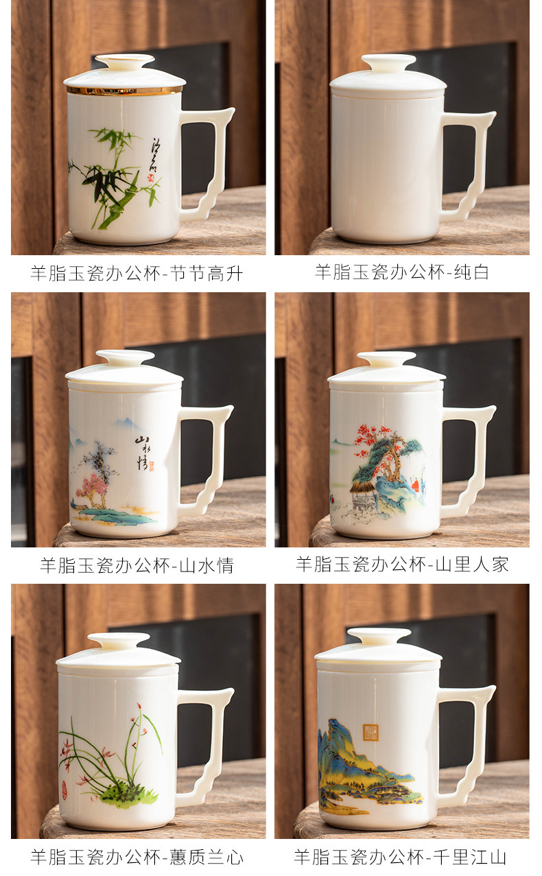 羊脂玉陶瓷办公杯水杯茶杯带盖茶水分离白瓷办公室公司礼品印logo