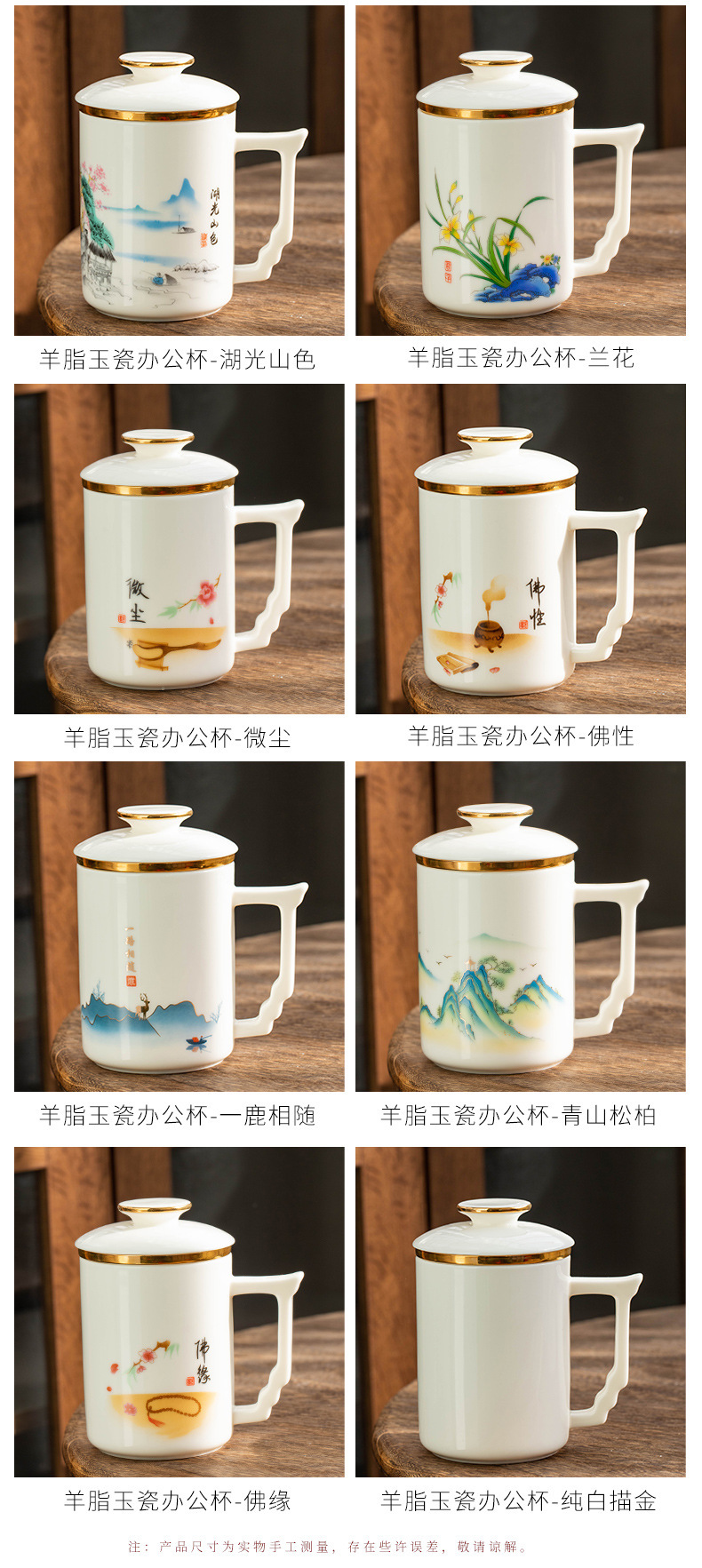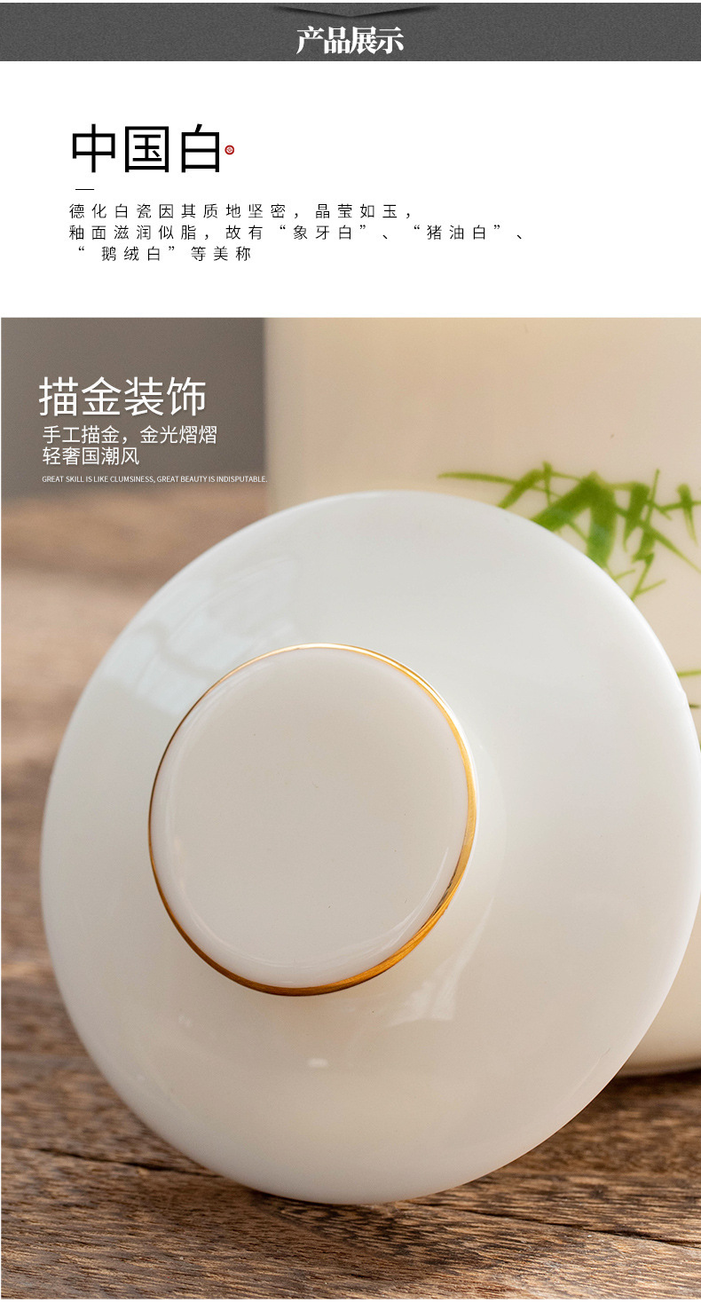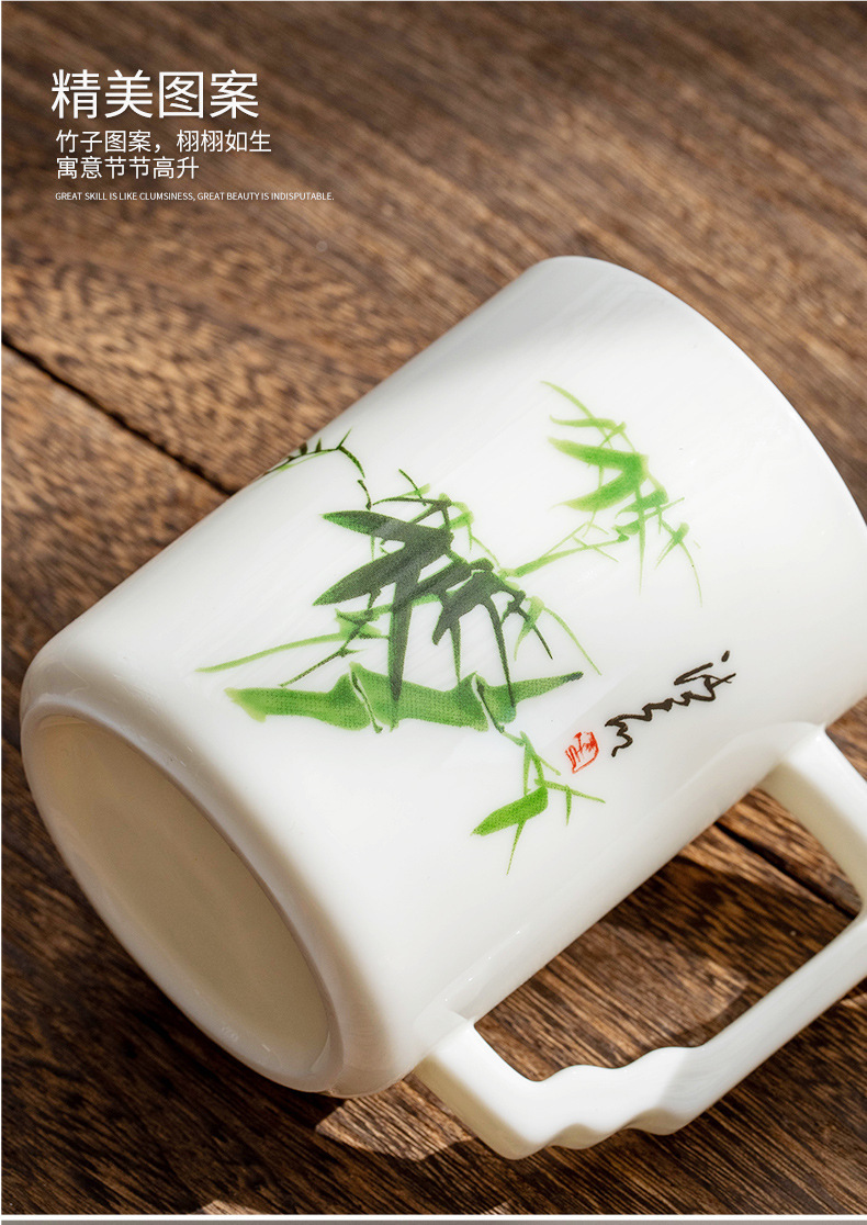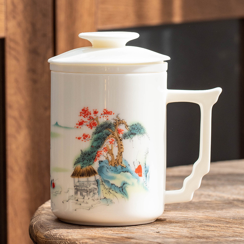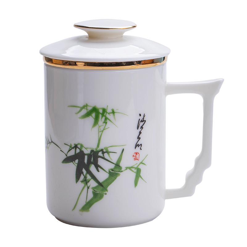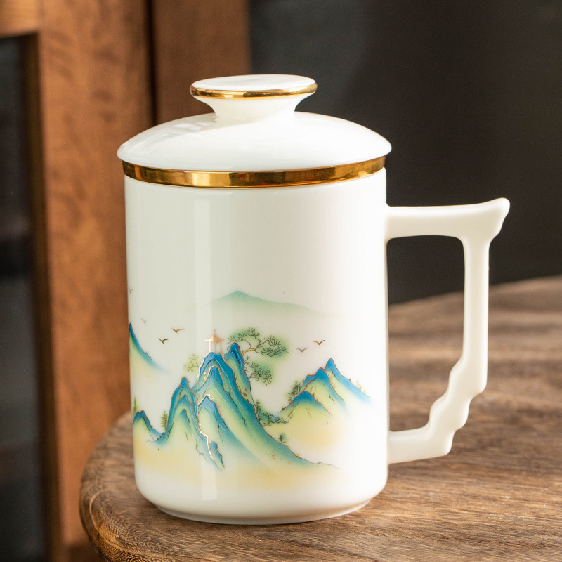 羊脂玉陶瓷办公杯水杯茶杯带盖茶水分离白瓷办公室公司礼品印logo