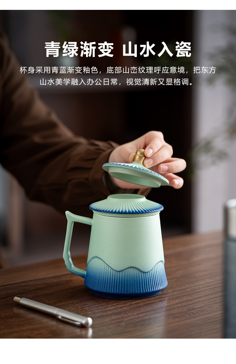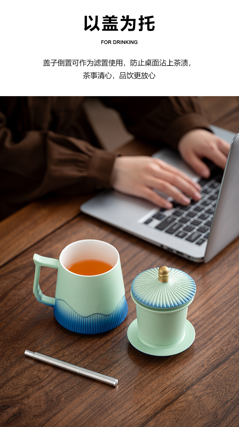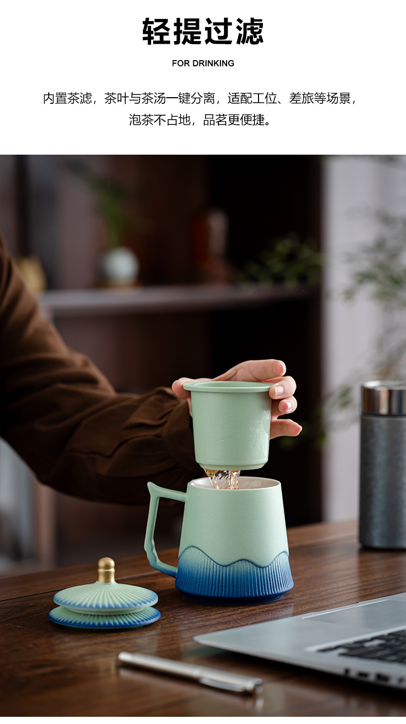 故宫文创茶水分离杯马克杯家用带盖过滤个人专用陶瓷办公泡茶杯子